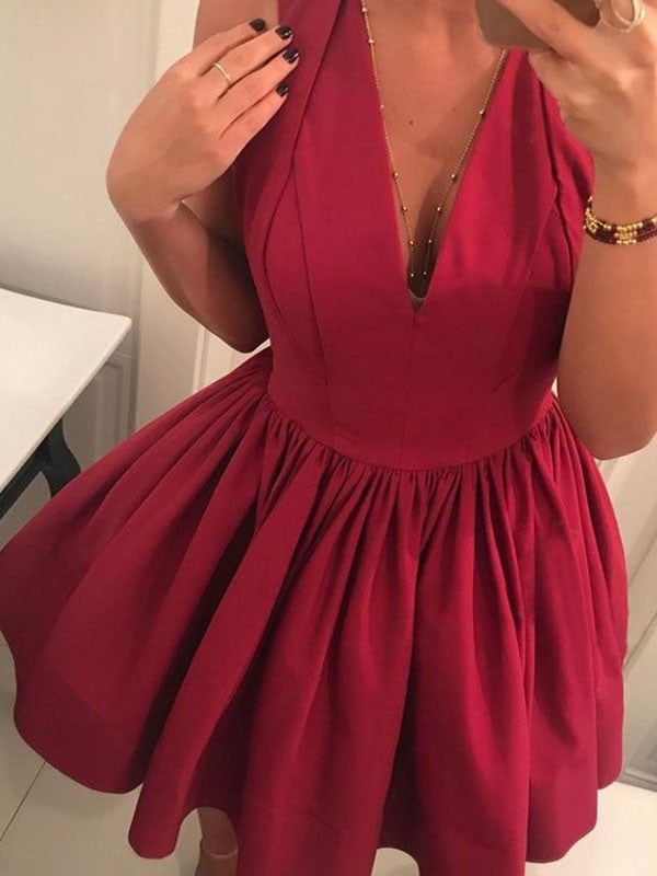 A-Line/Princess V-Neck Ruched Homecoming Dresses Satin Caitlyn Sleeveless Short/Mini Dresses