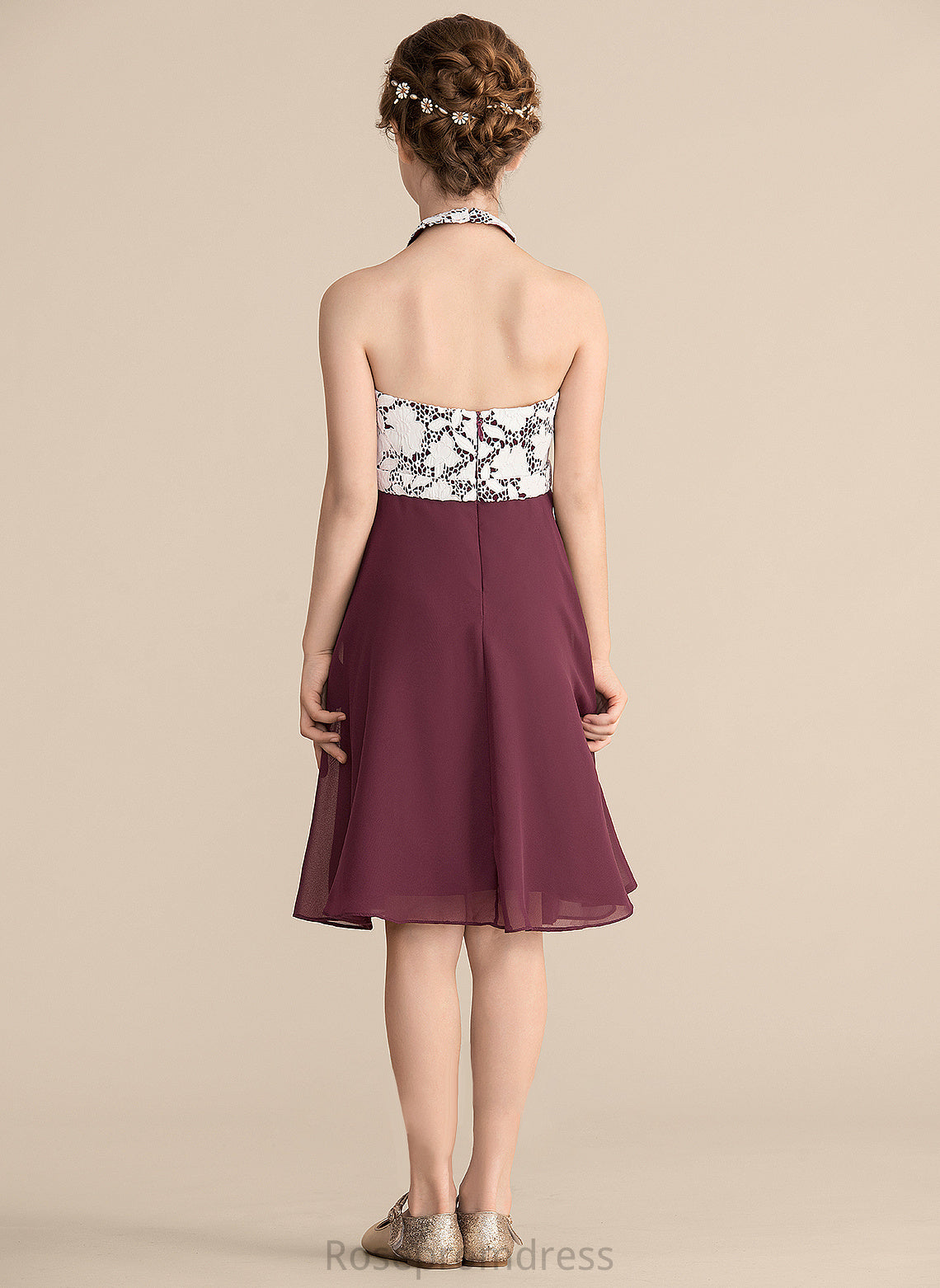 A-Line Scoop Neck Chiffon Jacquelyn Knee-Length Junior Bridesmaid Dresses Lace