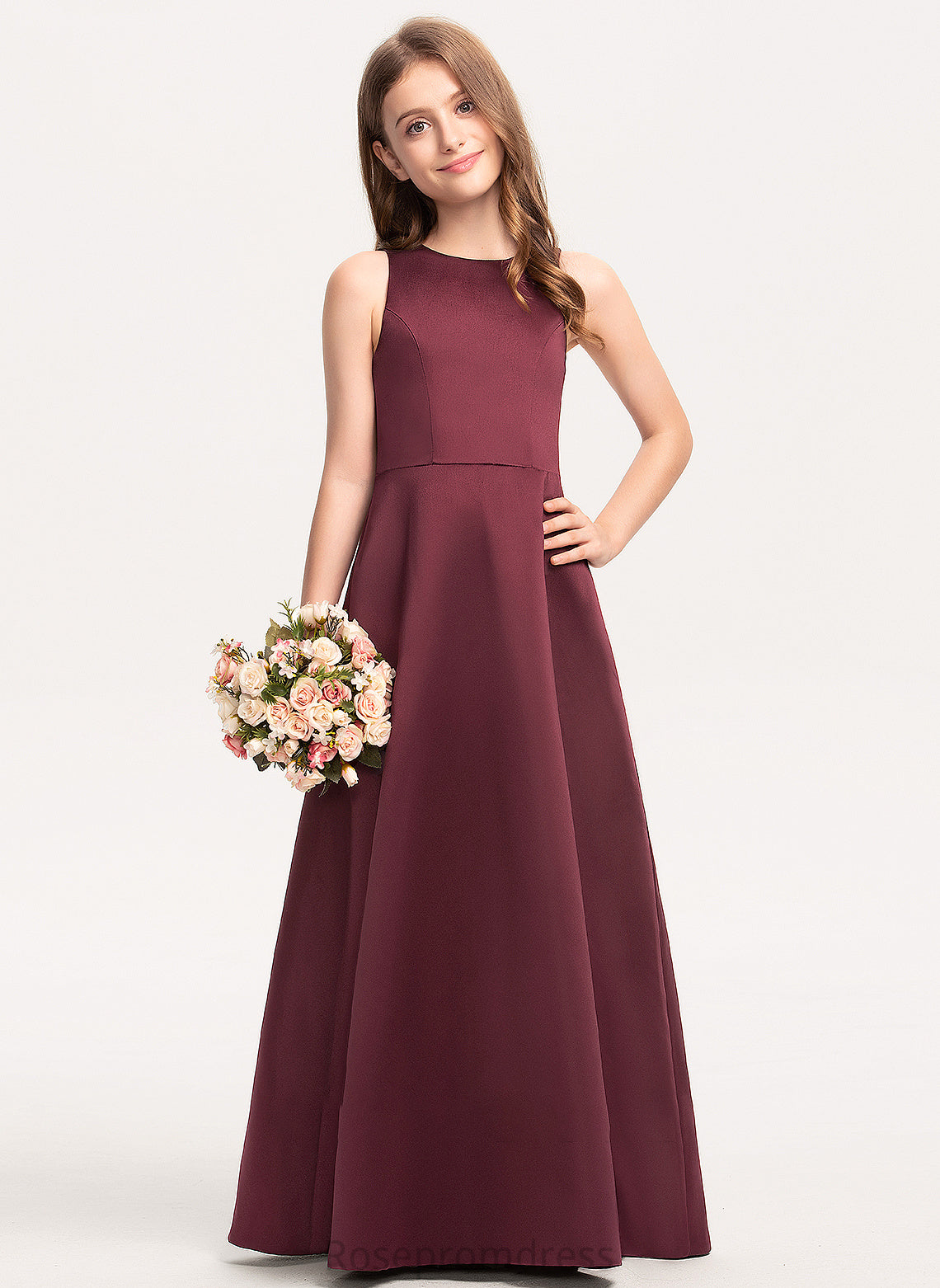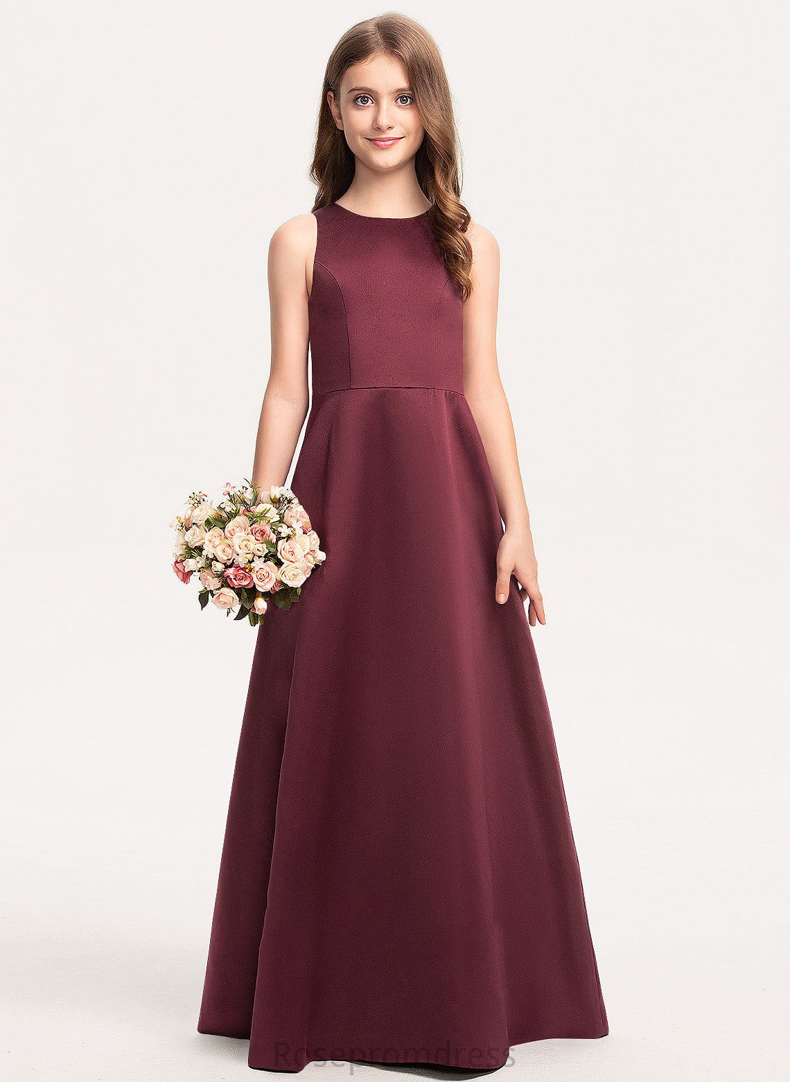A-Line Scoop Neck Junior Bridesmaid Dresses Floor-Length Rita Satin