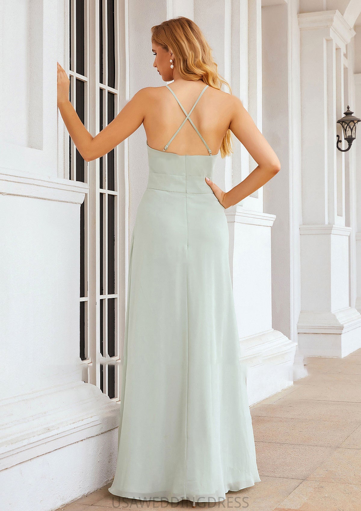 A-line Scoop Neck Sleeveless Long/Floor-Length Chiffon Bridesmaid Dresses With Pleated Pockets Natasha DSP0025378