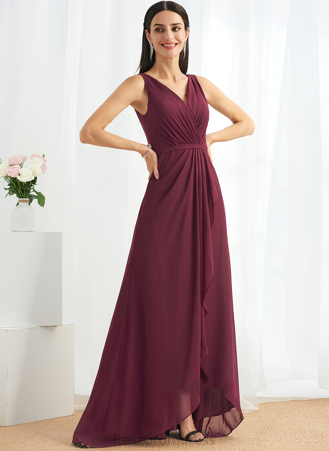 A-Line Silhouette SplitFront Asymmetrical Fabric Neckline V-neck Length Embellishment Lauryn Natural Waist Sleeveless Bridesmaid Dresses