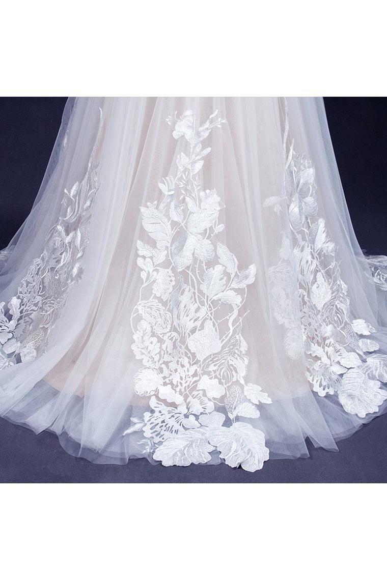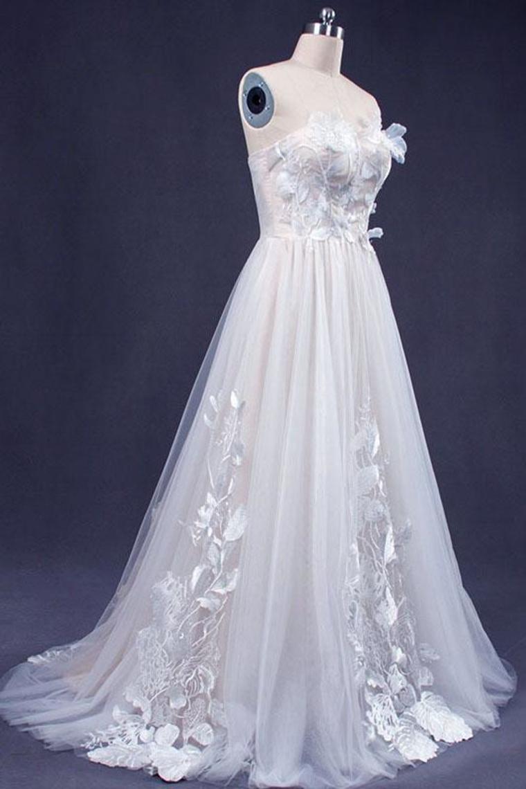 A Line Sweetheart Tulle Appliqued Wedding Dress, Strapless Tulle Bridal Dresses