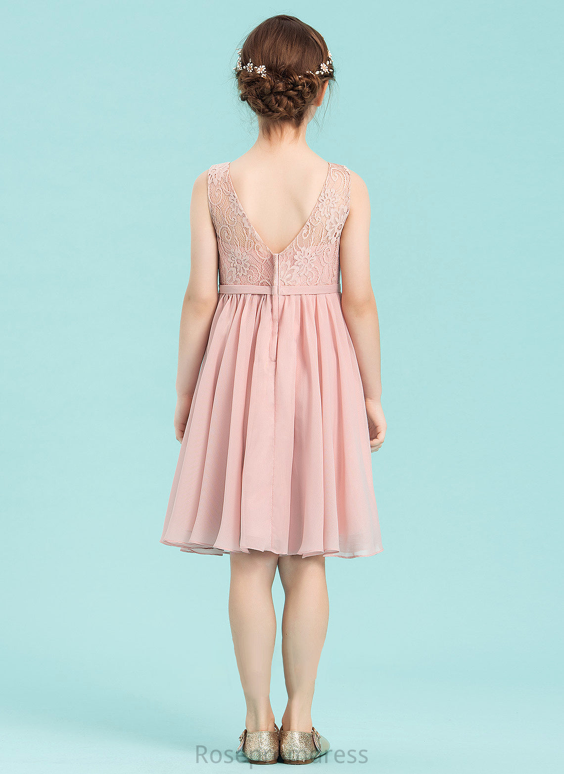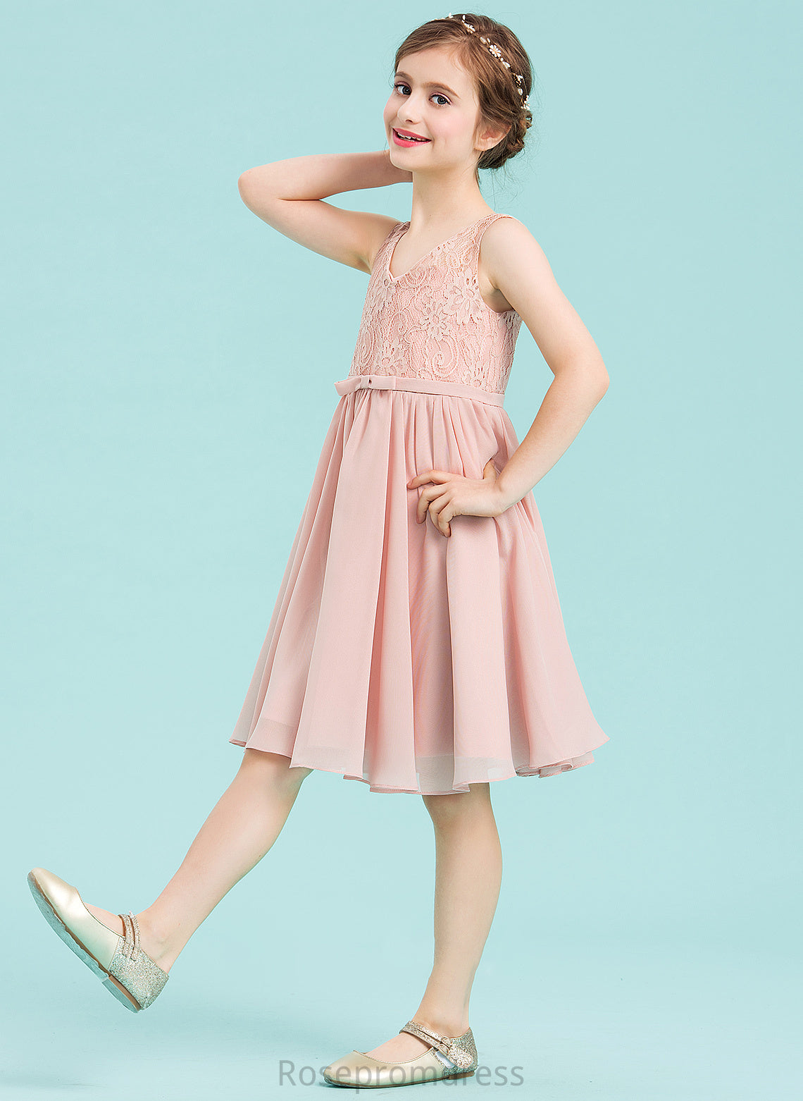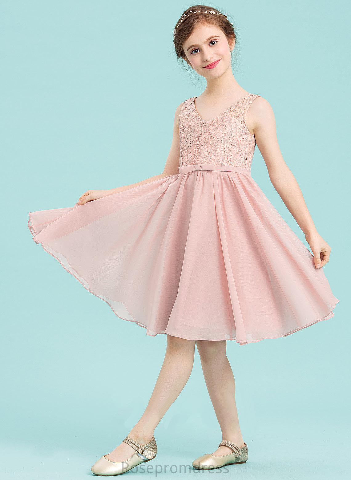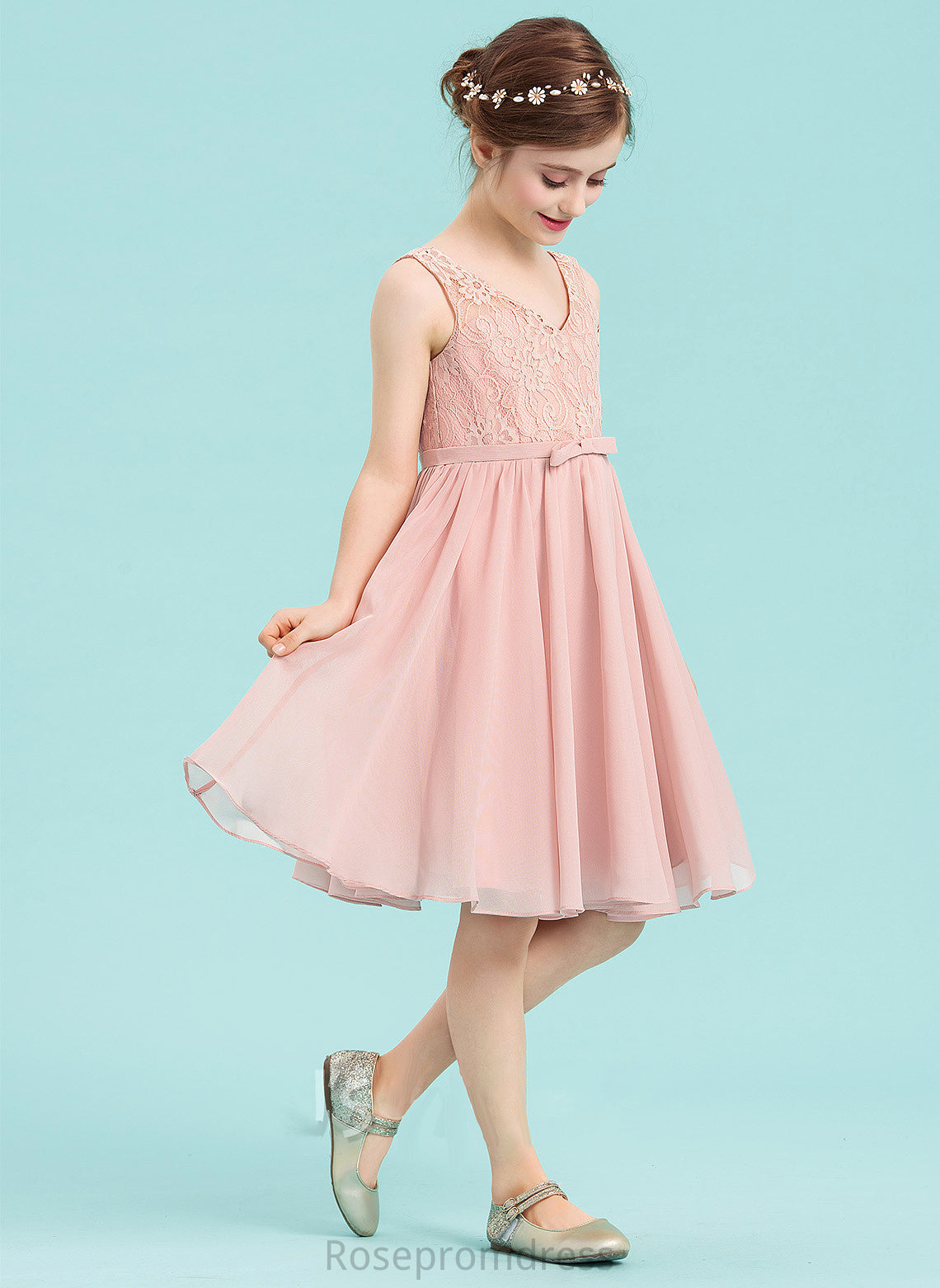 A-Line With Knee-Length Chiffon Bow(s) Junior Bridesmaid Dresses Wendy V-neck