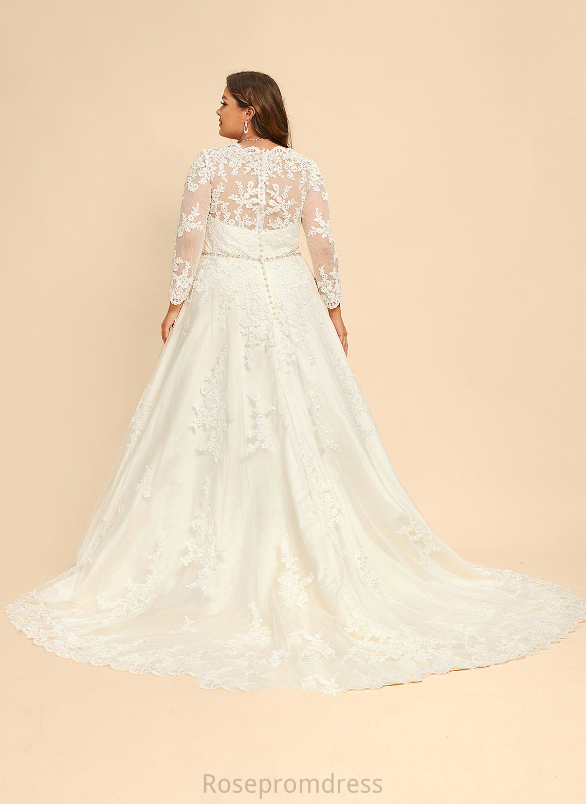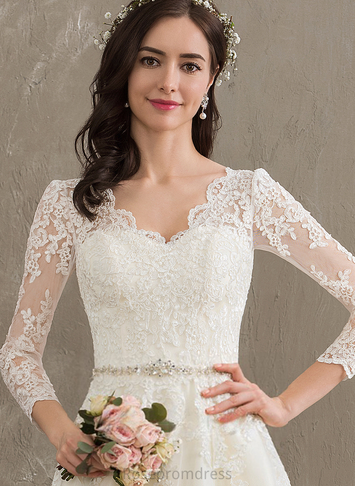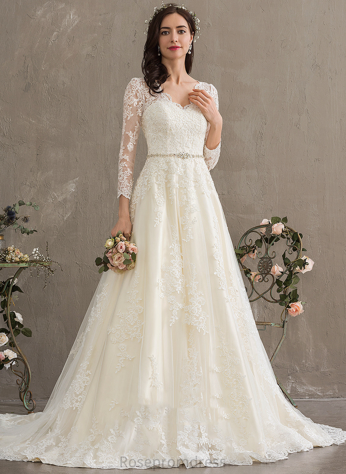 Abagail Beading With V-neck Chapel Train Wedding Dresses Dress Ball-Gown/Princess Lace Sequins Tulle Wedding