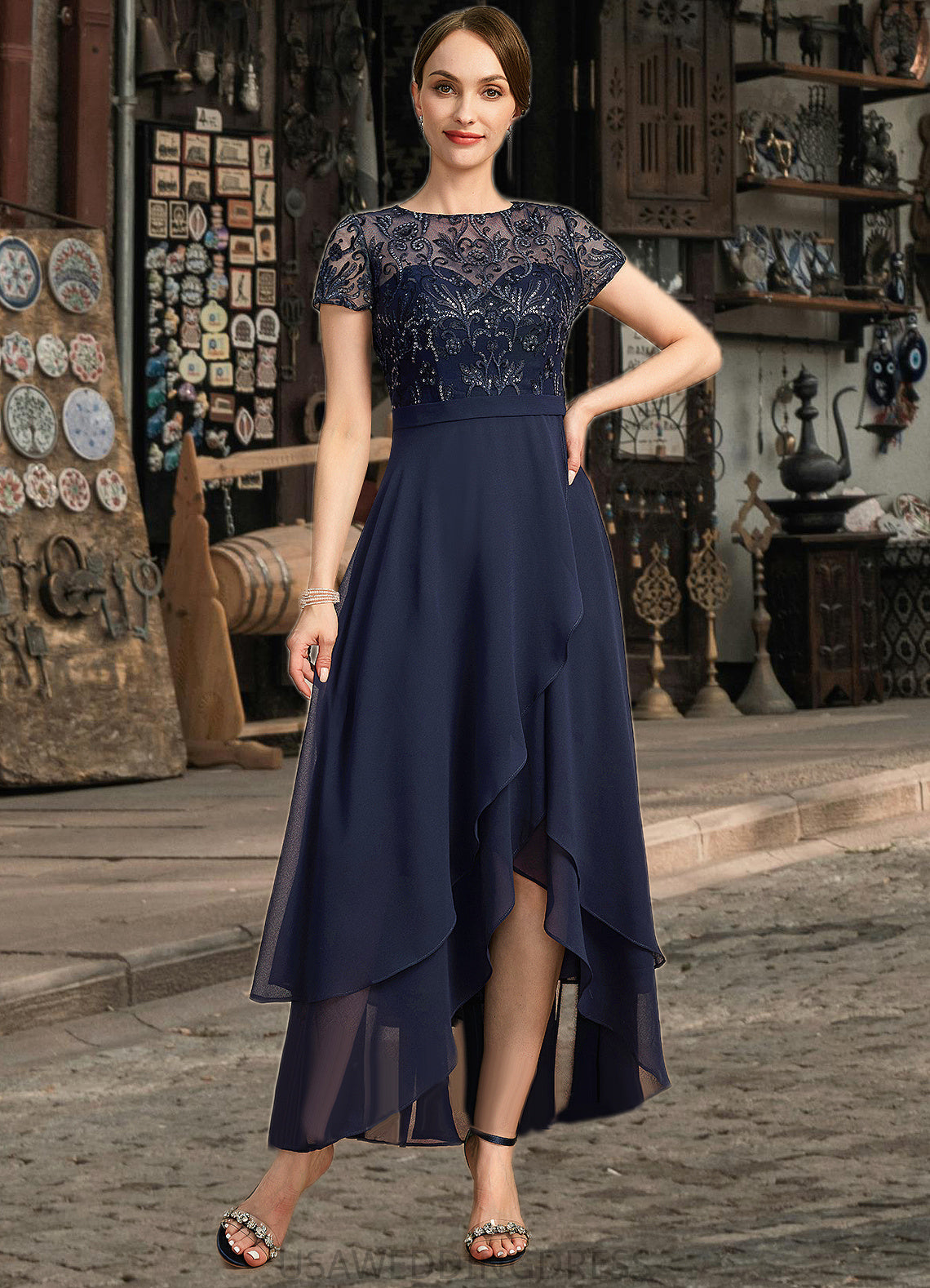 Abbie A-line Scoop Illusion Asymmetrical Chiffon Lace Mother of the Bride Dress With Sequins DS126P0021902