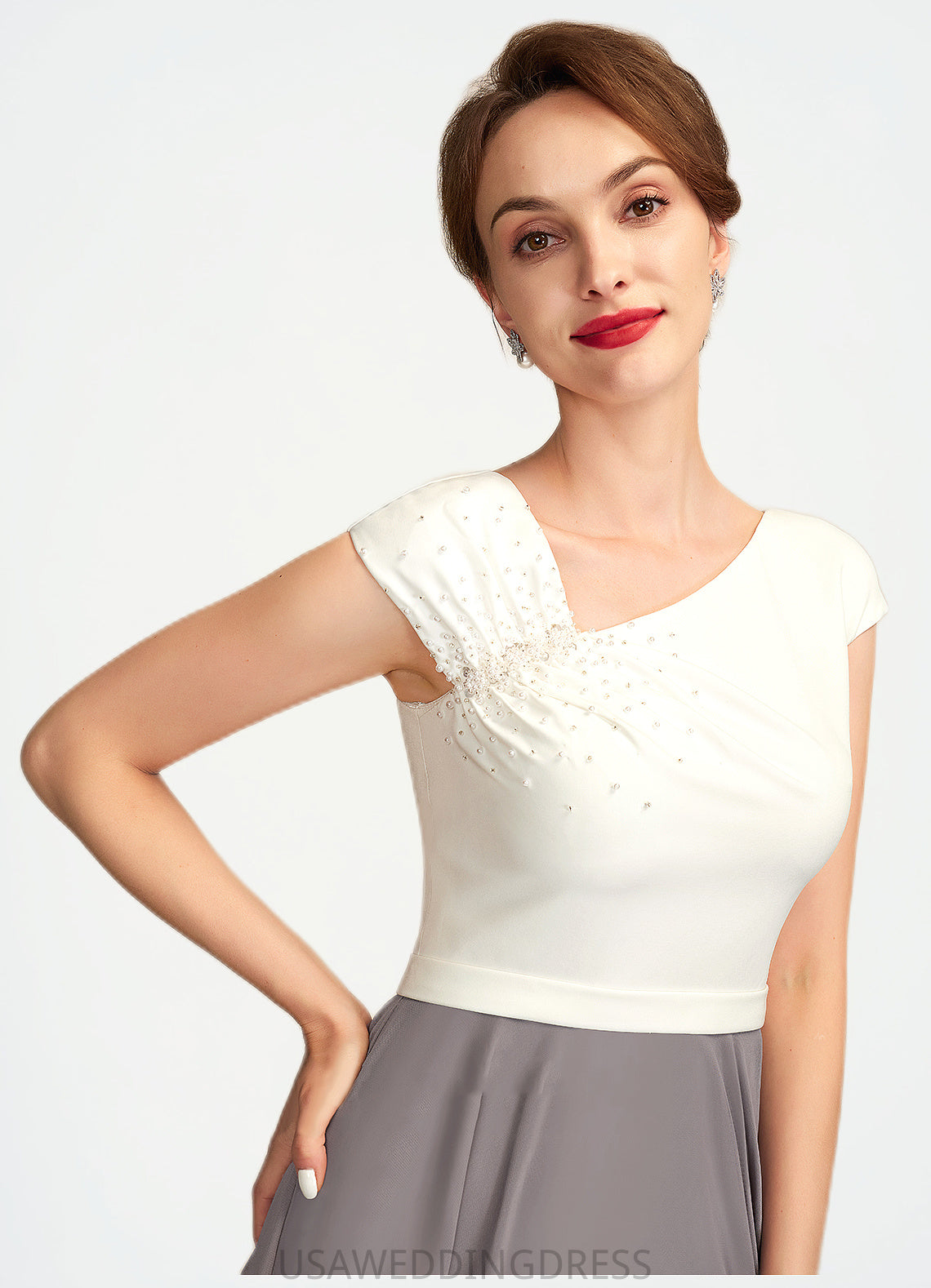 Thecoloryouchooseisonlyforthebottomhalfofthedress.