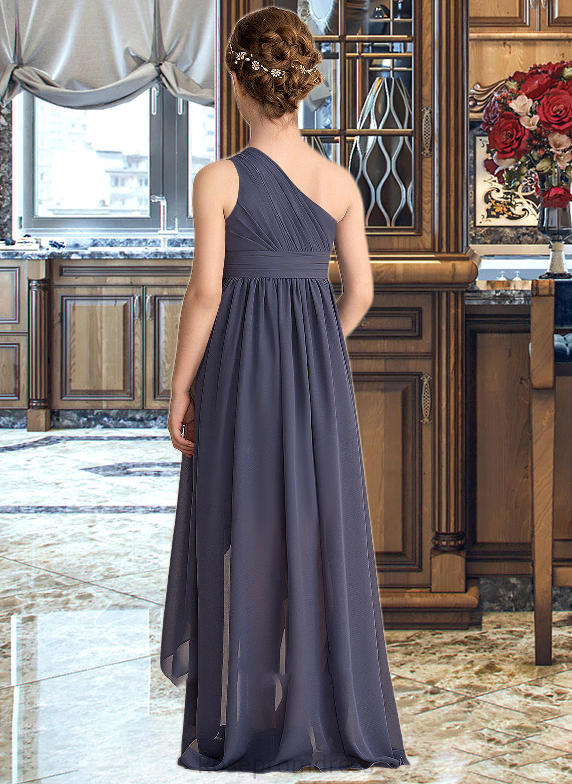 Adalynn A-Line One-Shoulder Asymmetrical Chiffon Junior Bridesmaid Dress With Ruffle SRSP0013489