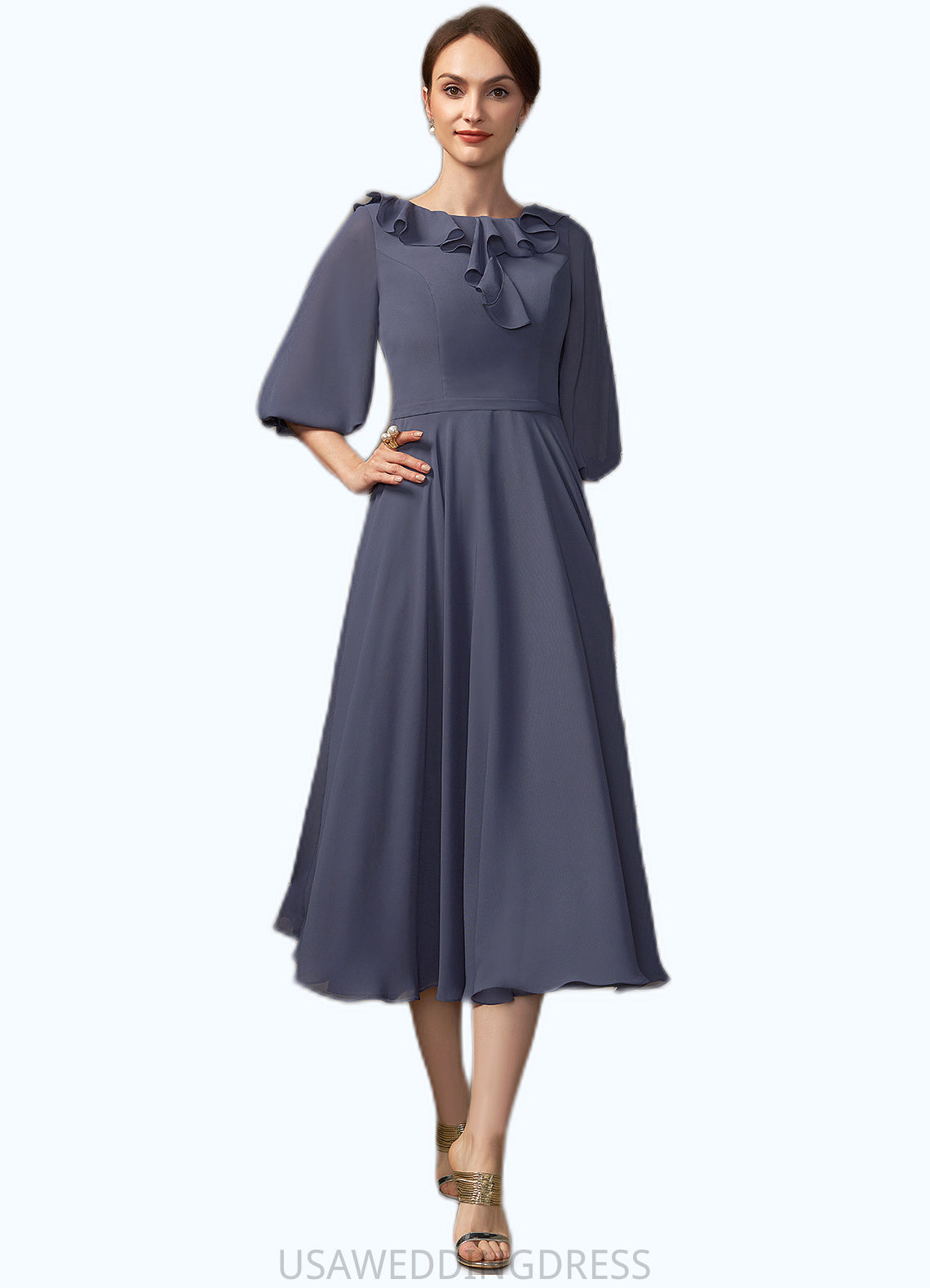 Adriana A-Line Scoop Neck Tea-Length Chiffon Mother of the Bride Dress With Cascading Ruffles DS126P0014920