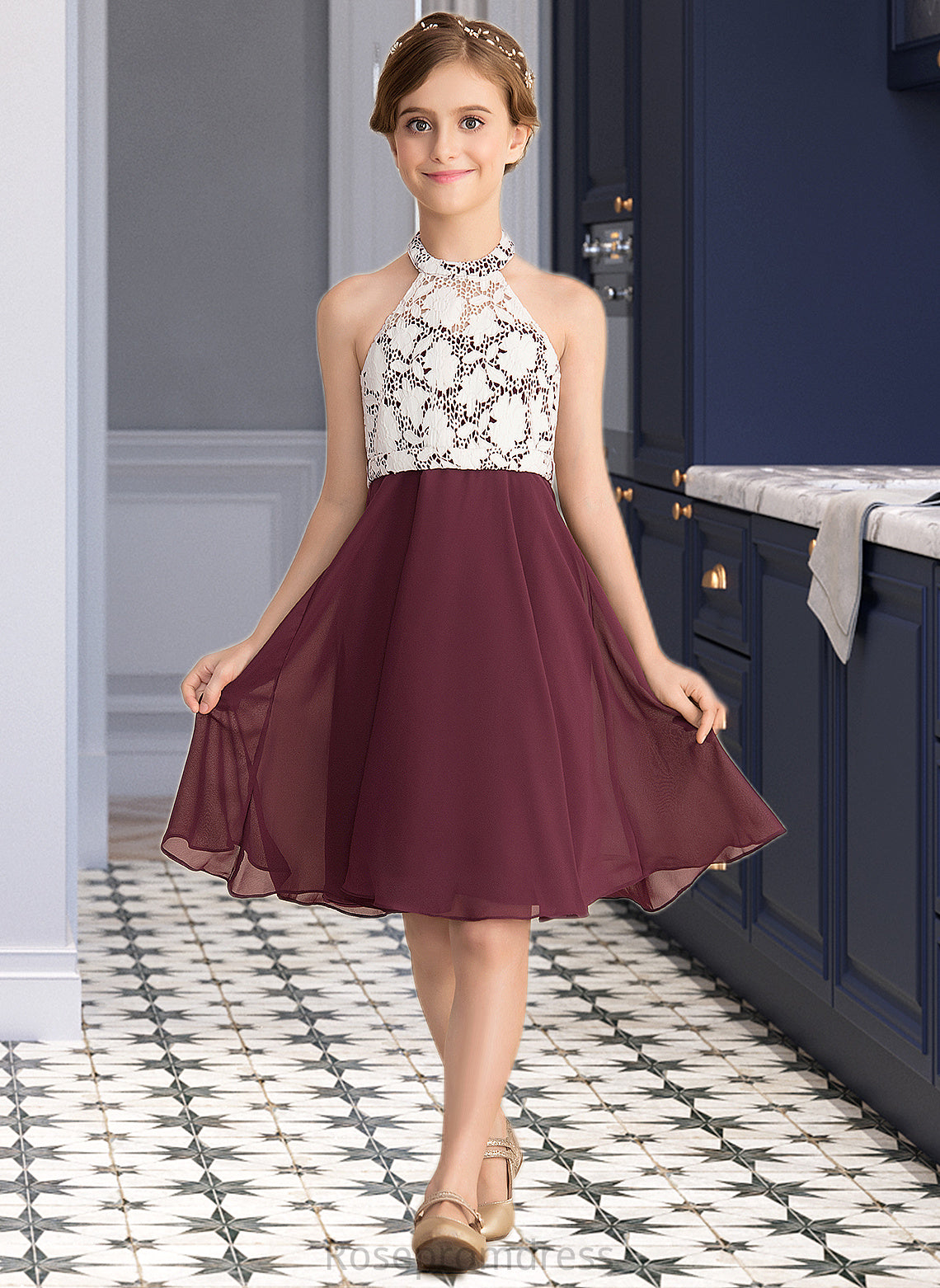 Aileen A-Line Scoop Neck Knee-Length Chiffon Lace Junior Bridesmaid Dress SRSP0013366
