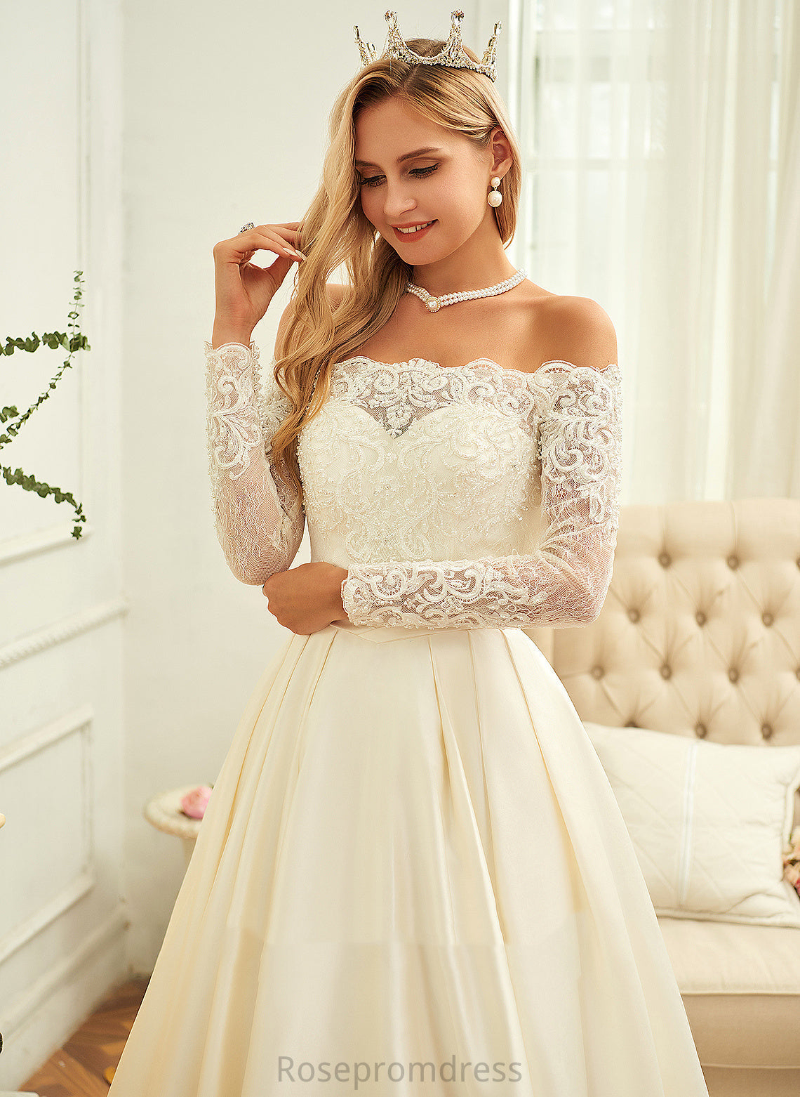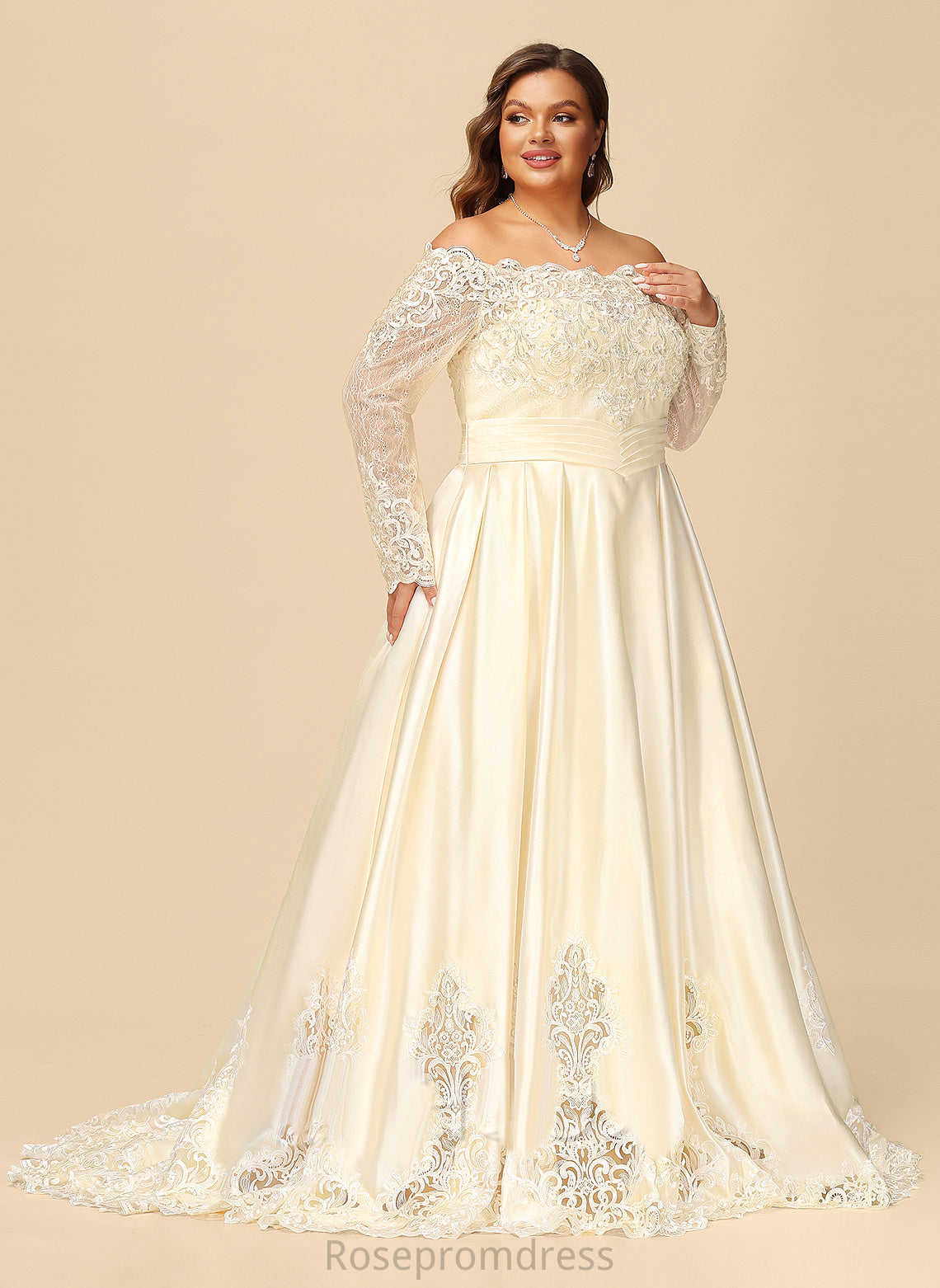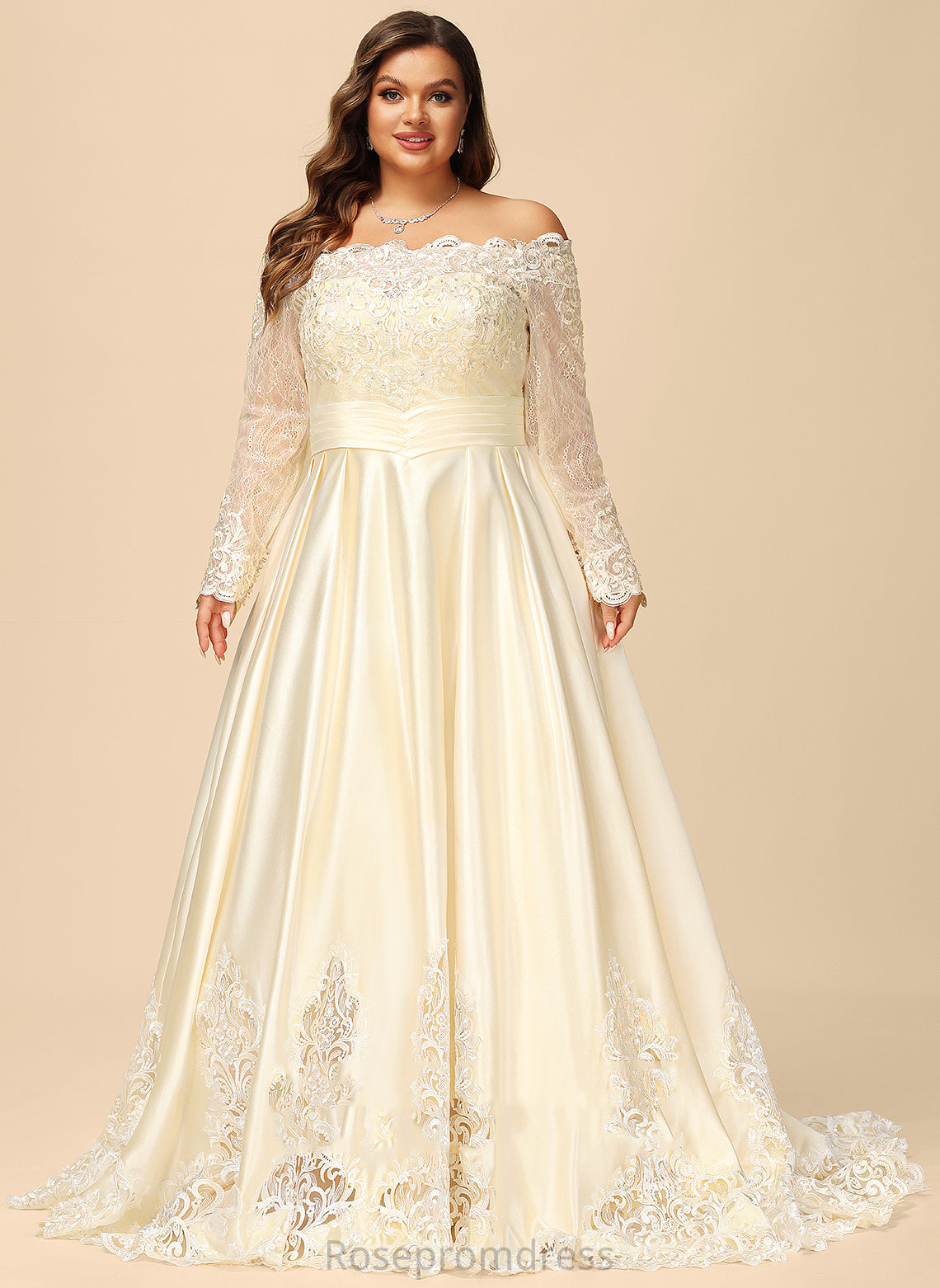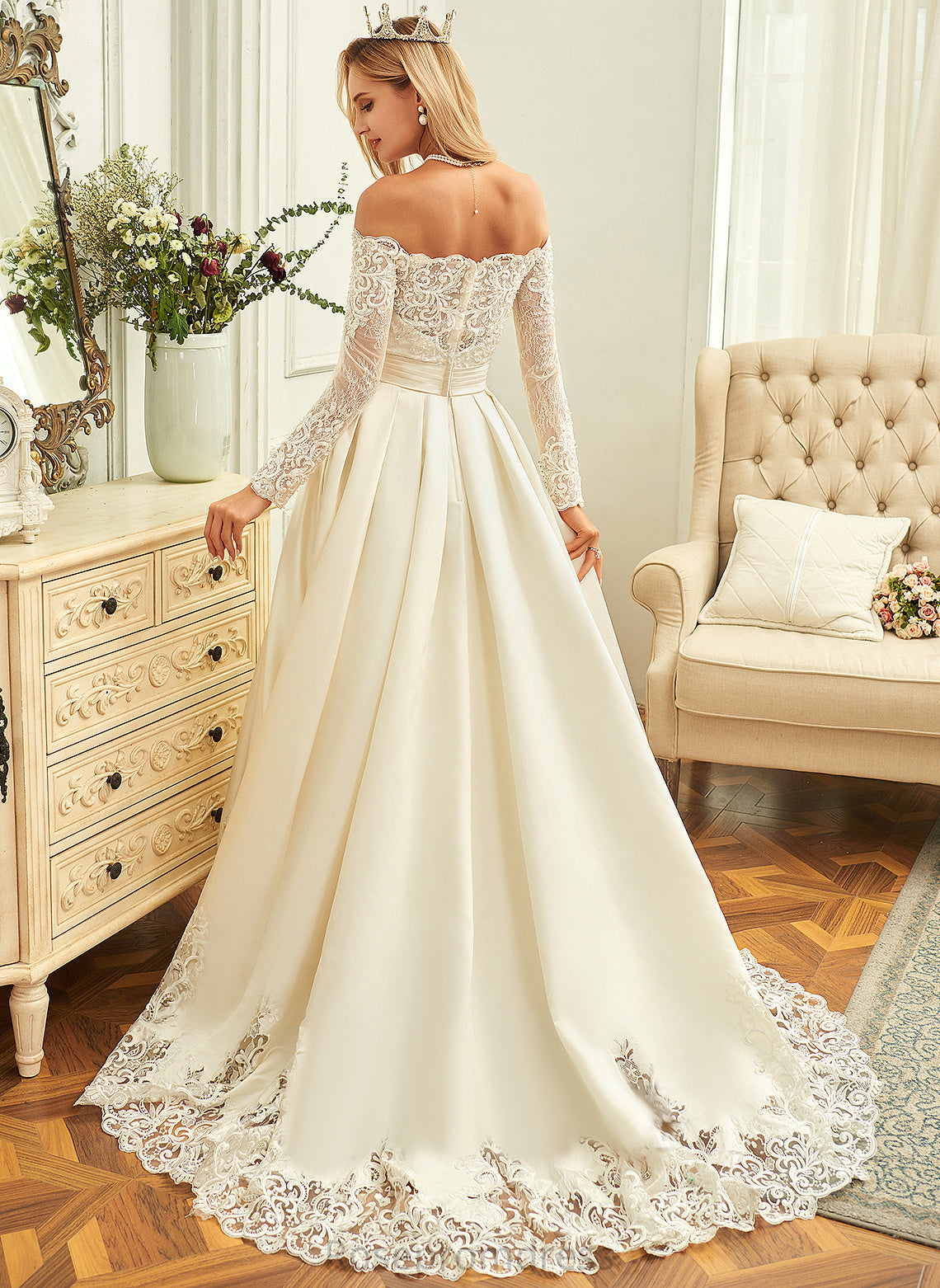 Alaina Sweep Off-the-Shoulder Wedding Sequins Wedding Dresses Lace Ball-Gown/Princess Train Dress With Beading Satin