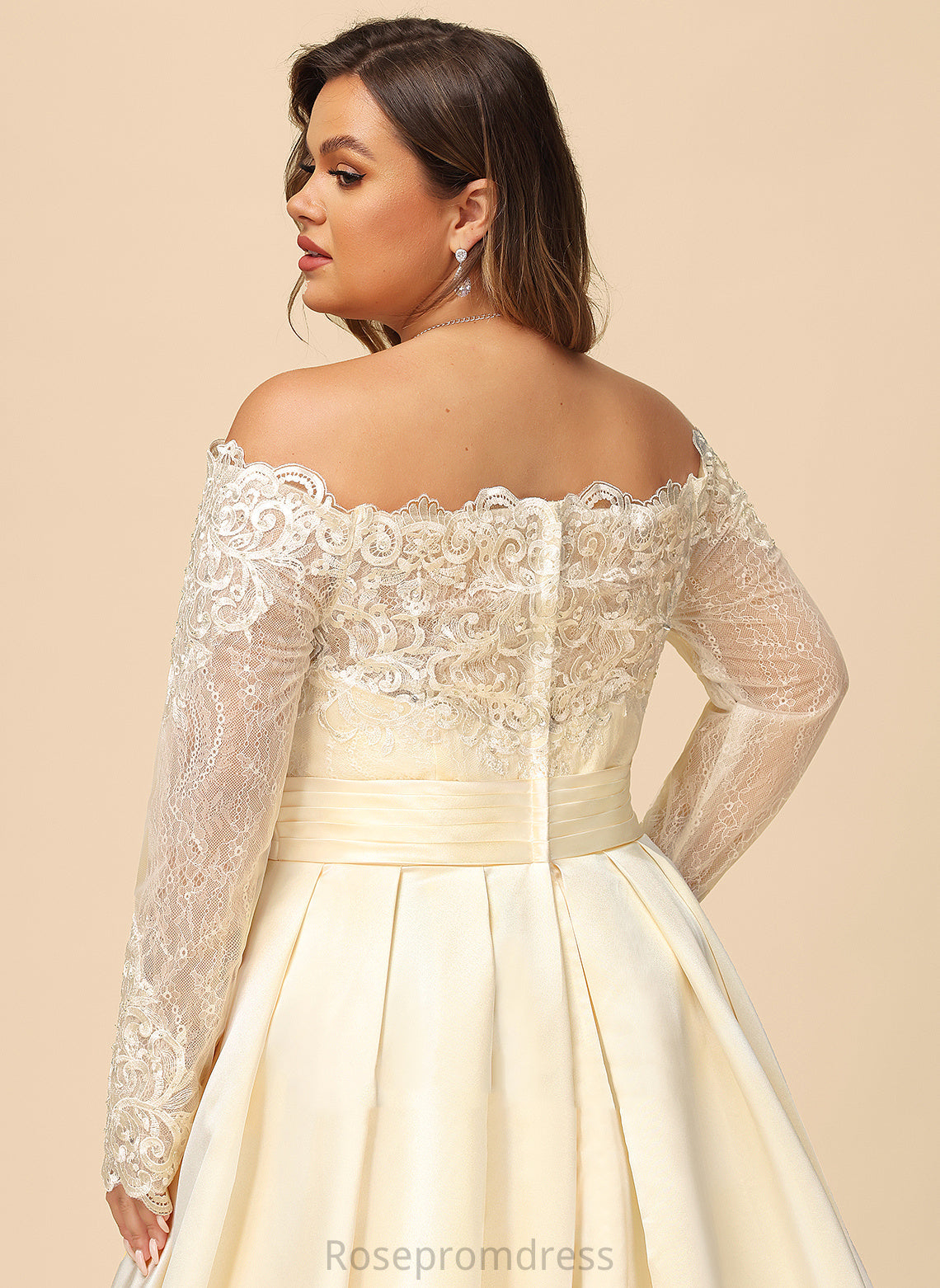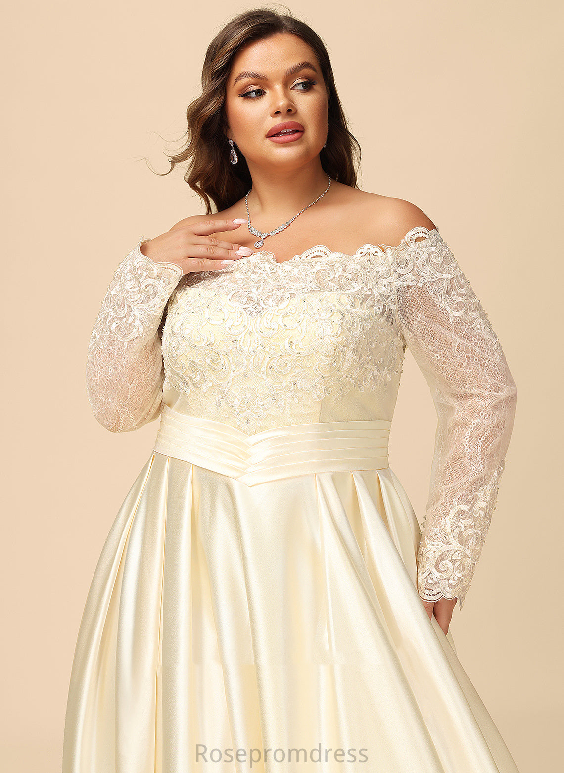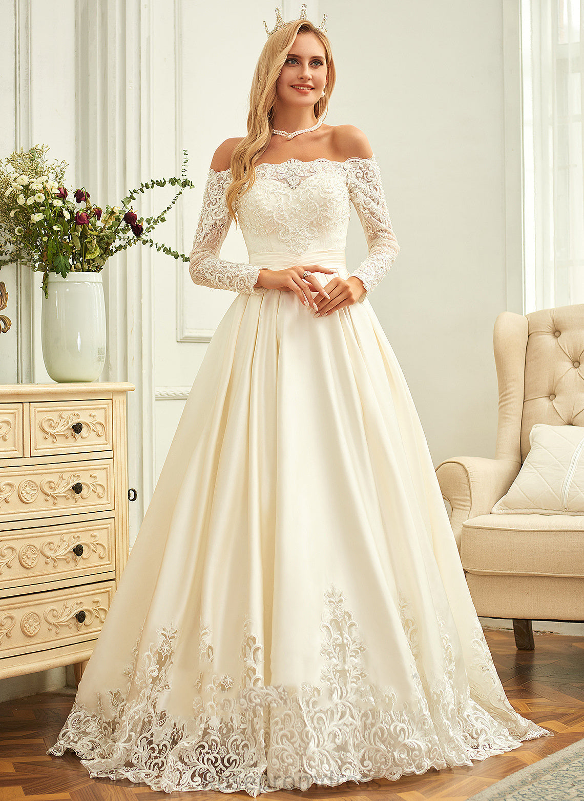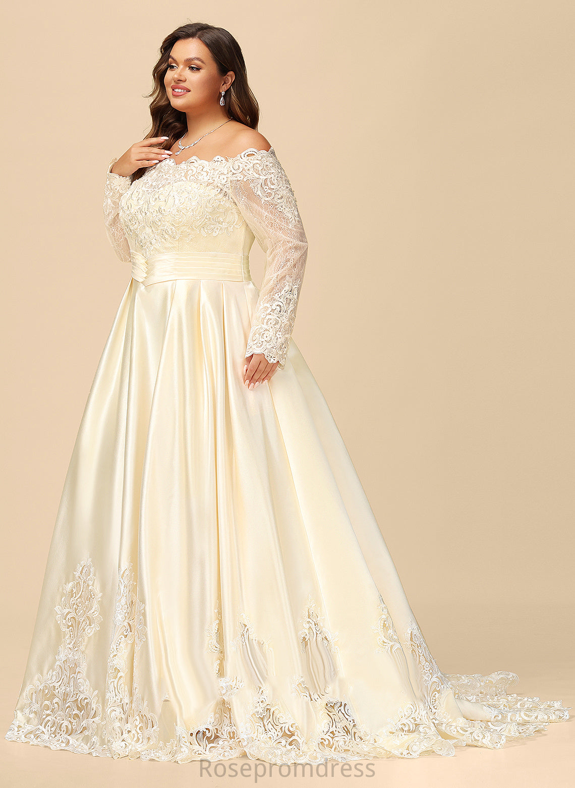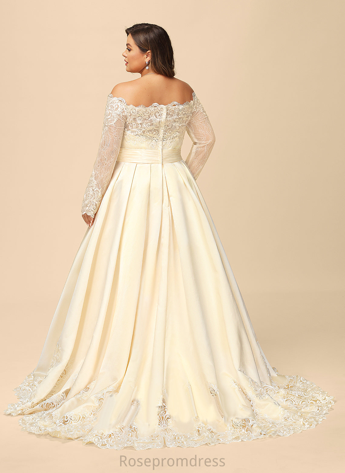 Alaina Sweep Off-the-Shoulder Wedding Sequins Wedding Dresses Lace Ball-Gown/Princess Train Dress With Beading Satin