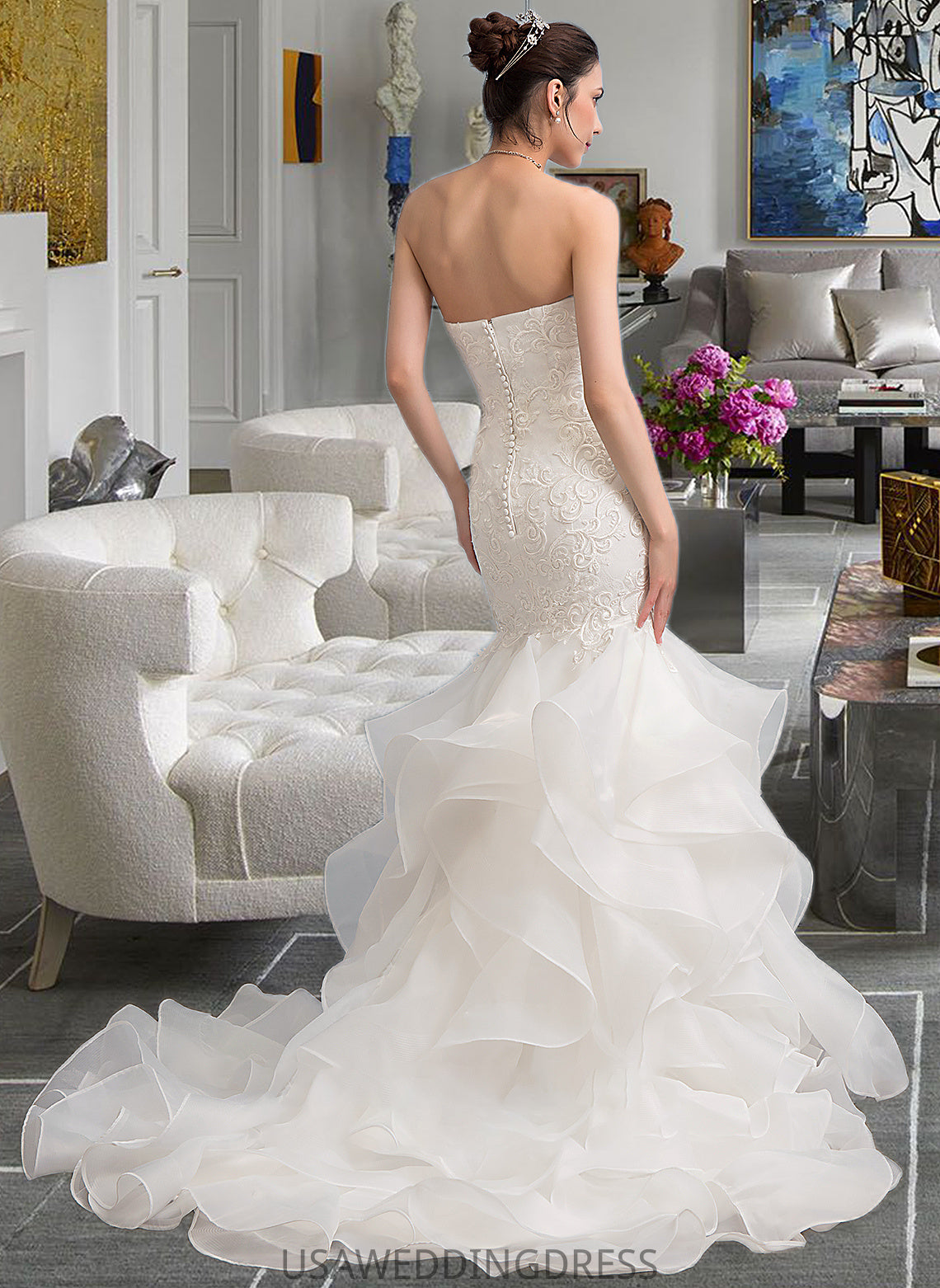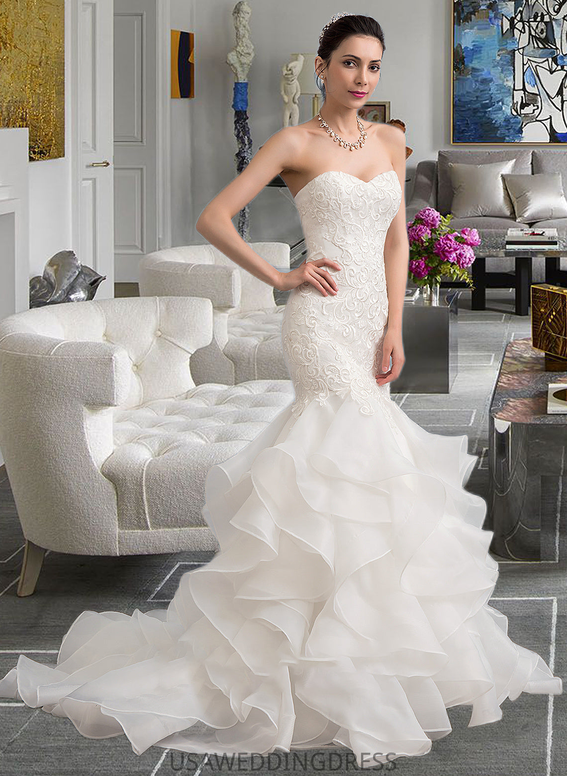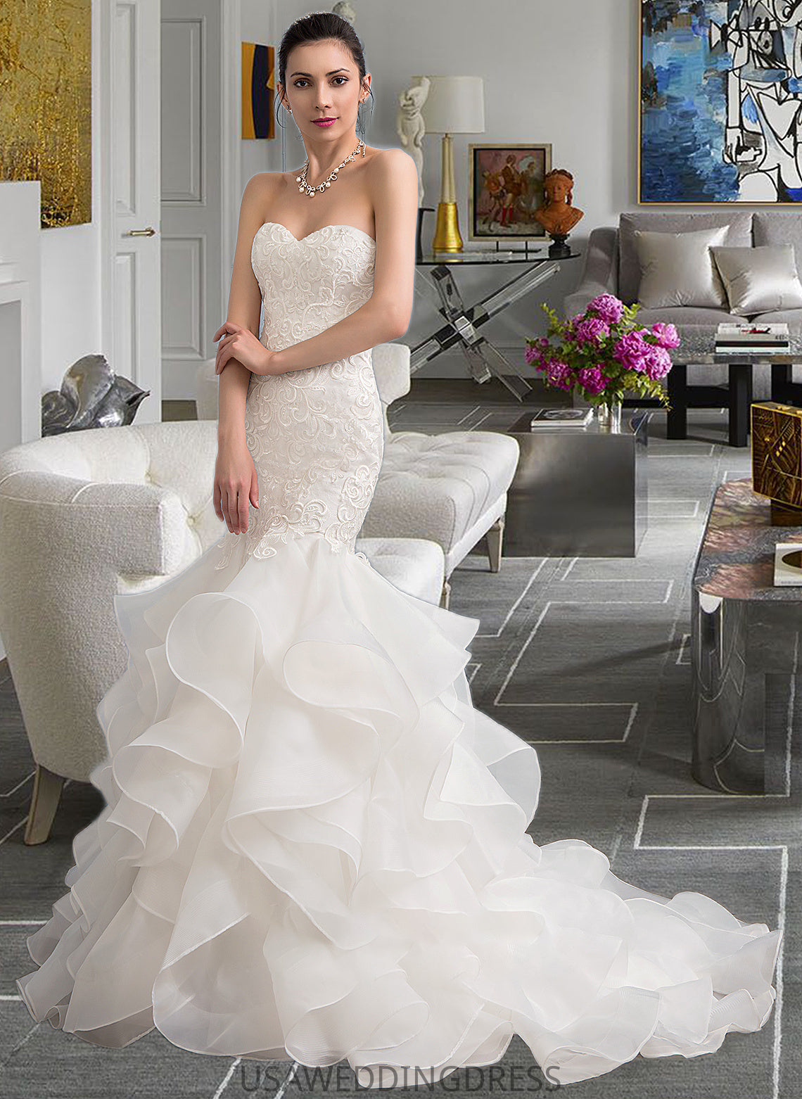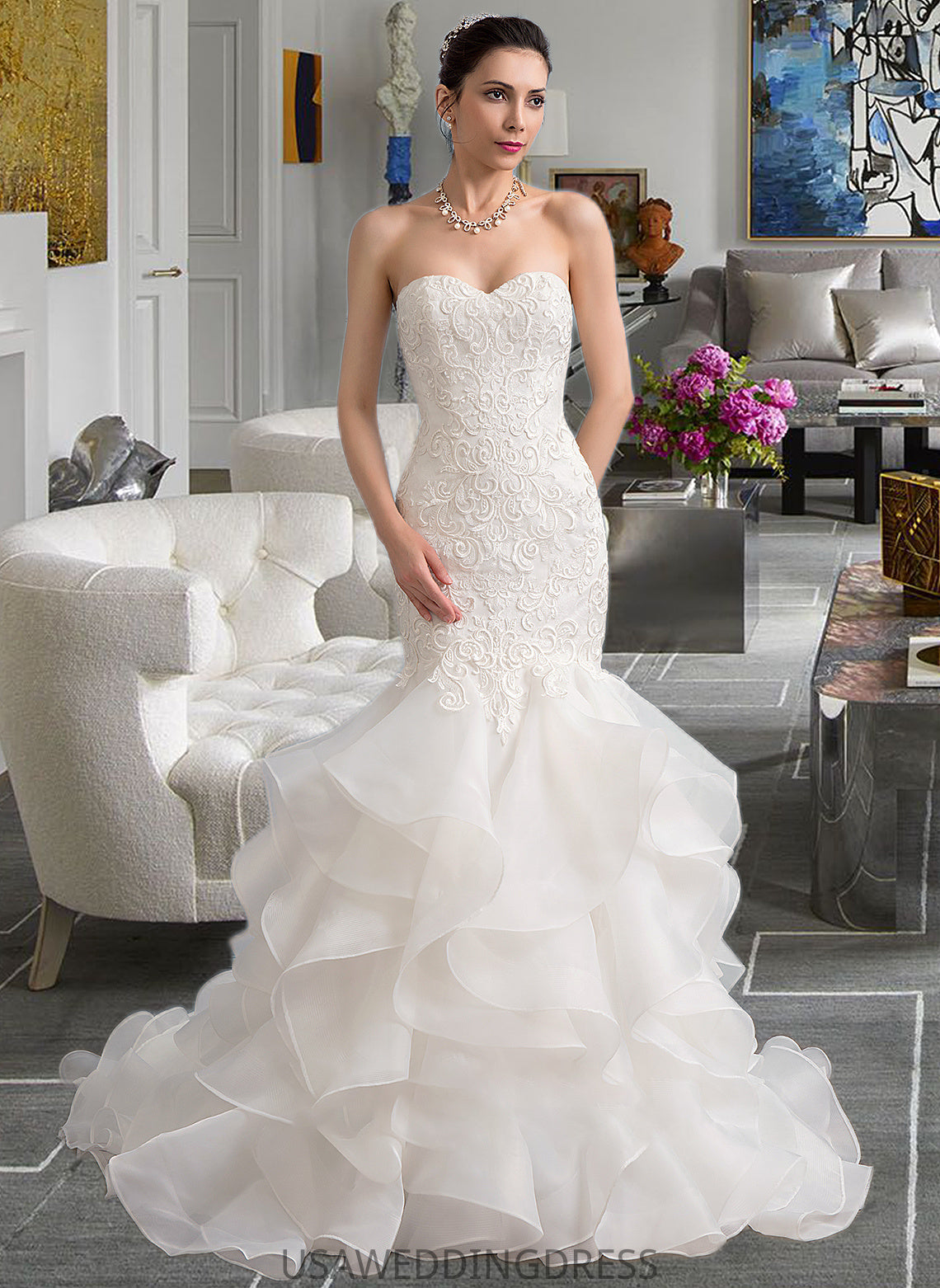 Aleena Trumpet/Mermaid Sweetheart Sweep Train Organza Lace Wedding Dress DSP0013786