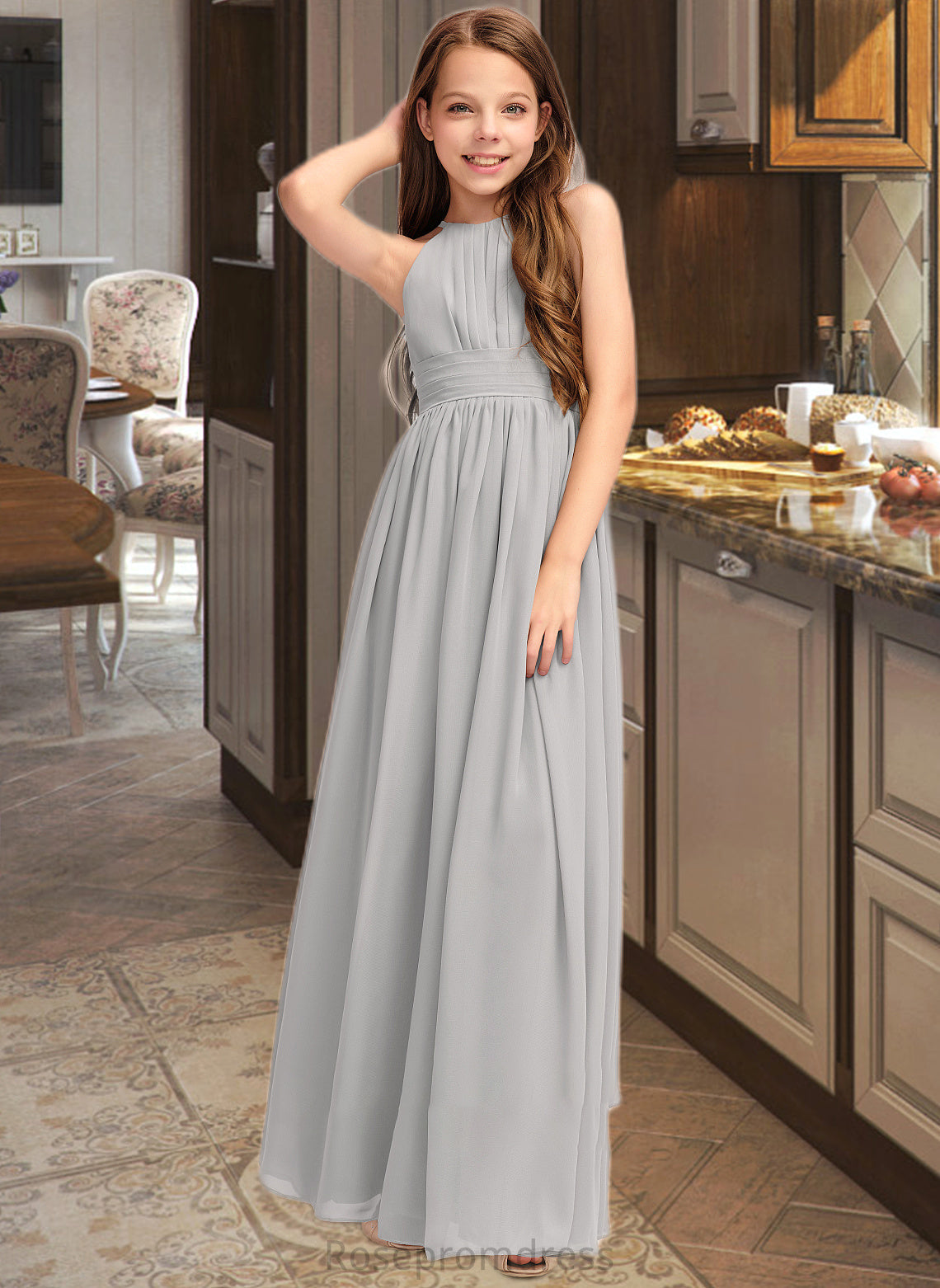 Alexus A-Line Scoop Neck Floor-Length Chiffon Junior Bridesmaid Dress With Ruffle SRSP0013325