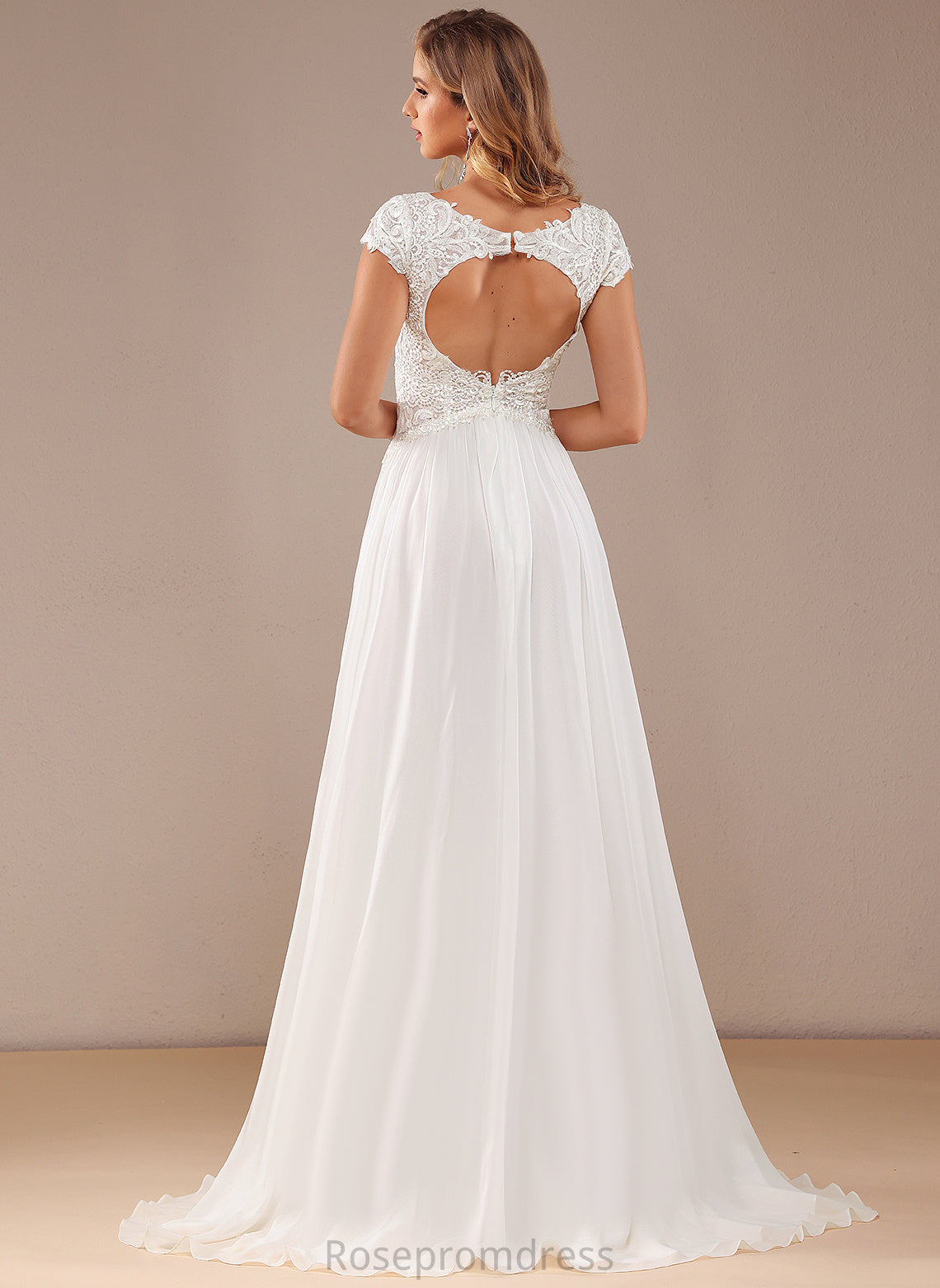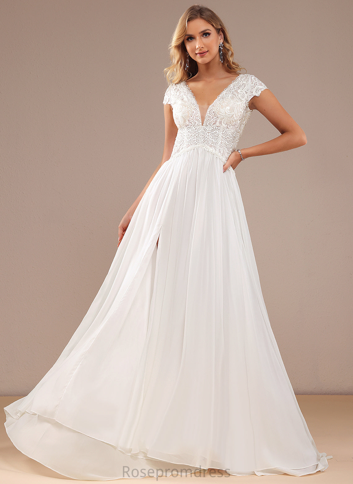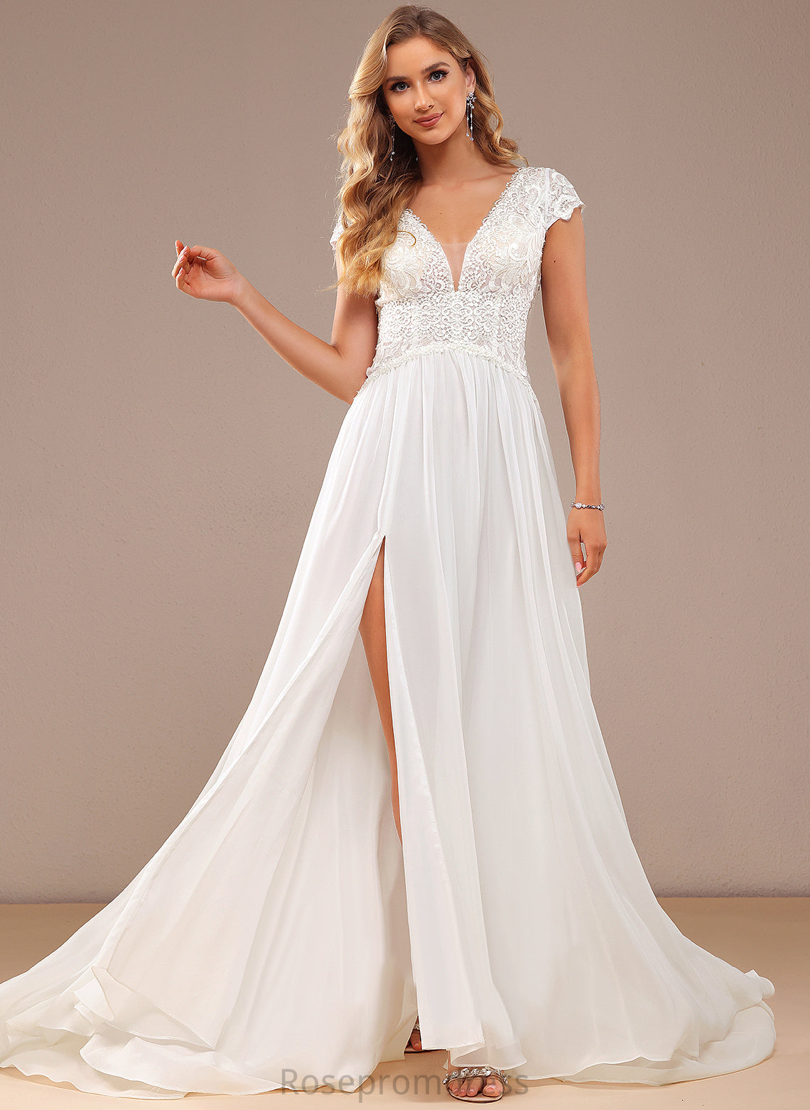 Alia Front Lace A-Line Sweep Train Split Dress Wedding V-neck Lace Wedding Dresses With Chiffon