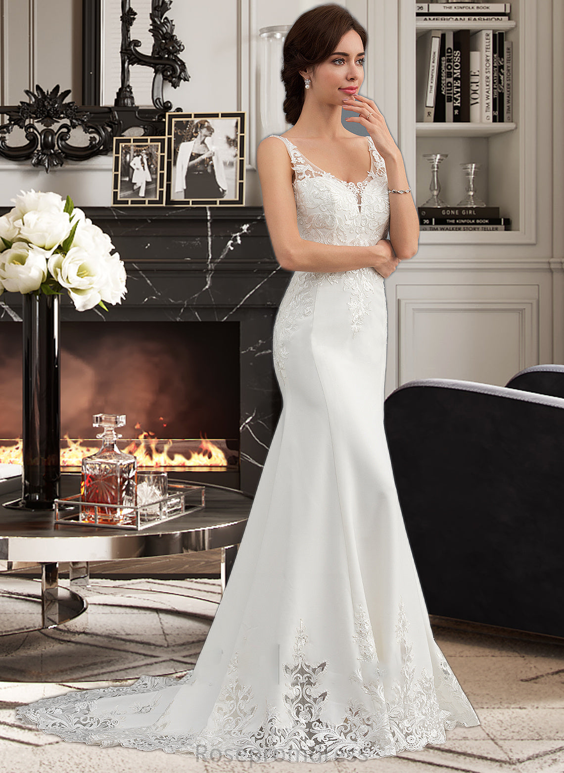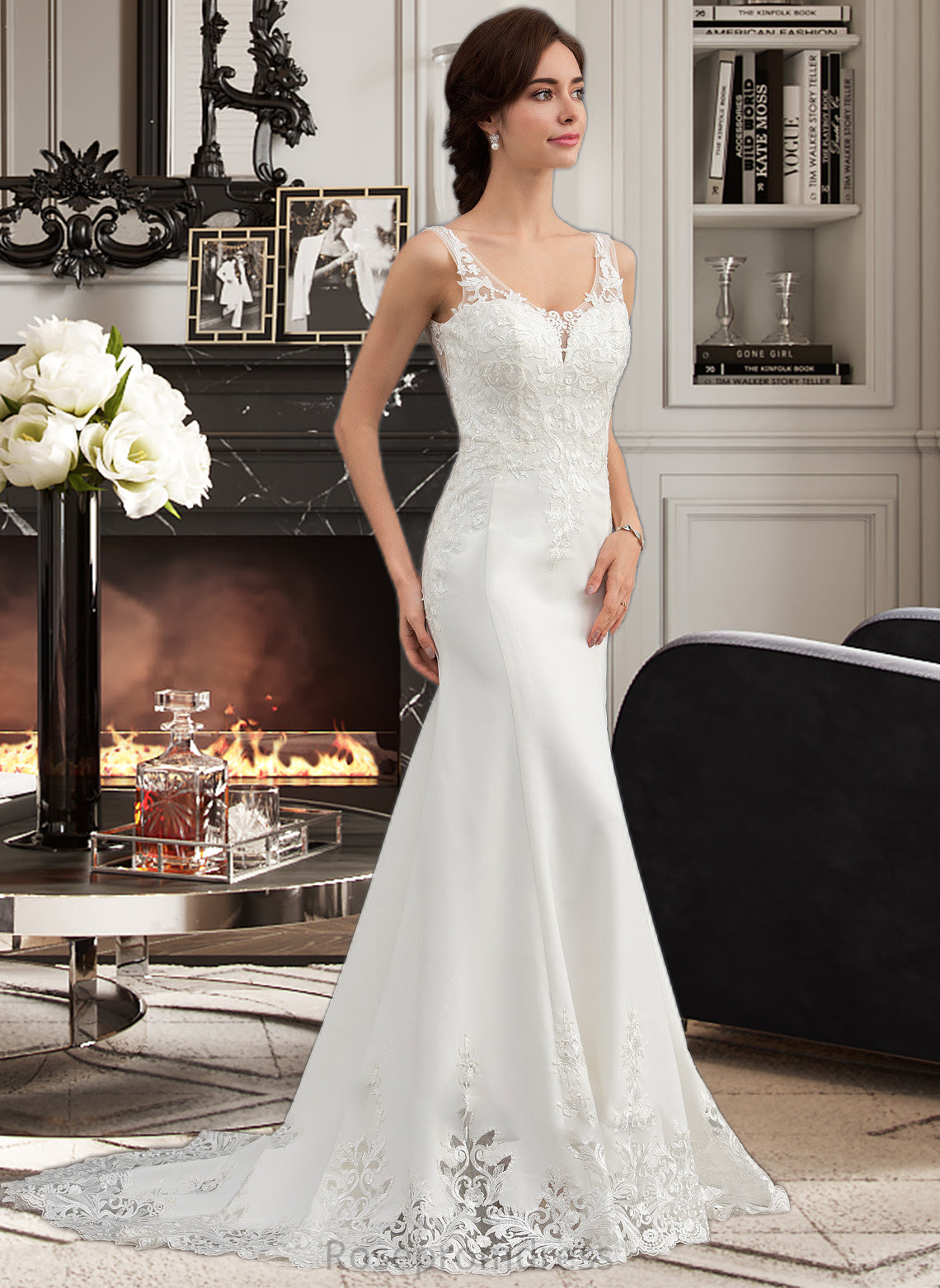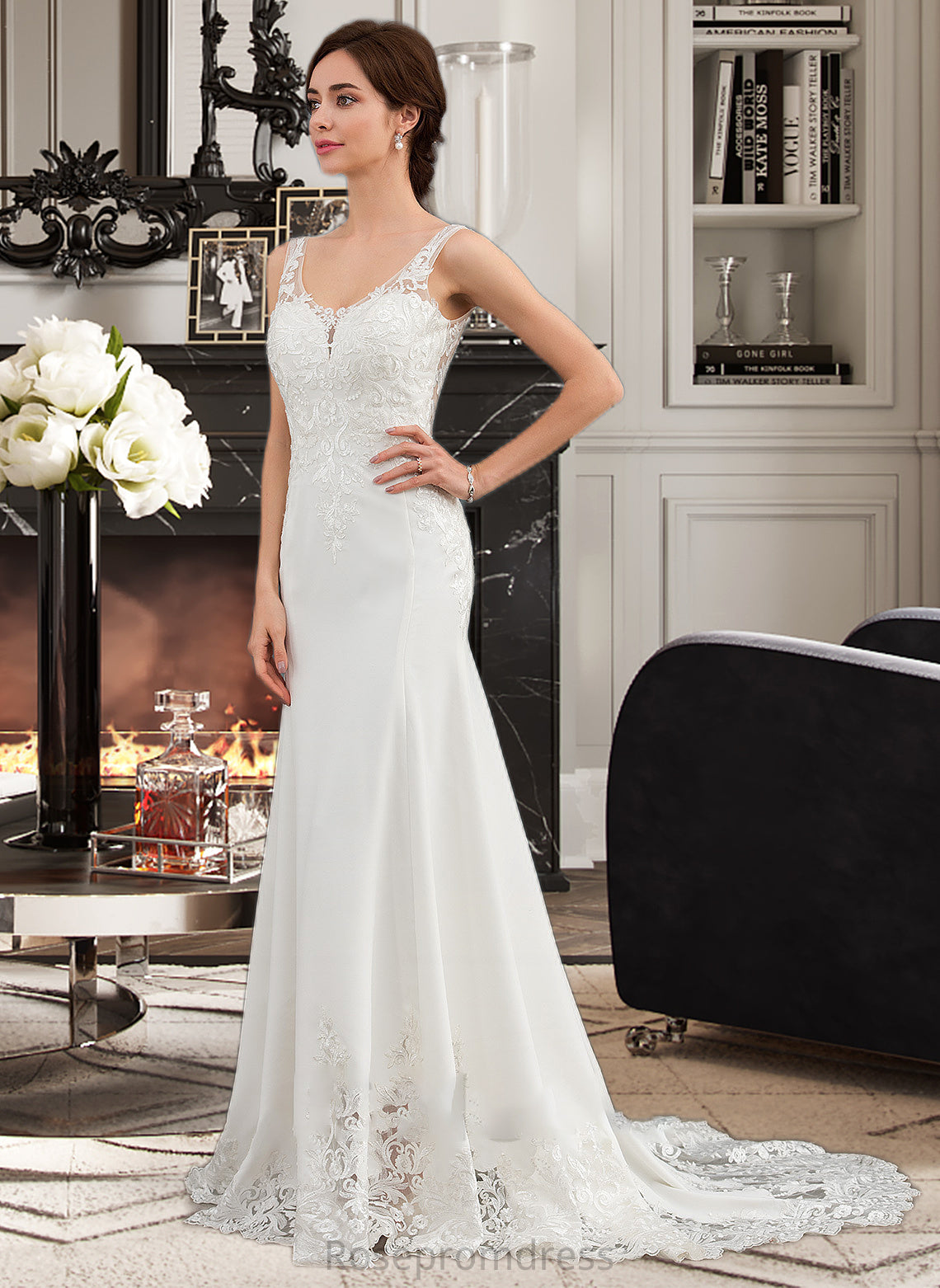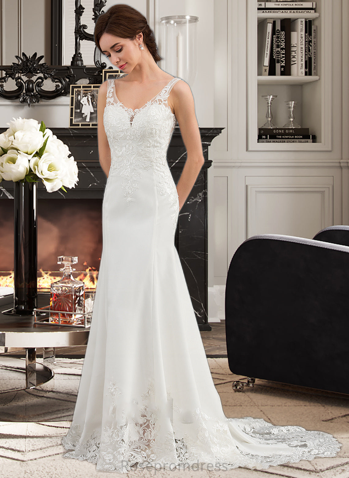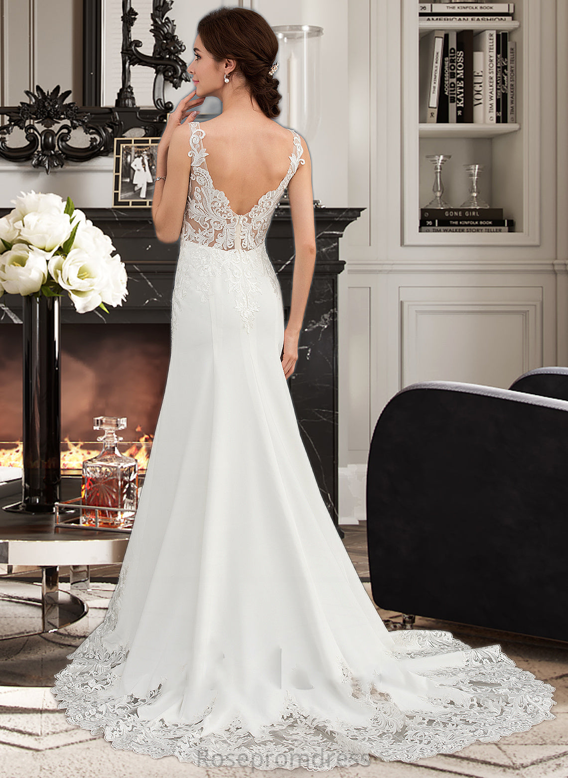 Alisson Trumpet/Mermaid V-neck Court Train Lace Stretch Crepe Wedding Dress With Sequins SRSP0013738