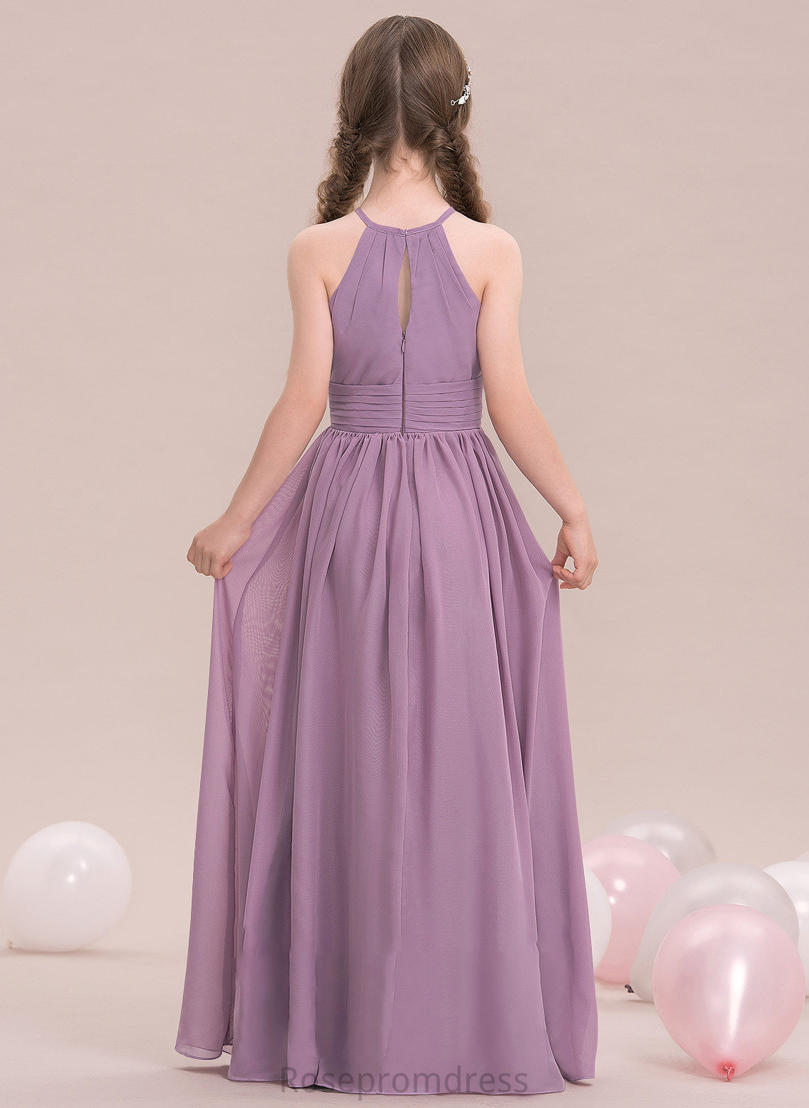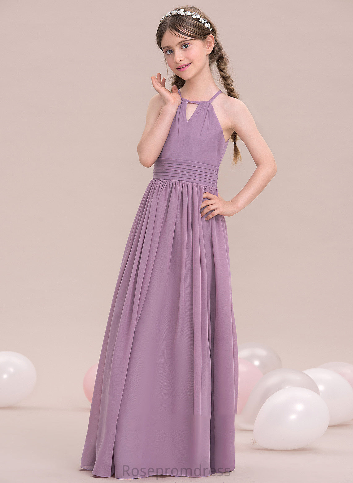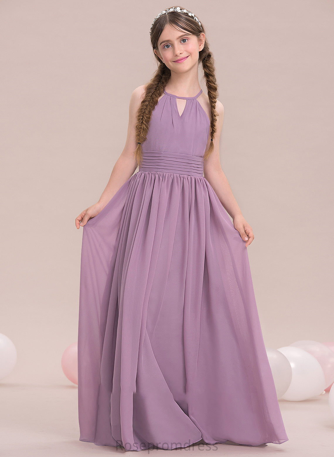 Aliya A-LineScoopNeckFloor-LengthChiffonJuniorBridesmaidDressWithRuffle#119580 Junior Bridesmaid Dresses