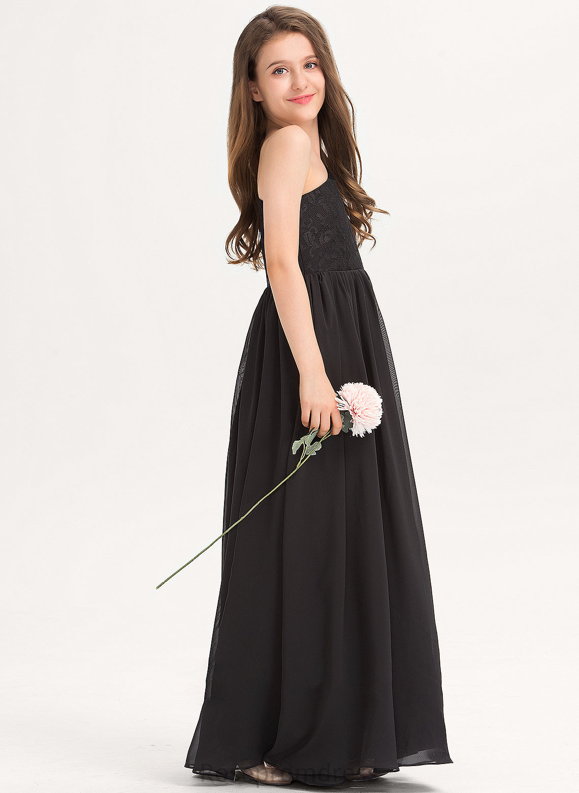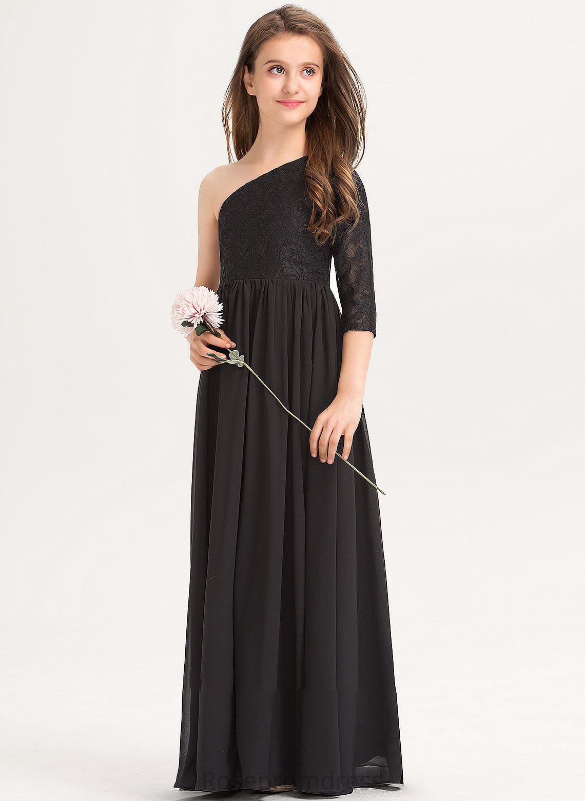 Aliyah Lace One-Shoulder Floor-Length Chiffon Junior Bridesmaid Dresses A-Line