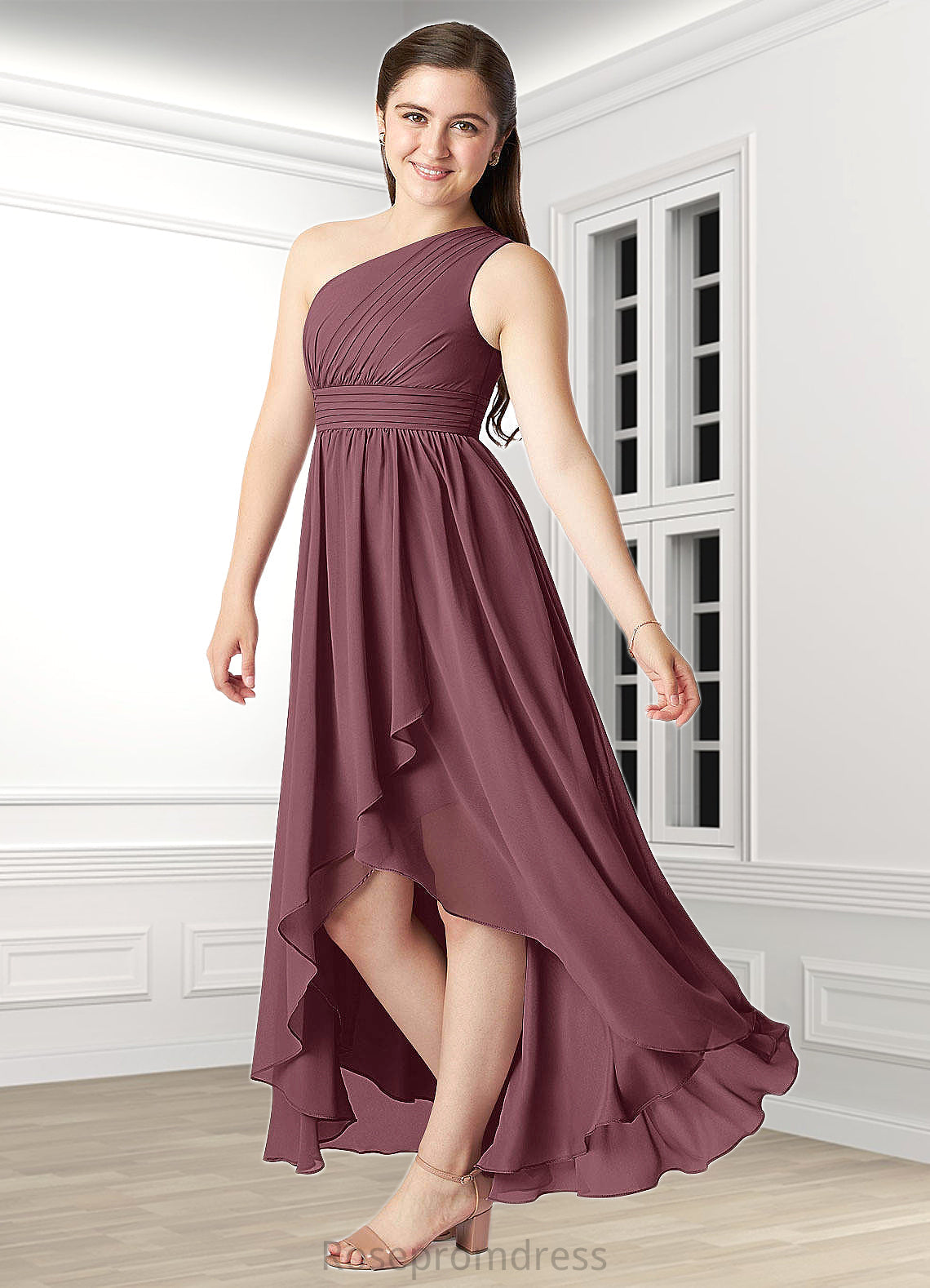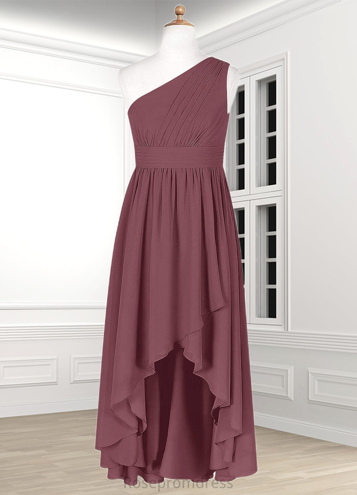 Allisson A-Line Pleated Chiffon Asymmetrical Junior Bridesmaid Dress SRSP0019990