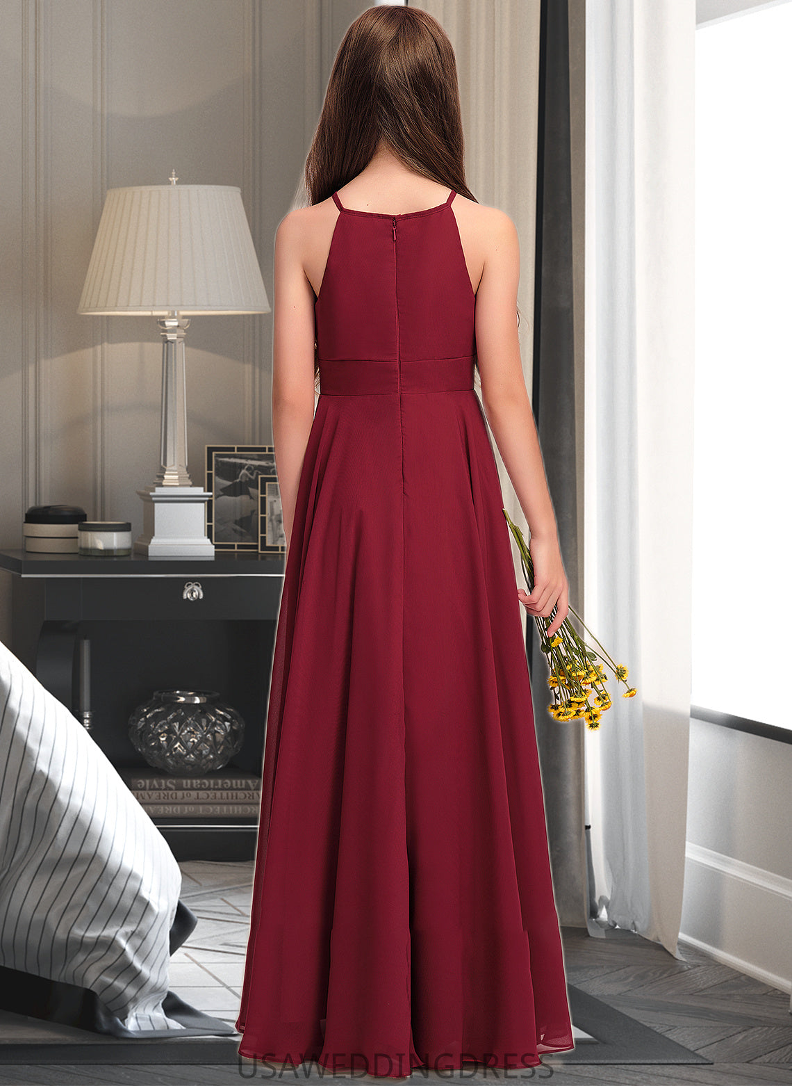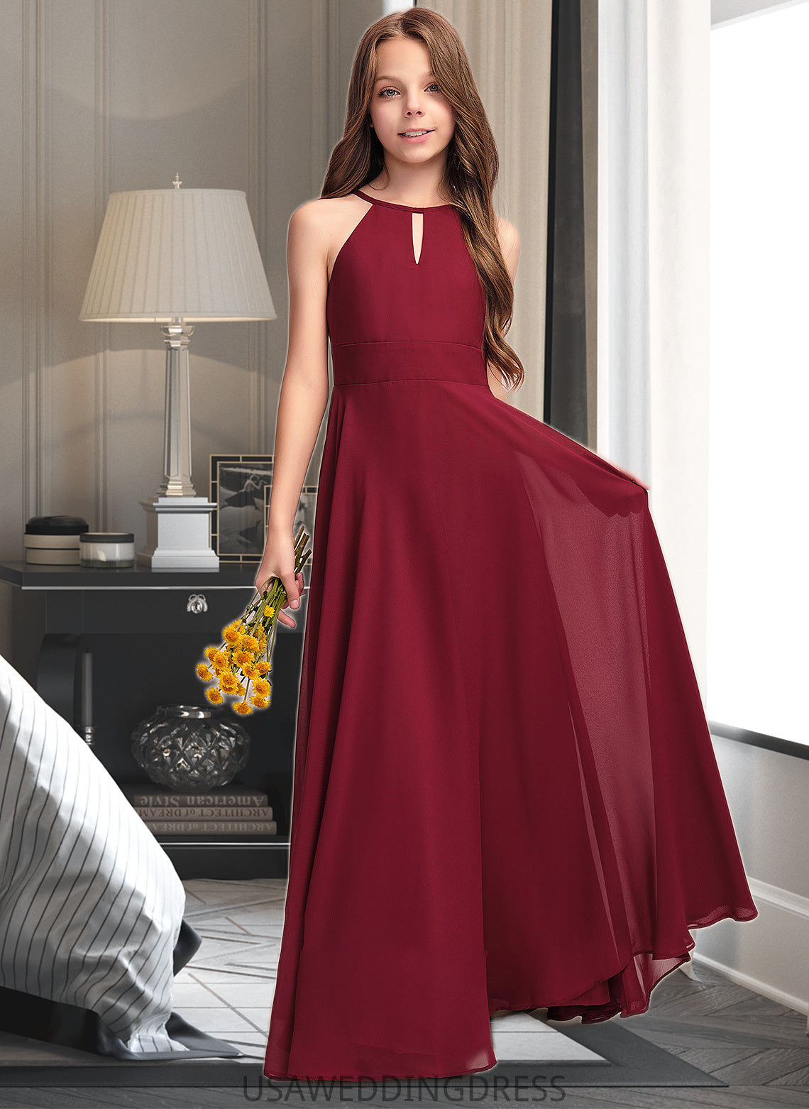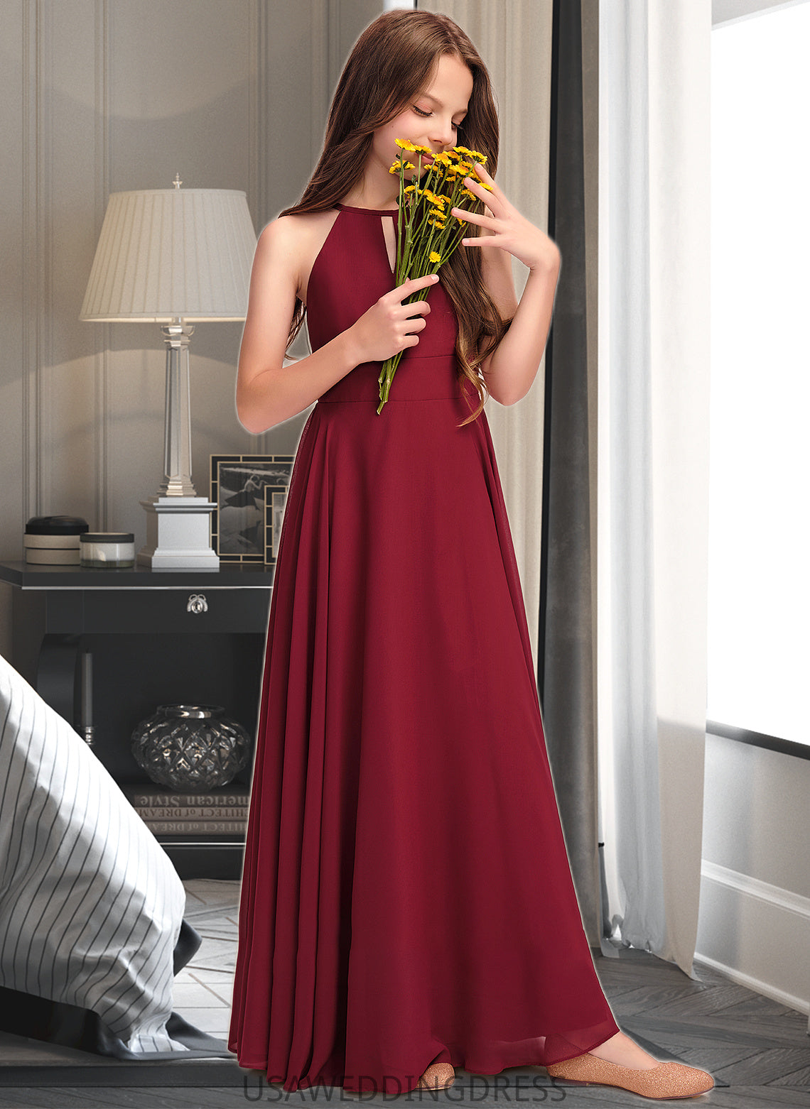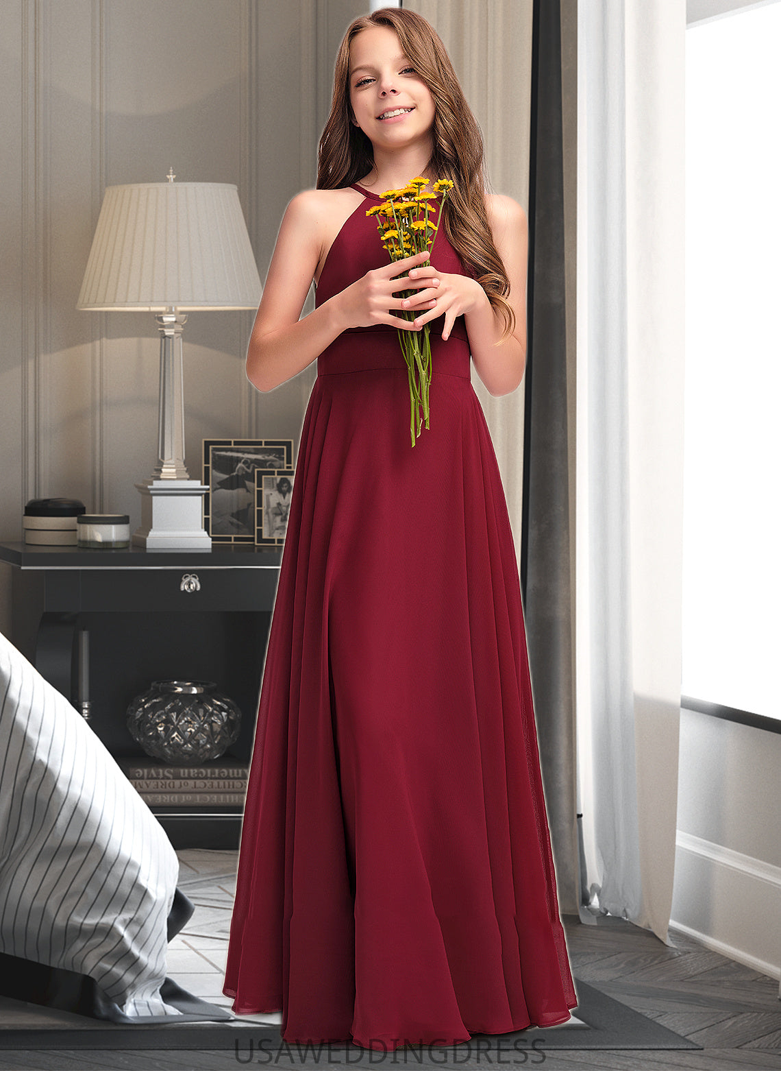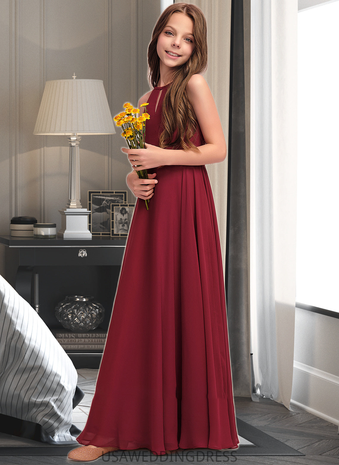 Alma A-Line Scoop Neck Floor-Length Chiffon Junior Bridesmaid Dress DSP0013357