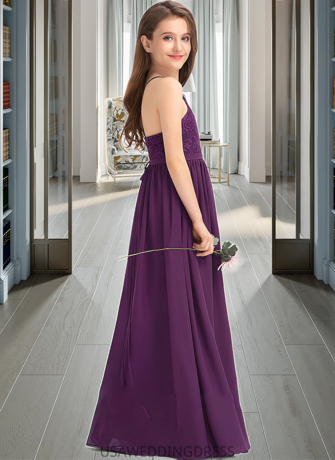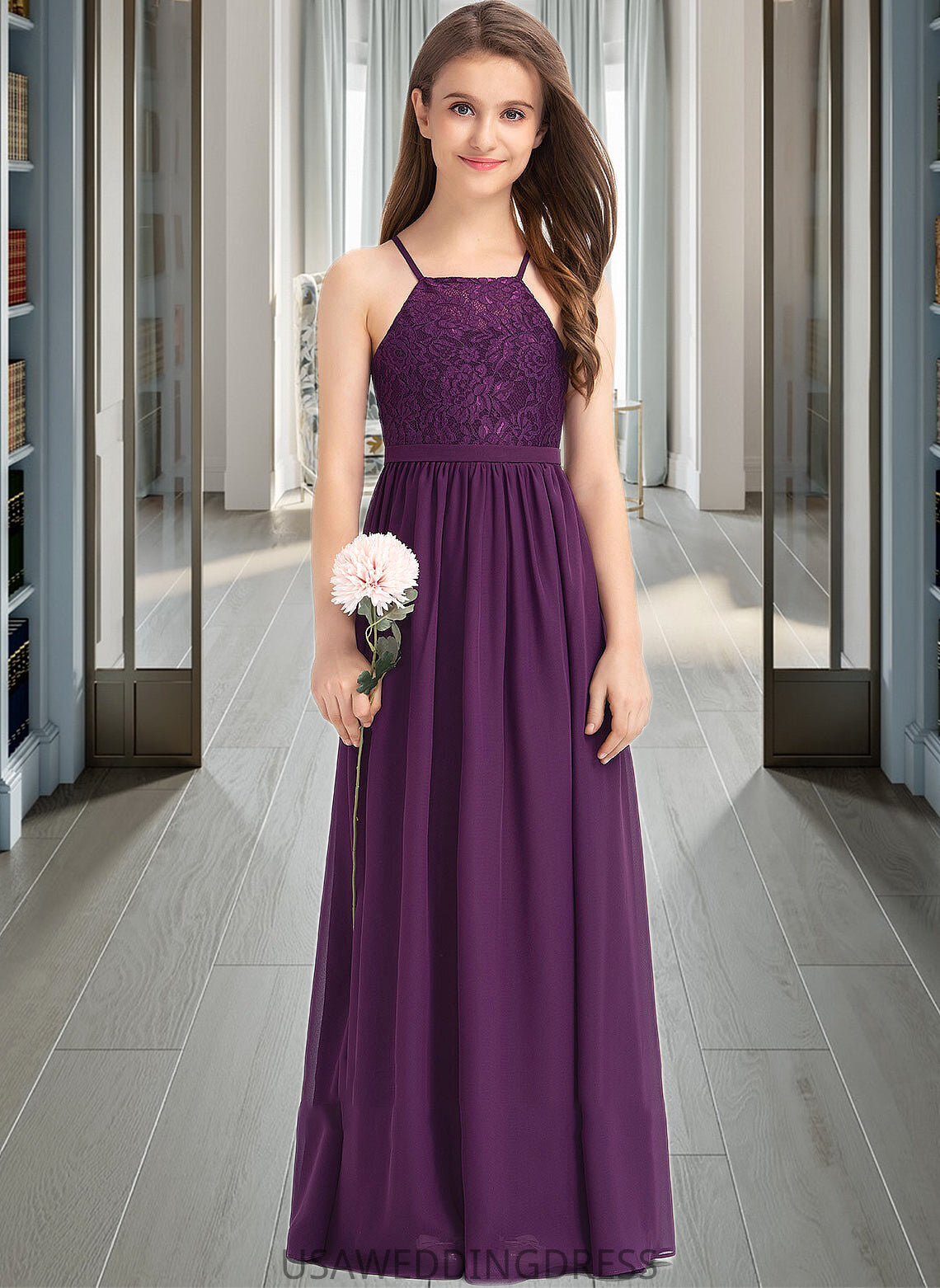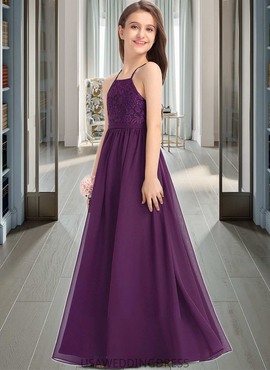 Alondra A-Line Square Neckline Floor-Length Chiffon Lace Junior Bridesmaid Dress With Bow(s) DSP0013438