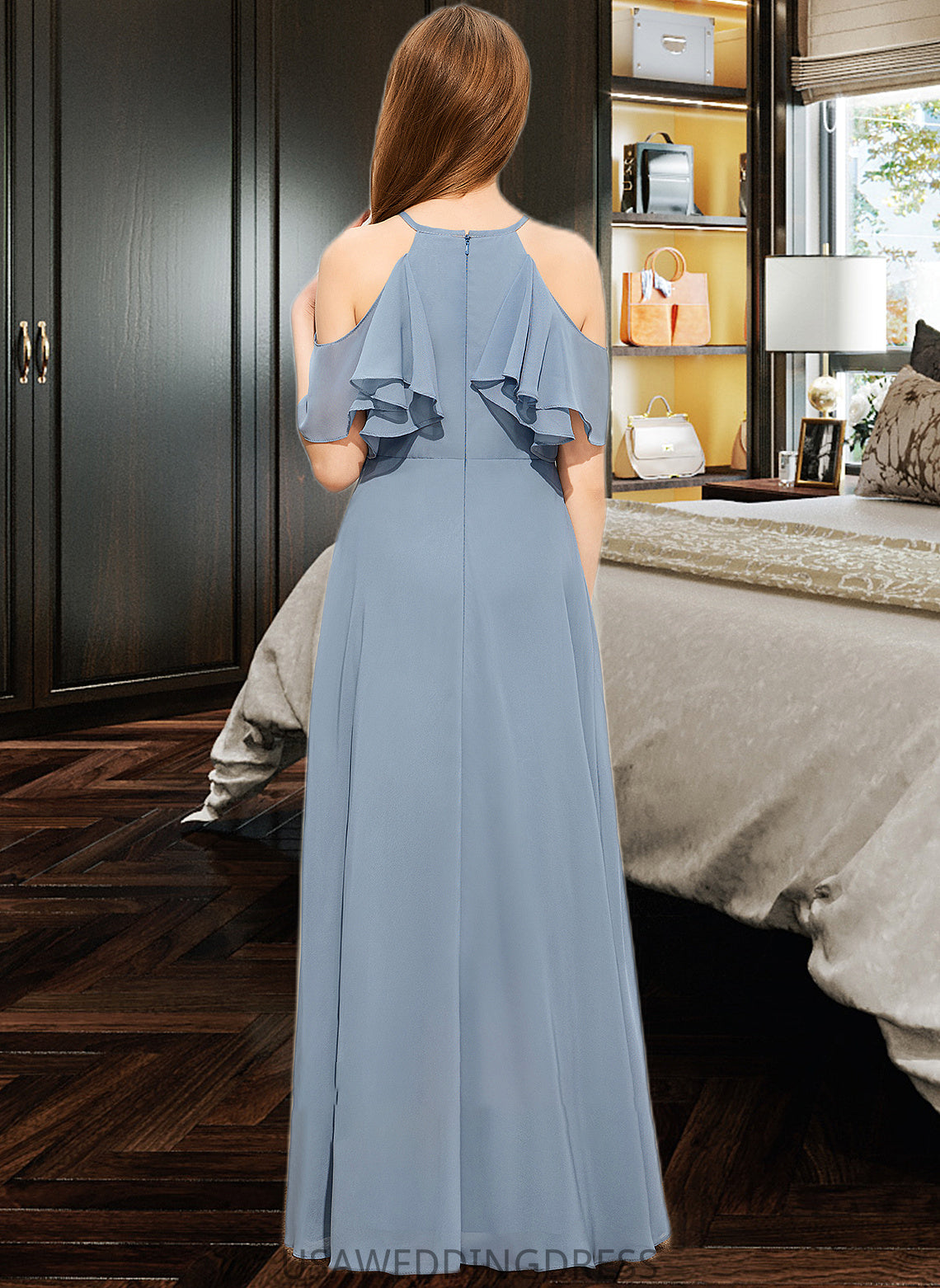Alula A-Line Scoop Neck Floor-Length Chiffon Junior Bridesmaid Dress With Cascading Ruffles DSP0013367