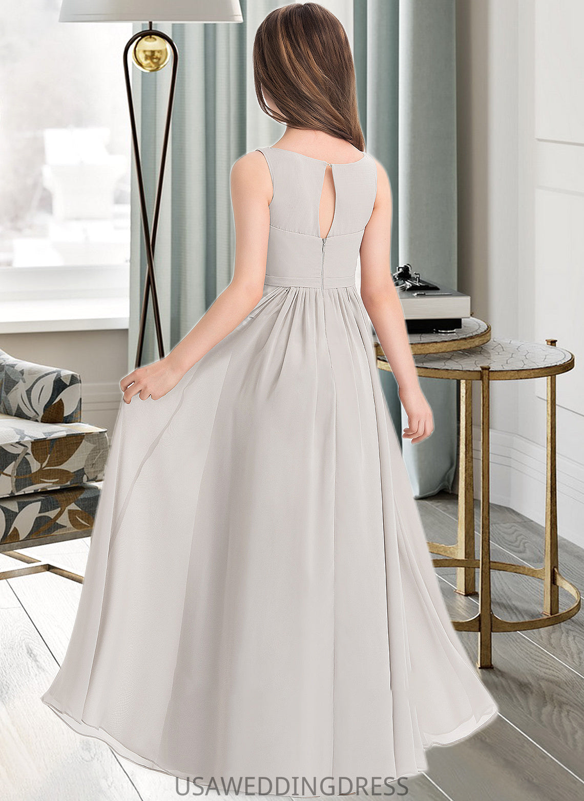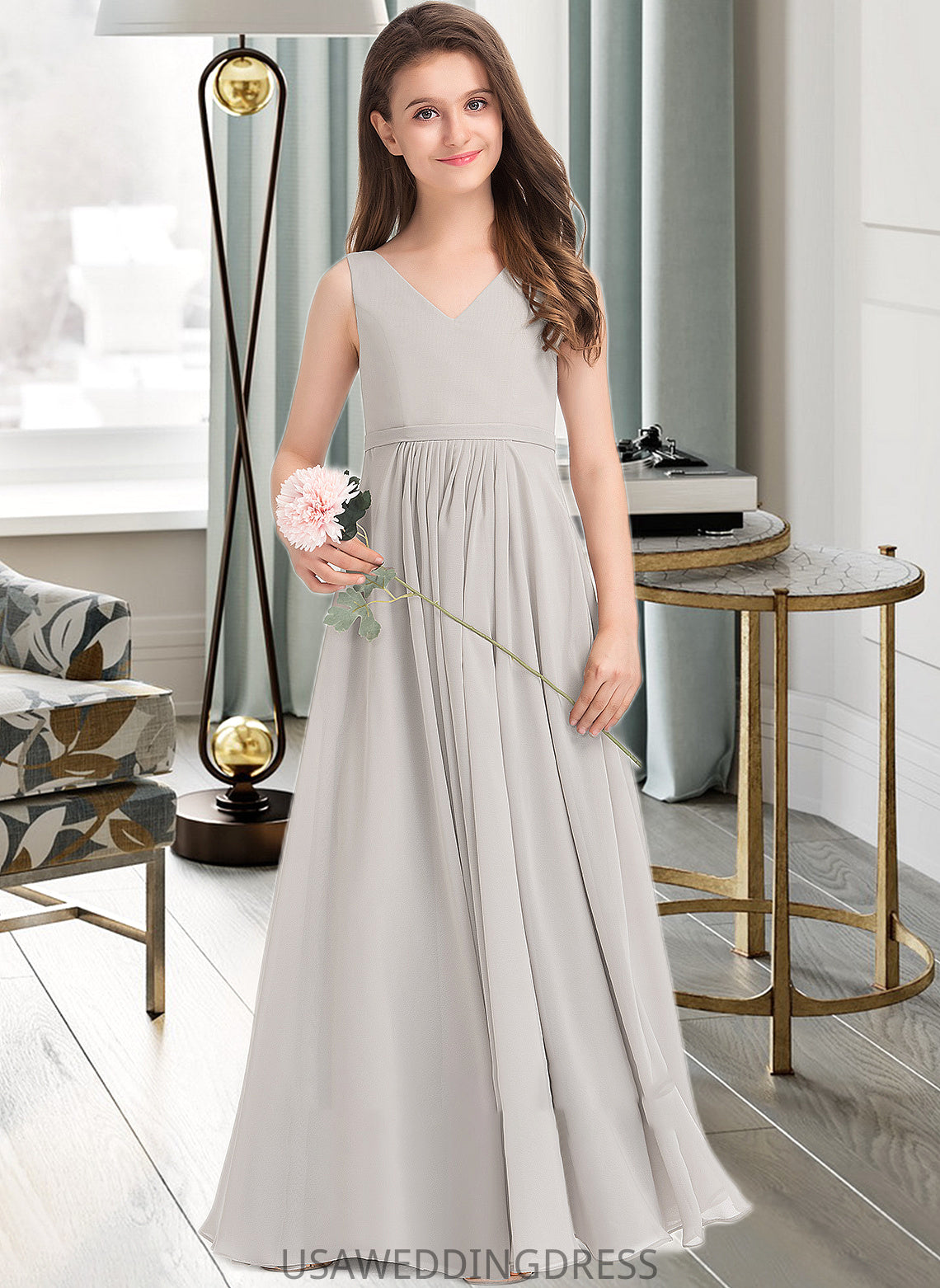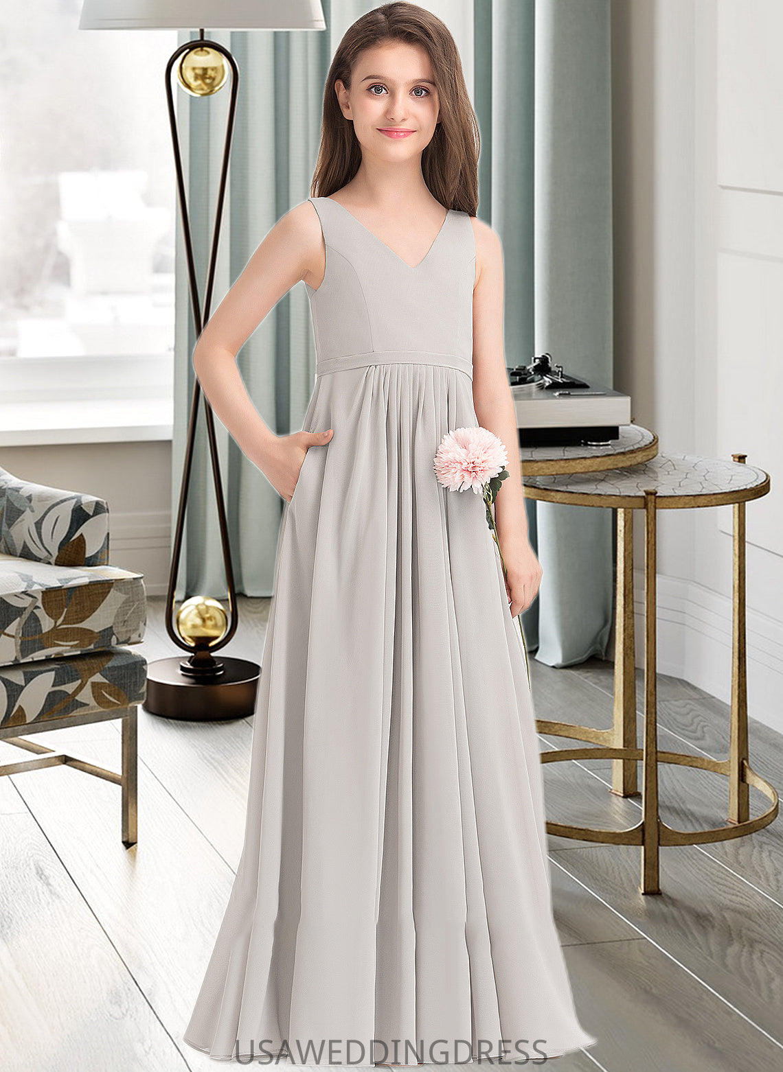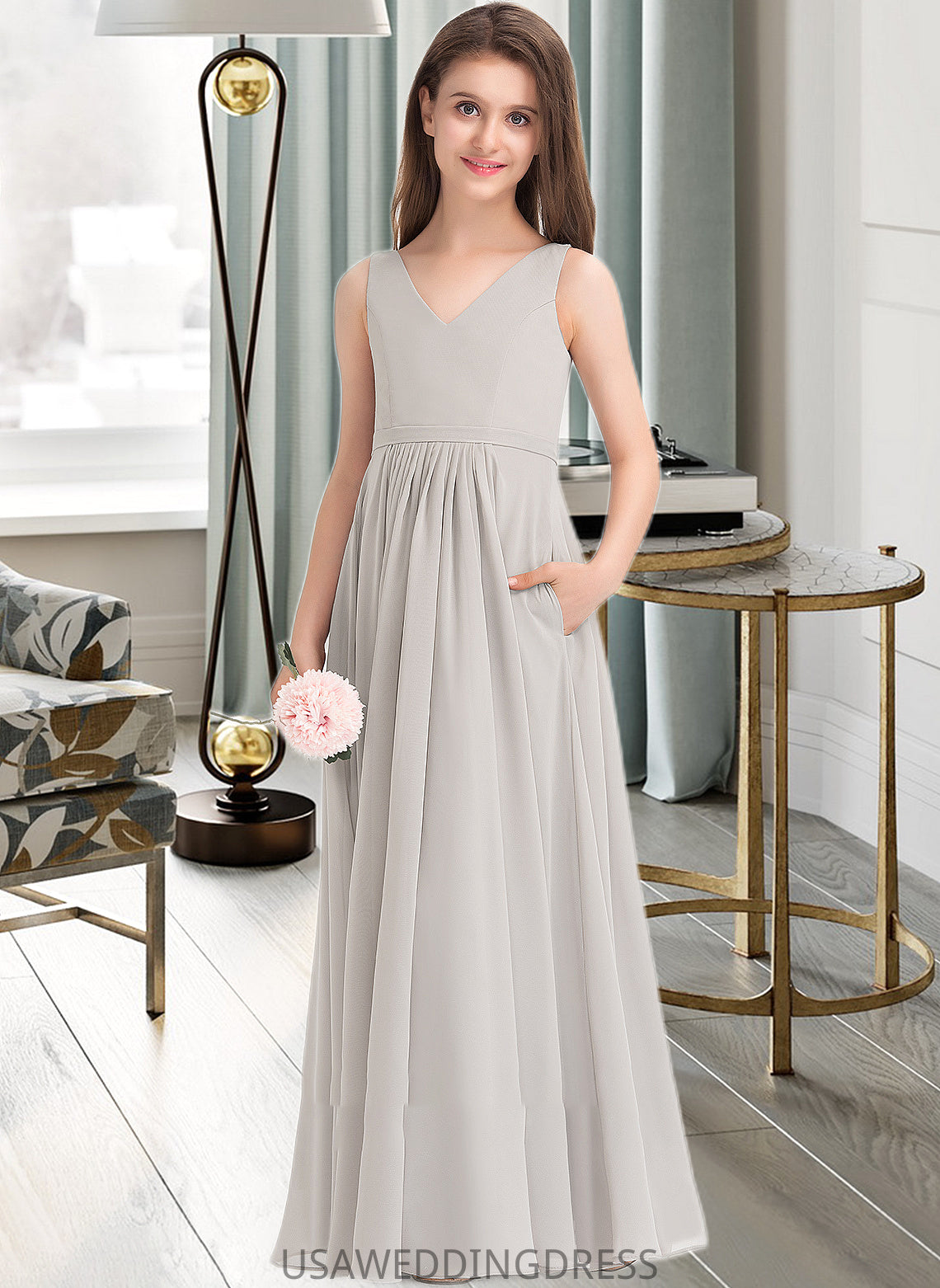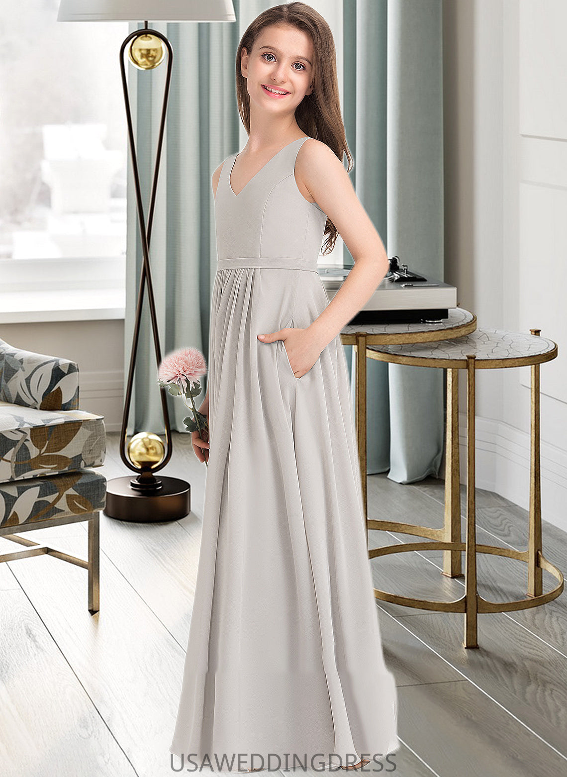 Alyson A-Line V-neck Floor-Length Chiffon Junior Bridesmaid Dress With Pockets DSP0013446