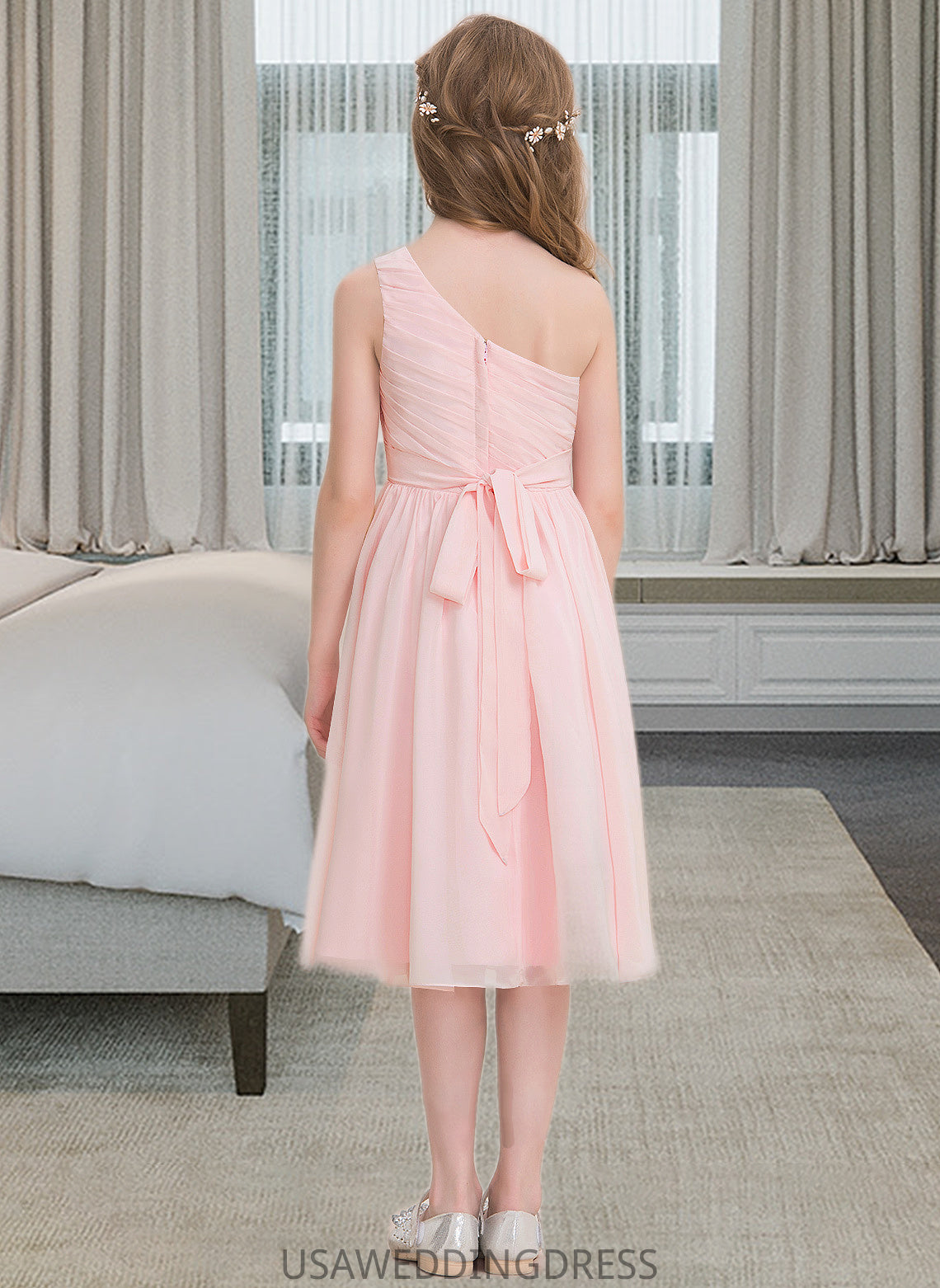 Alyssa A-Line One-Shoulder Knee-Length Chiffon Junior Bridesmaid Dress With Ruffle DSP0013499