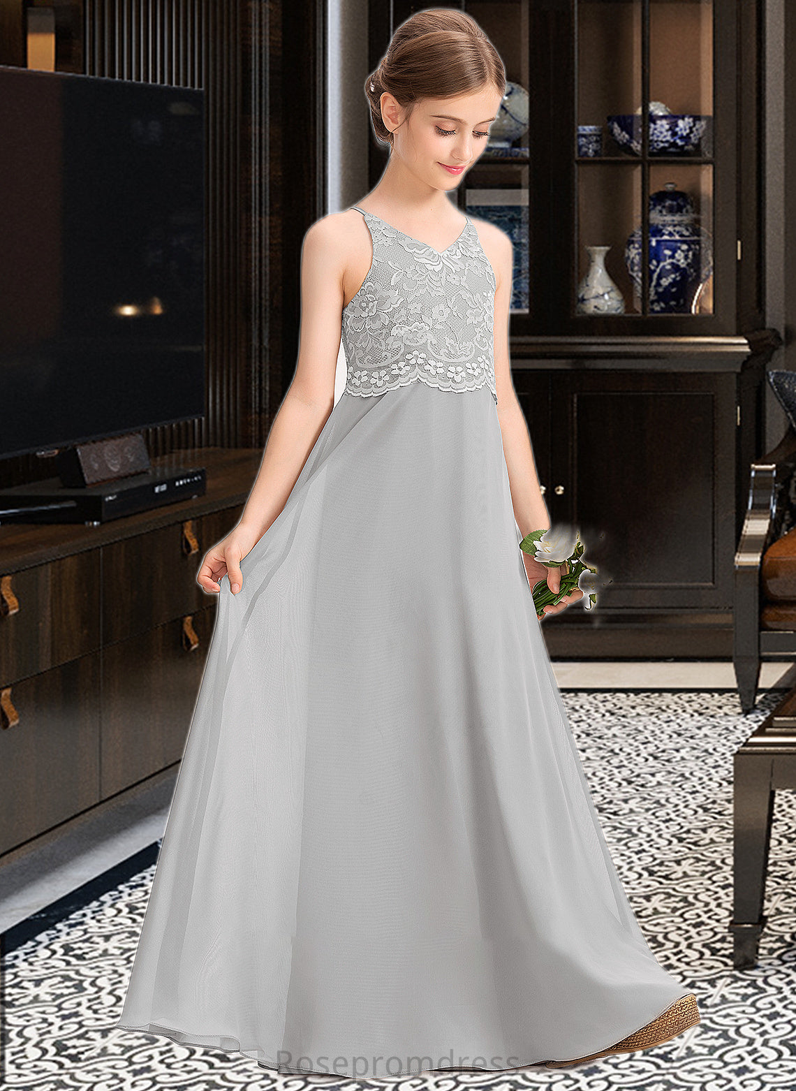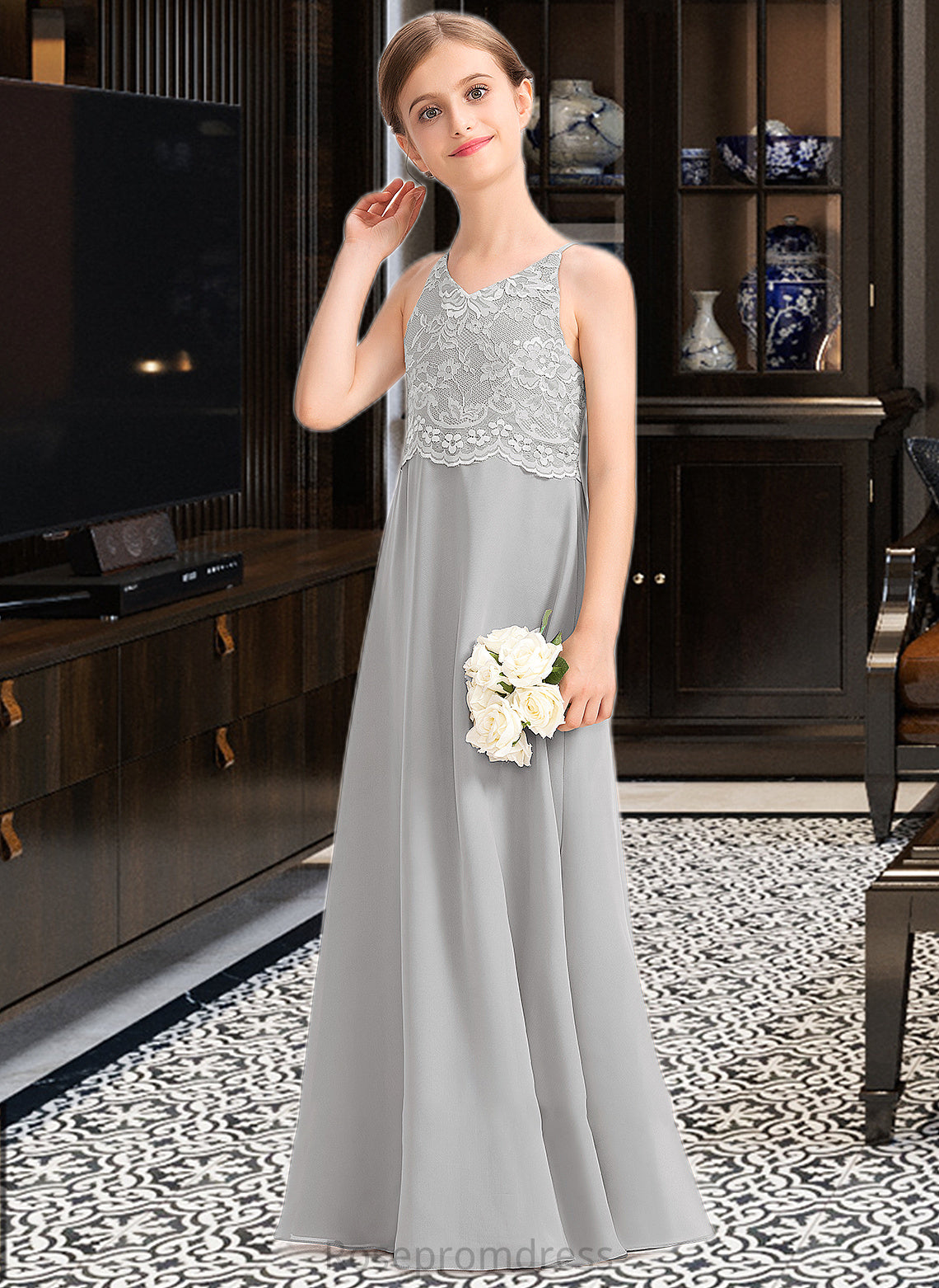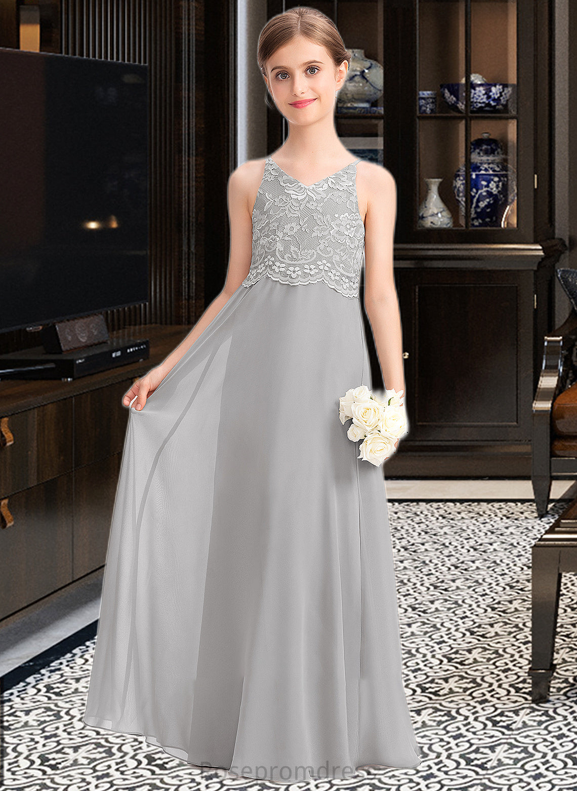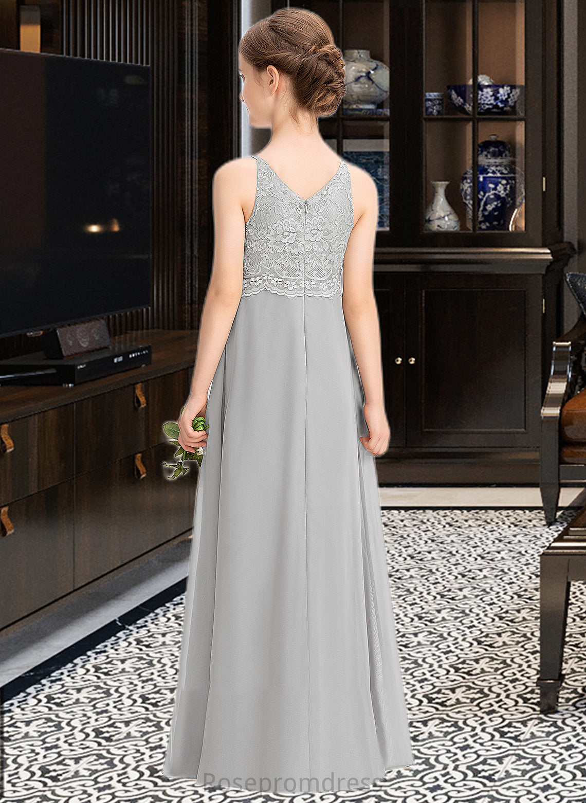 Amani A-Line V-neck Floor-Length Chiffon Lace Junior Bridesmaid Dress SRSP0013579