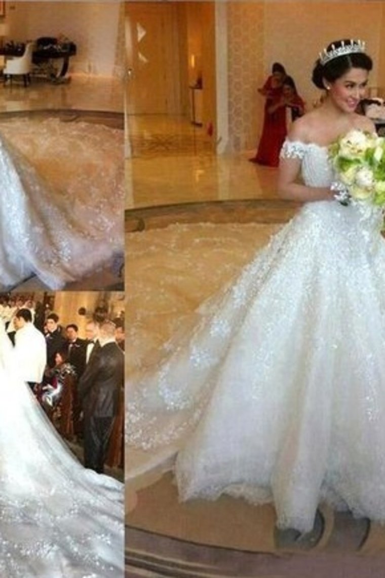 Amazing Off The Shoulder Ivory Lace Tulle Long Wedding Dresses Bridal Dresses