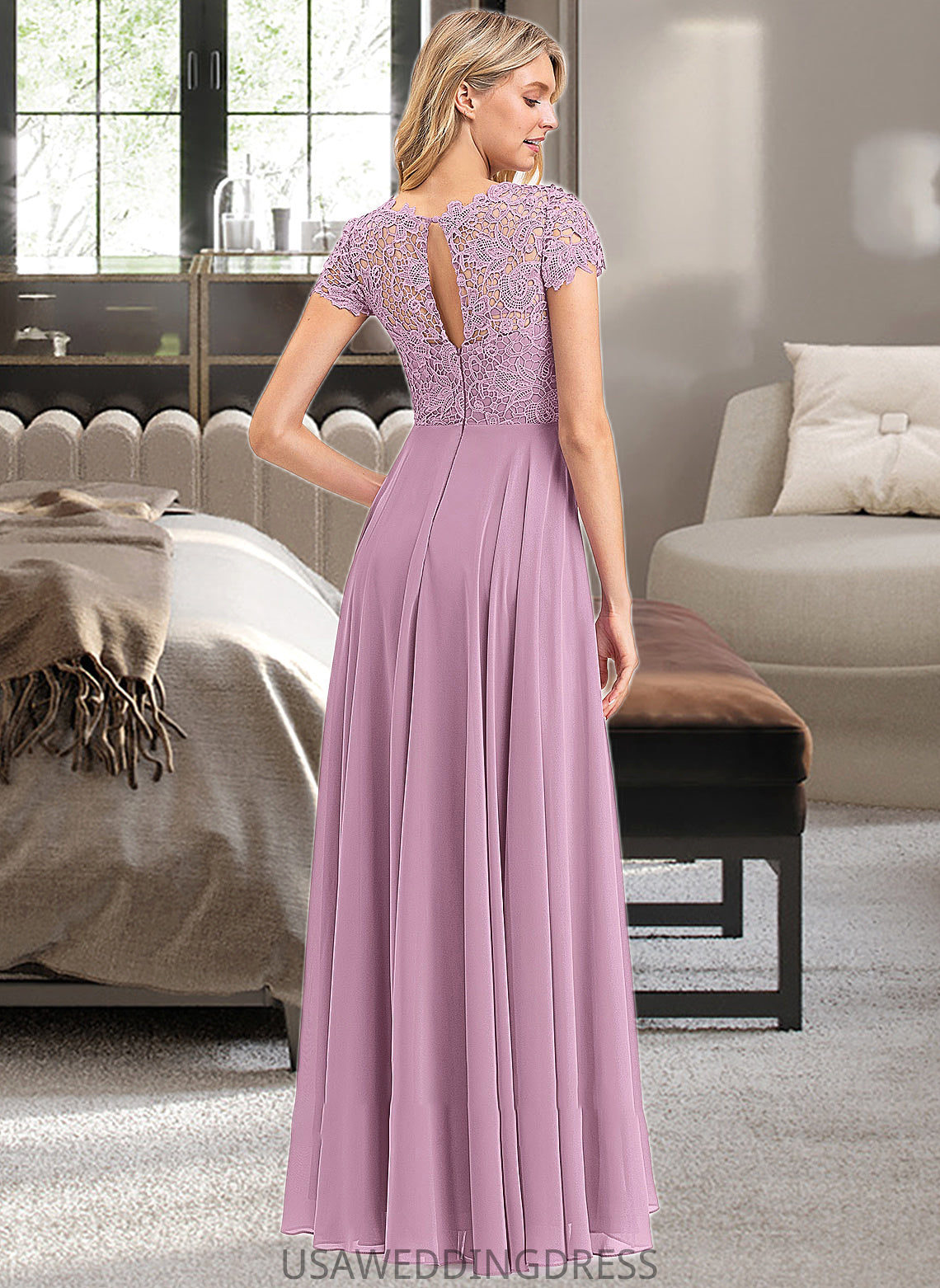 Amelie A-Line Scoop Neck Floor-Length Chiffon Lace Bridesmaid Dress With Pockets DSP0012776