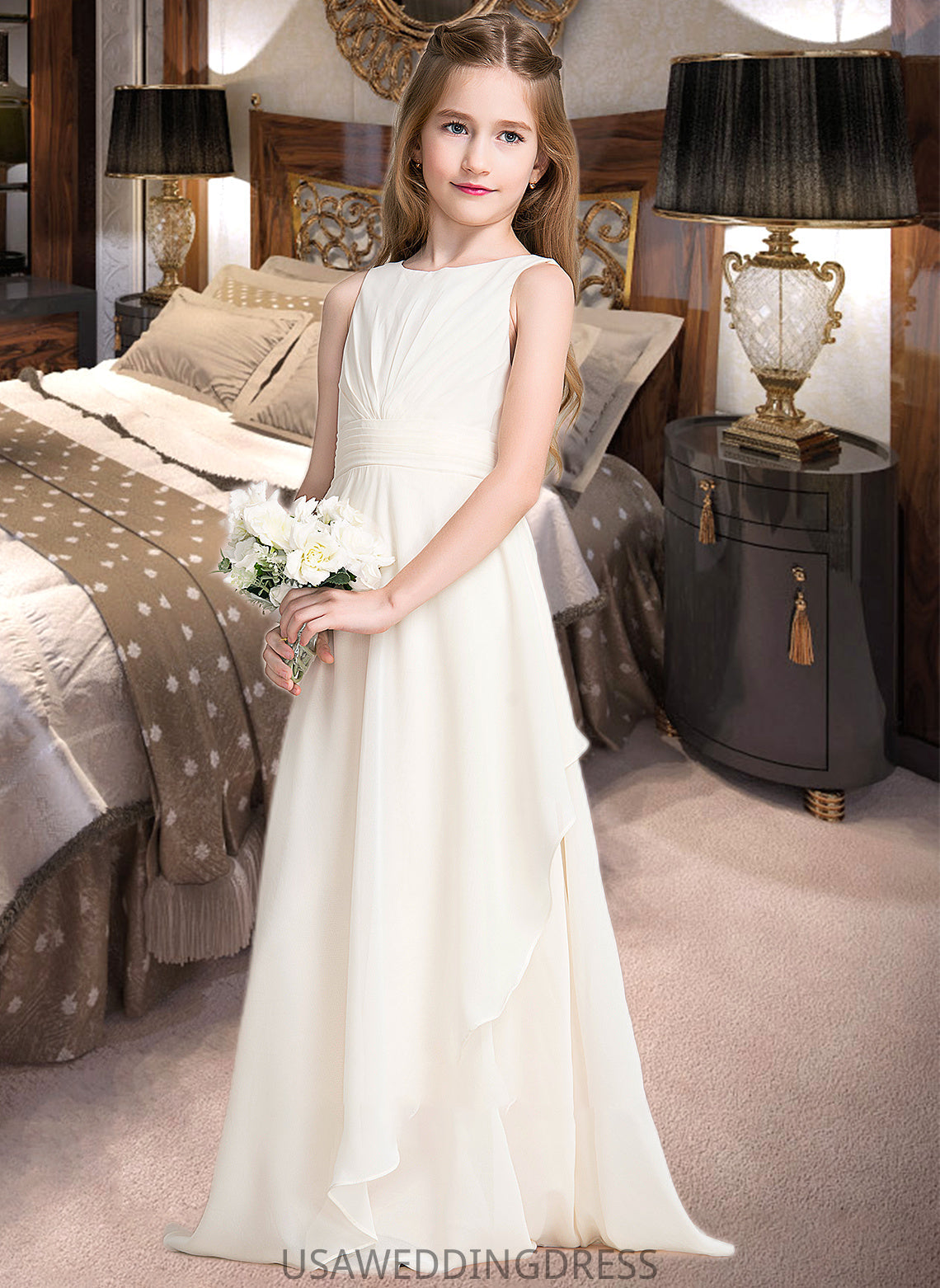 Amirah A-Line Scoop Neck Floor-Length Chiffon Junior Bridesmaid Dress With Cascading Ruffles DSP0013394