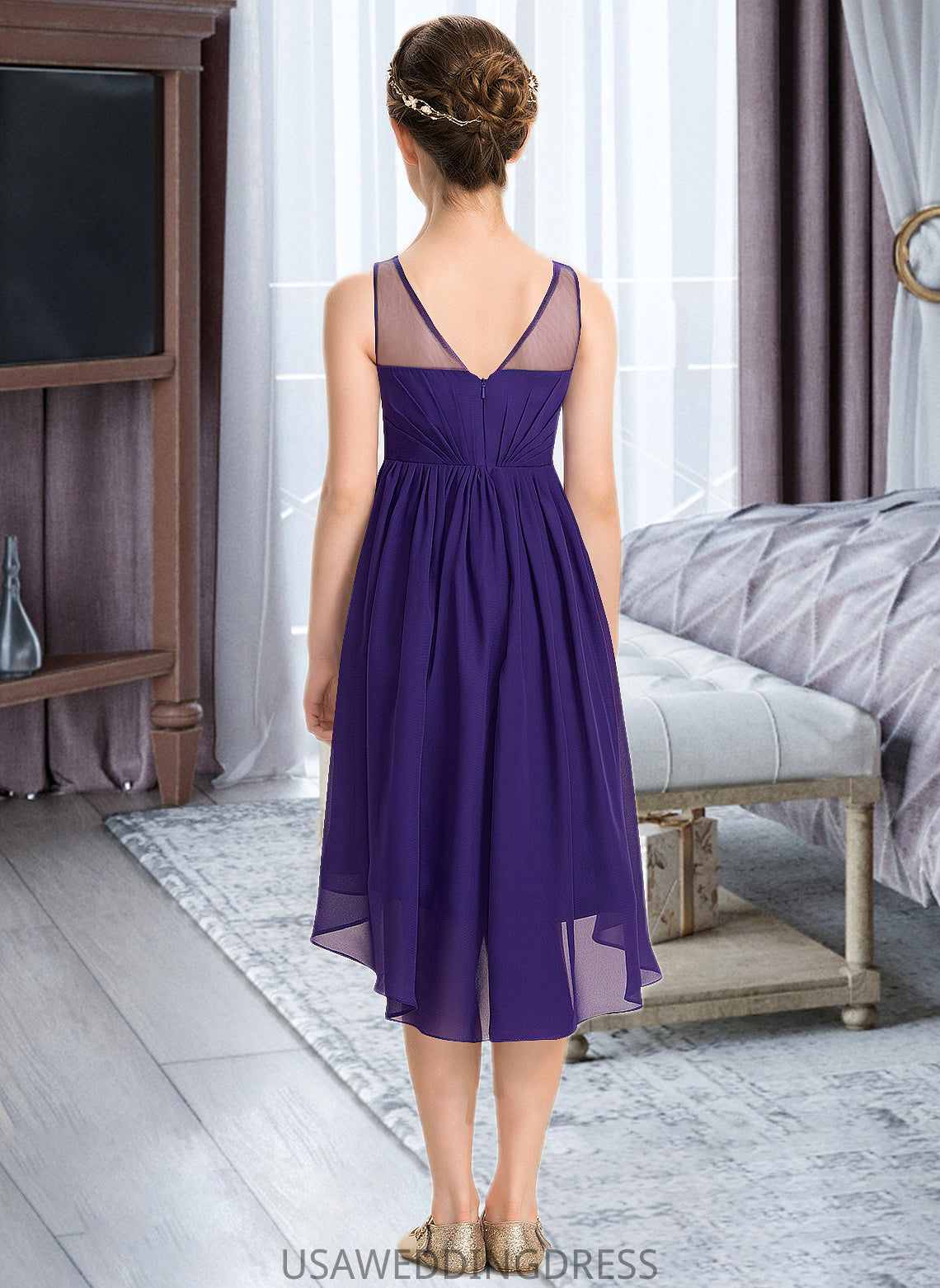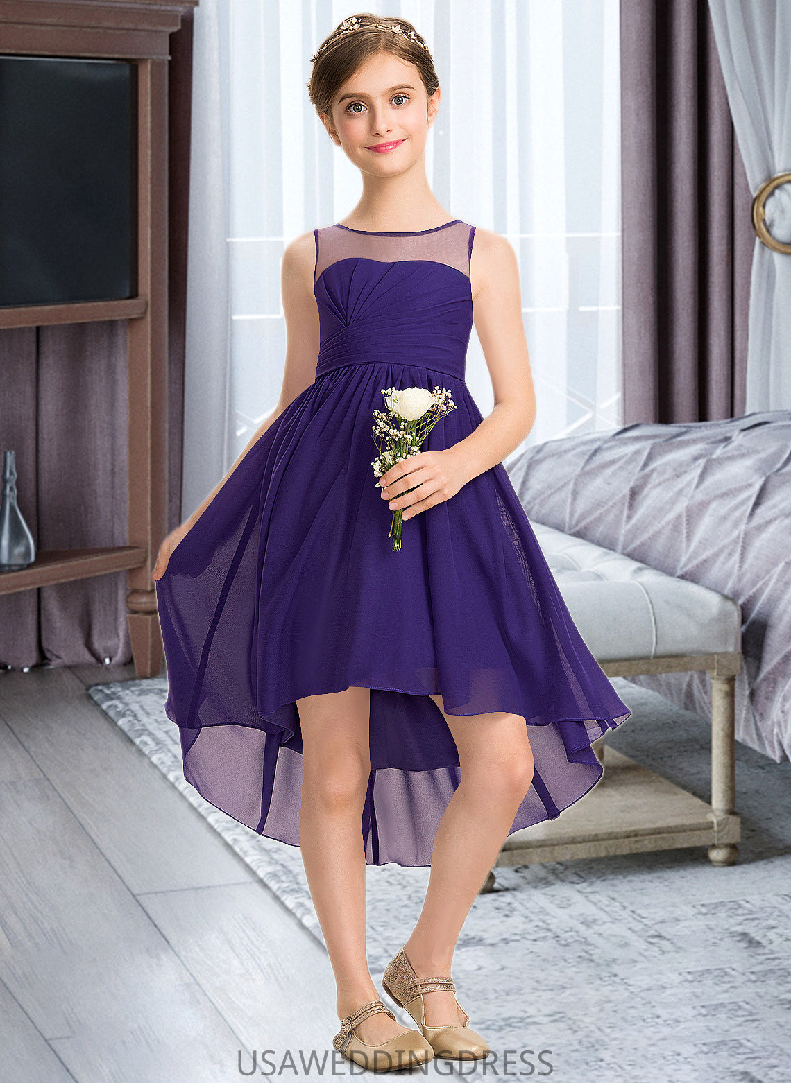 Amy A-Line Scoop Neck Asymmetrical Chiffon Junior Bridesmaid Dress With Ruffle DSP0013515