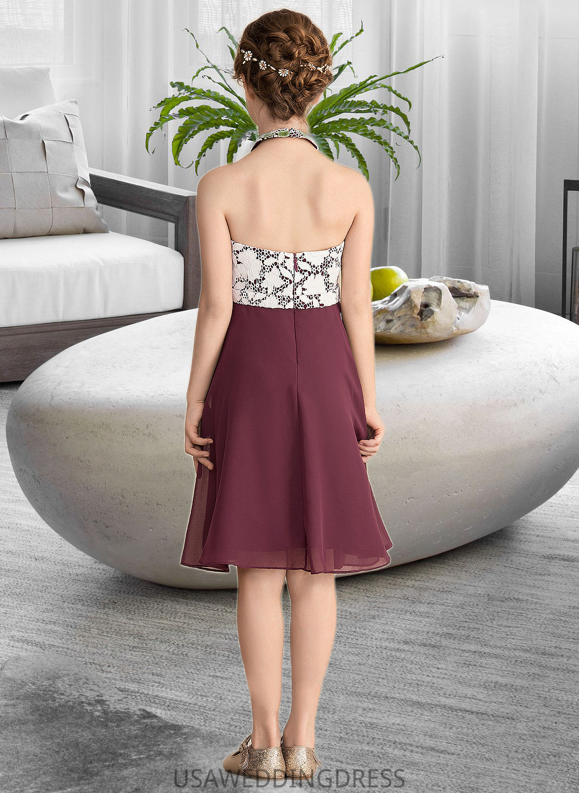 Anabel A-Line Scoop Neck Knee-Length Chiffon Lace Junior Bridesmaid Dress DSP0013366