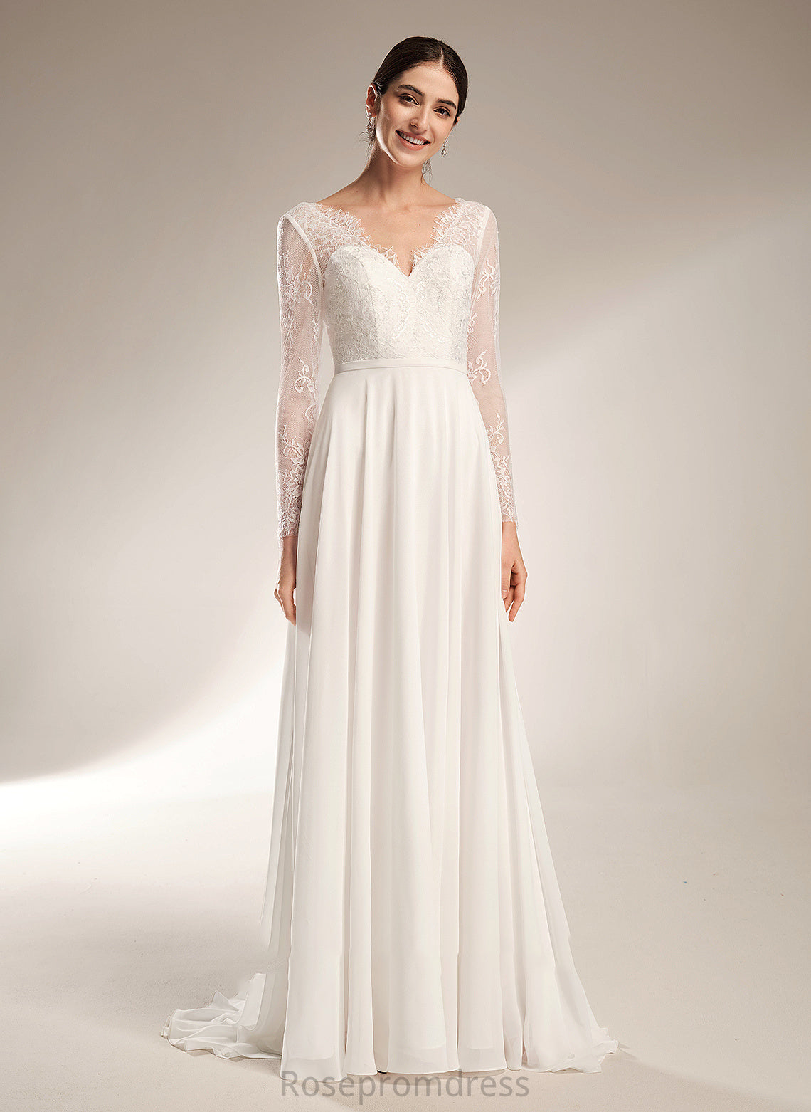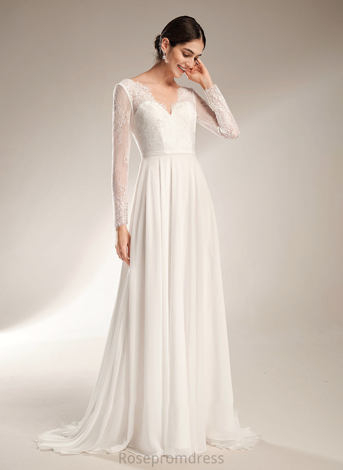 Anahi Sweep Dress A-Line Wedding V-neck Wedding Dresses Train