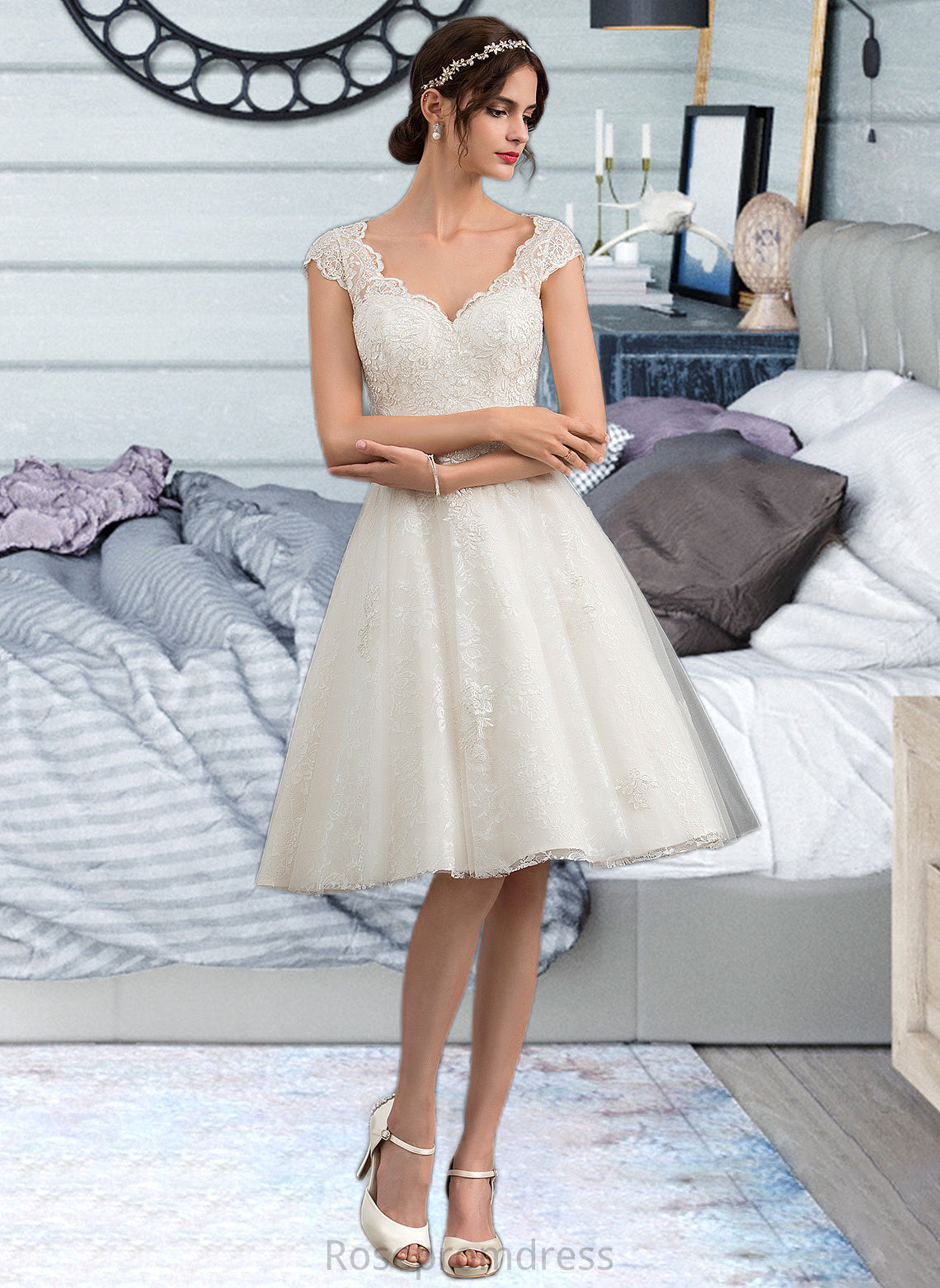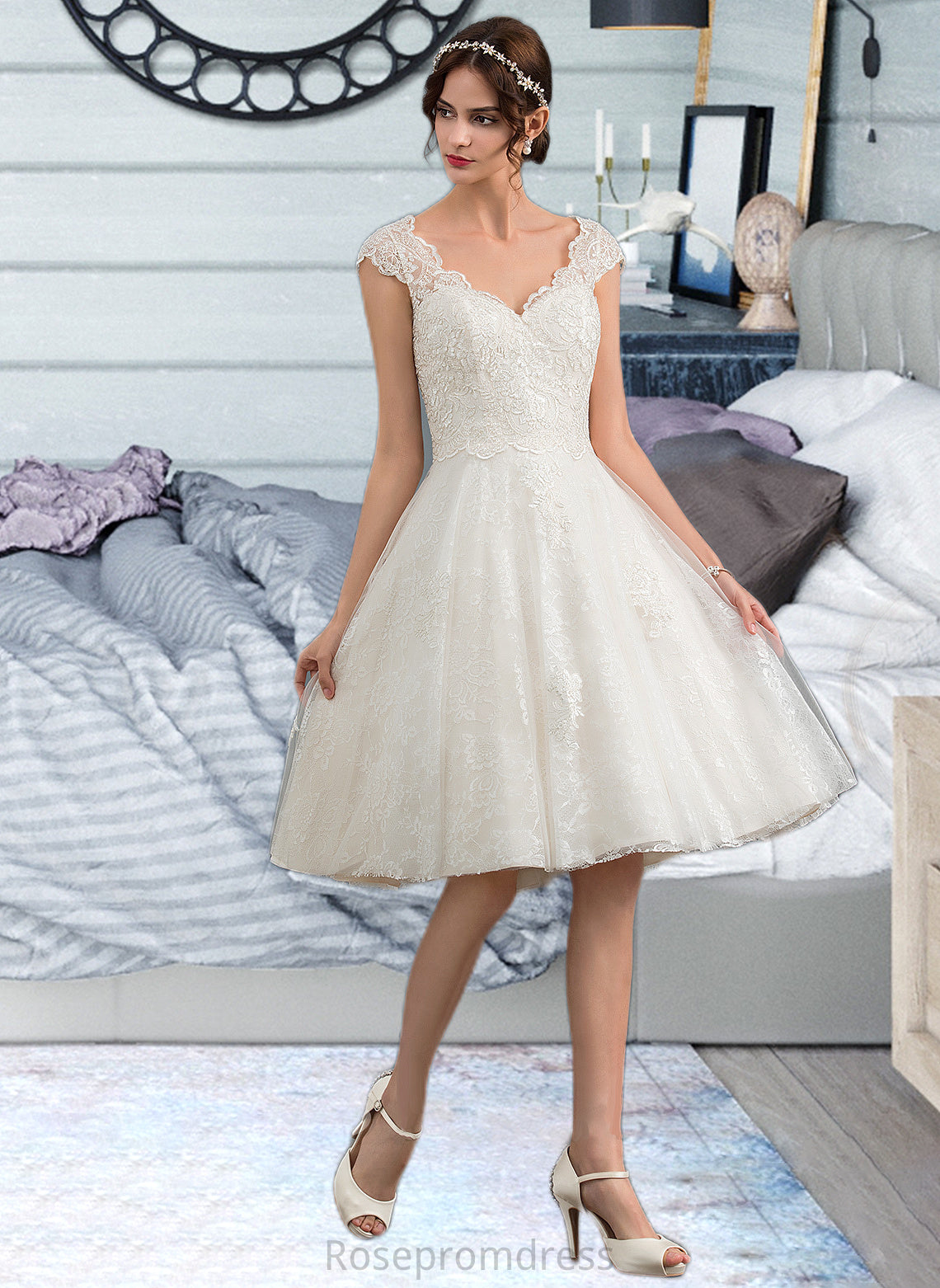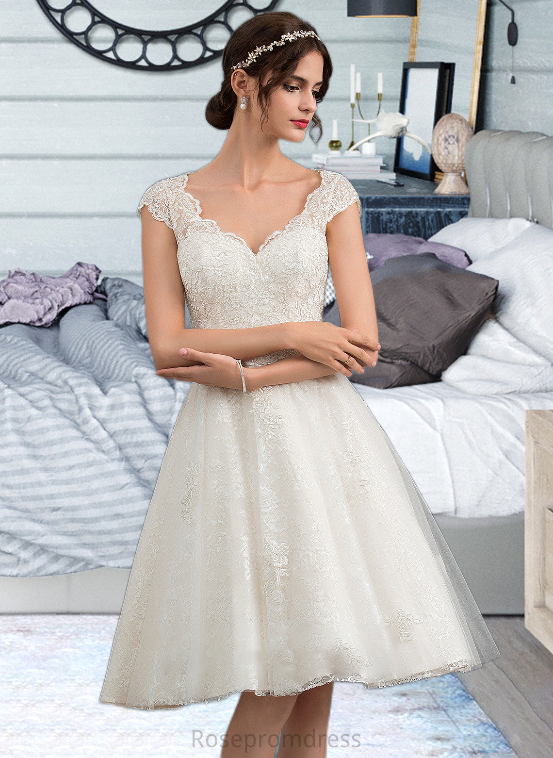 Anastasia A-Line V-neck Knee-Length Tulle Lace Wedding Dress SRSP0013700