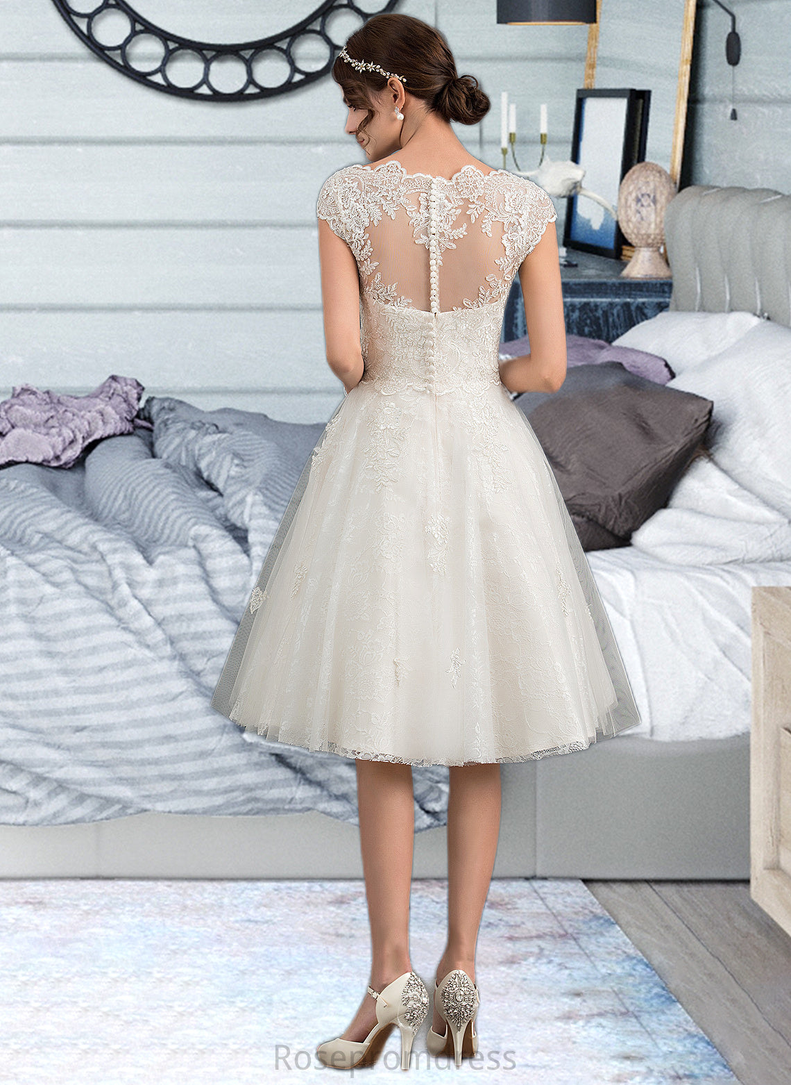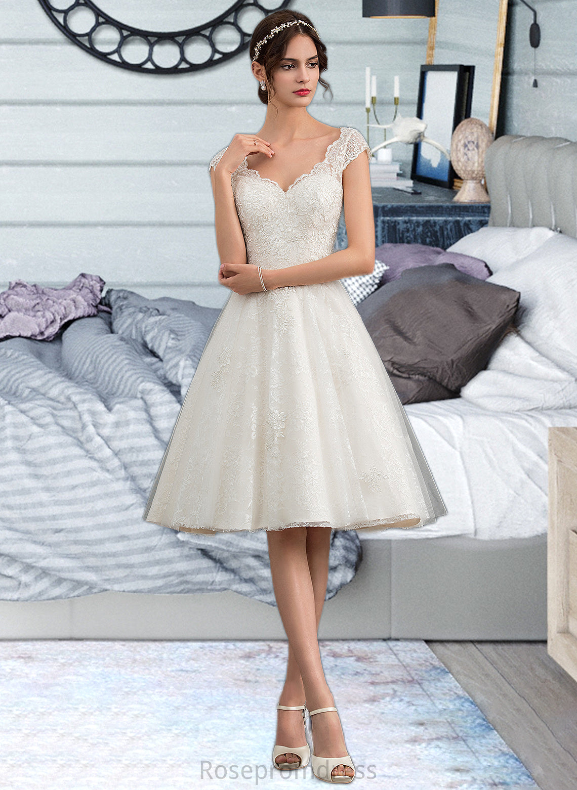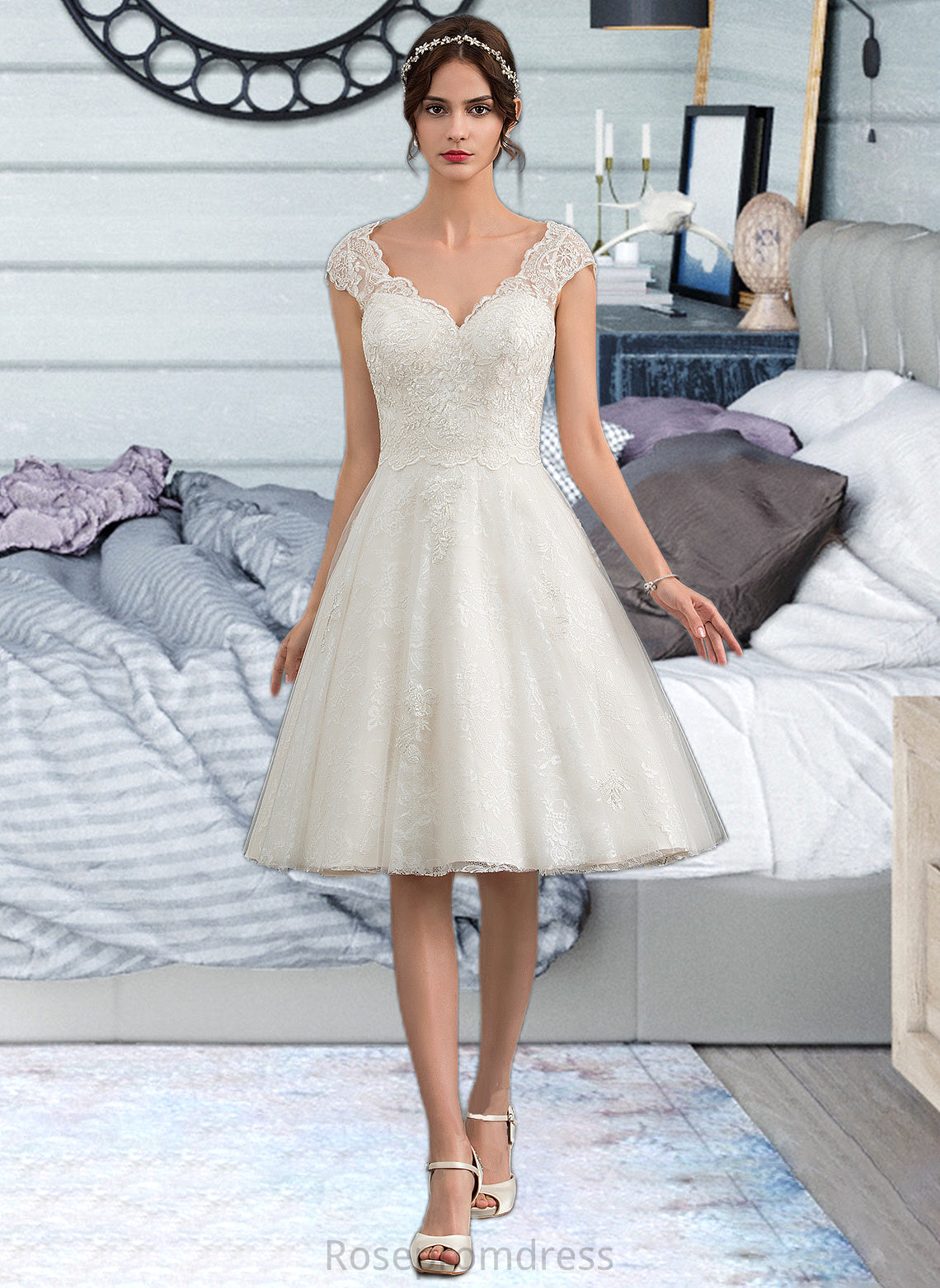 Anastasia A-Line V-neck Knee-Length Tulle Lace Wedding Dress SRSP0013700