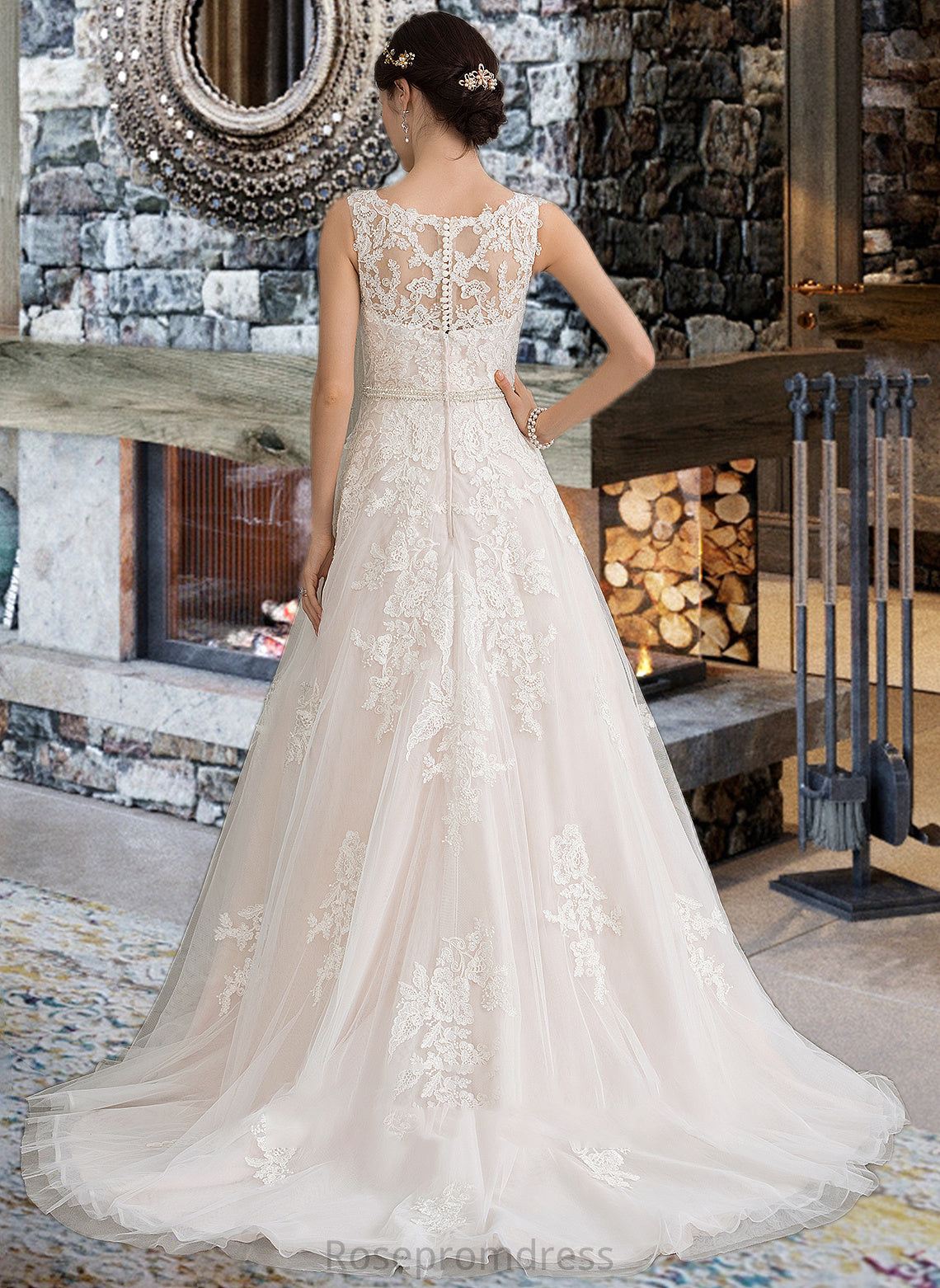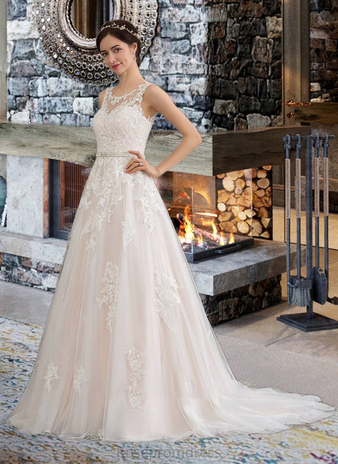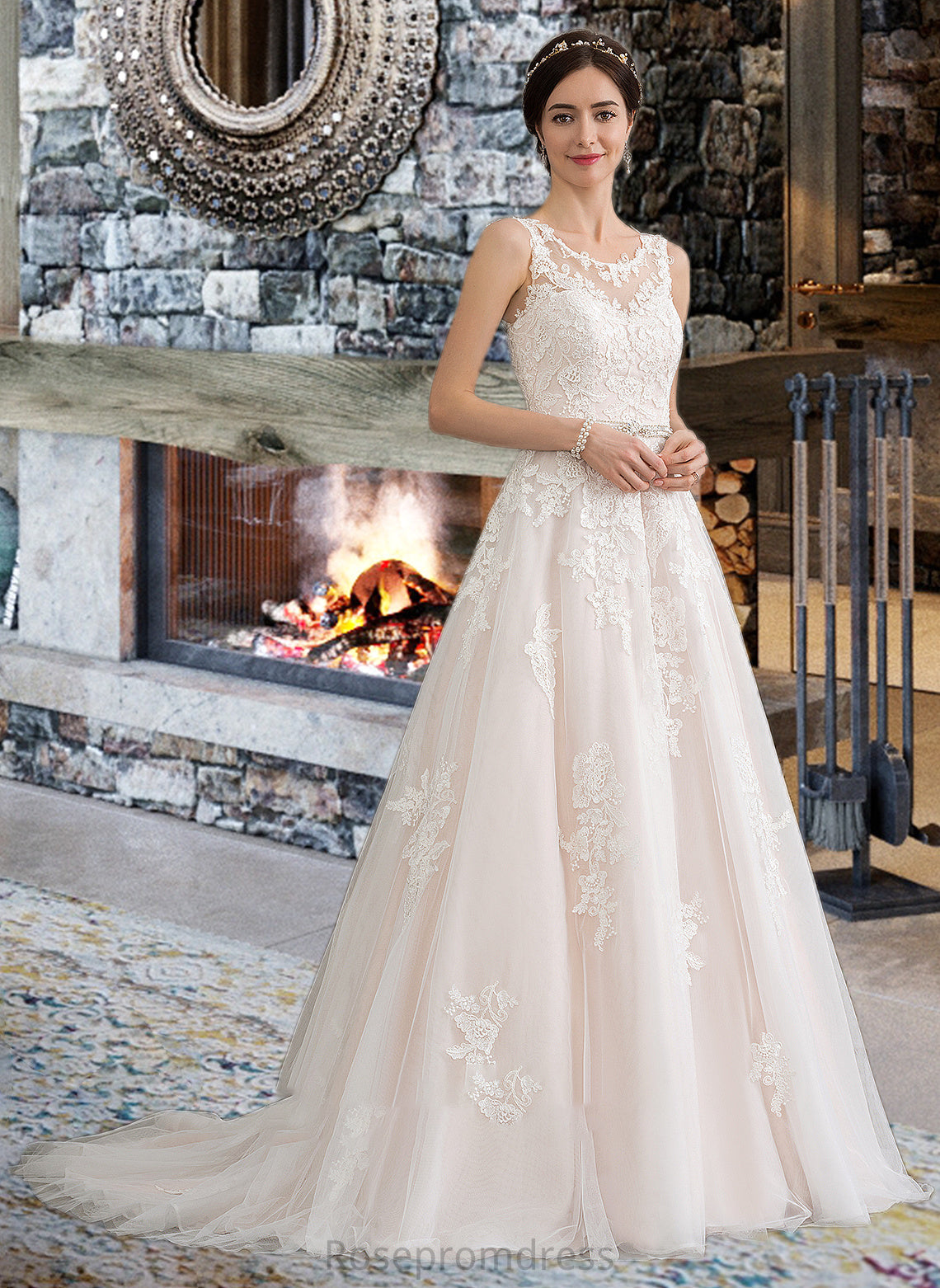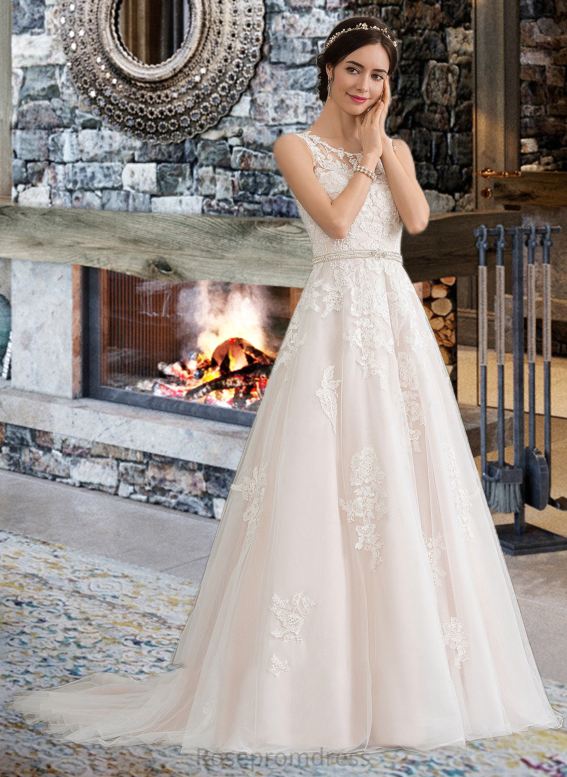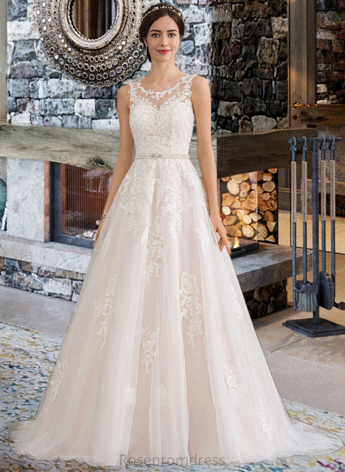 Anastasia Ball-Gown/Princess Scoop Neck Court Train Tulle Wedding Dress With Beading Sequins SRSP0013730