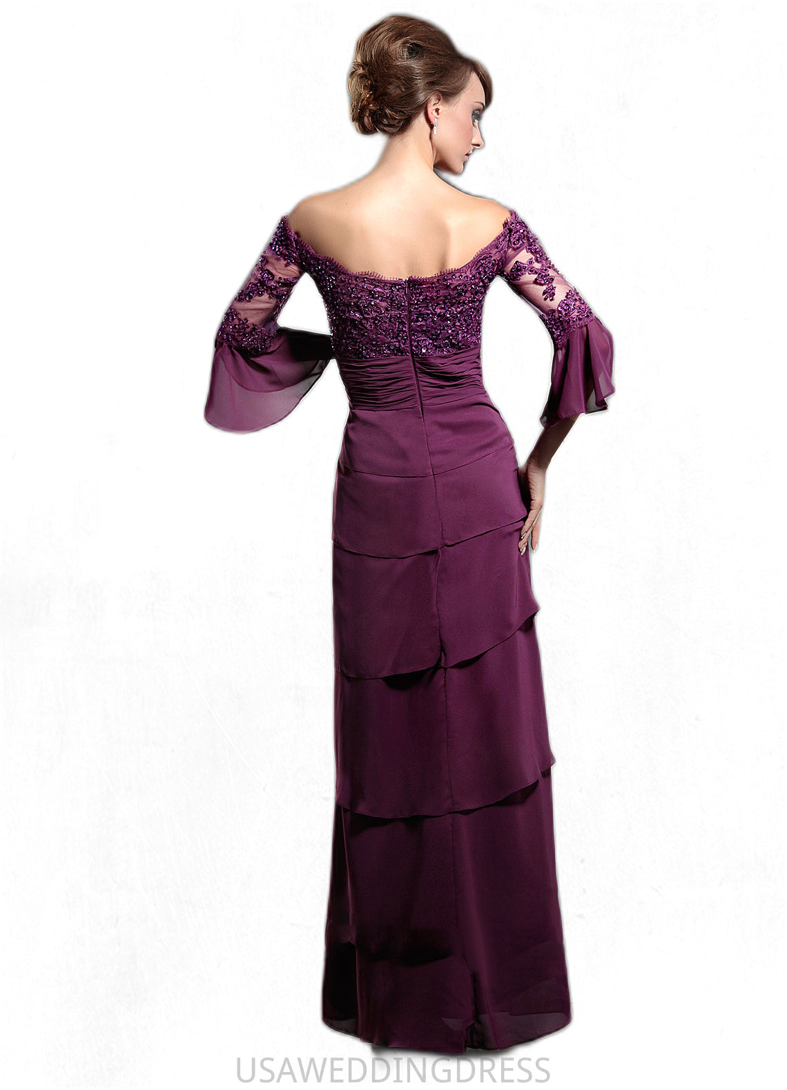 Angelica A-Line Off-the-Shoulder Floor-Length Chiffon Mother of the Bride Dress With Lace Beading Sequins Bow(s) Cascading Ruffles DS126P0014726