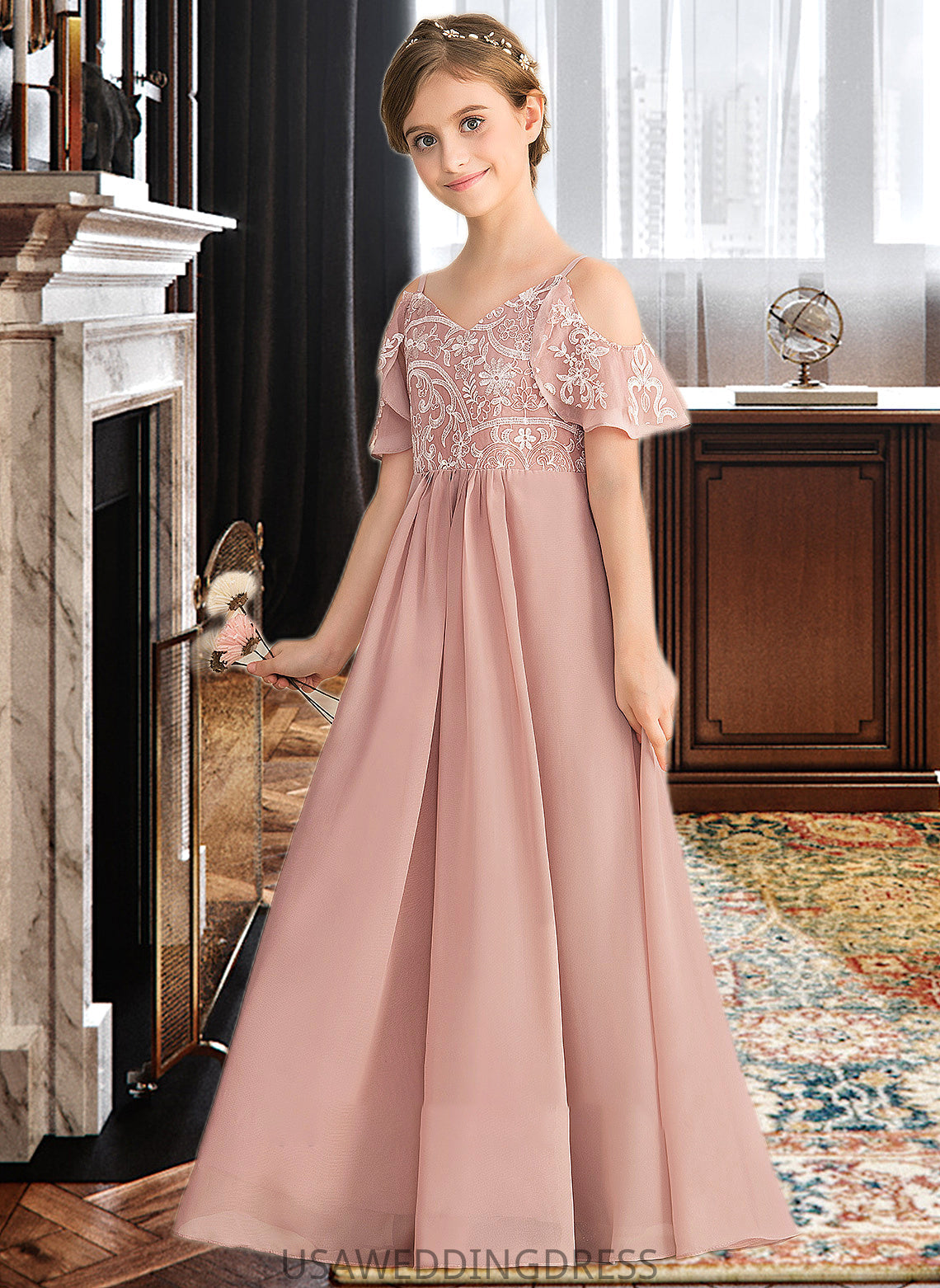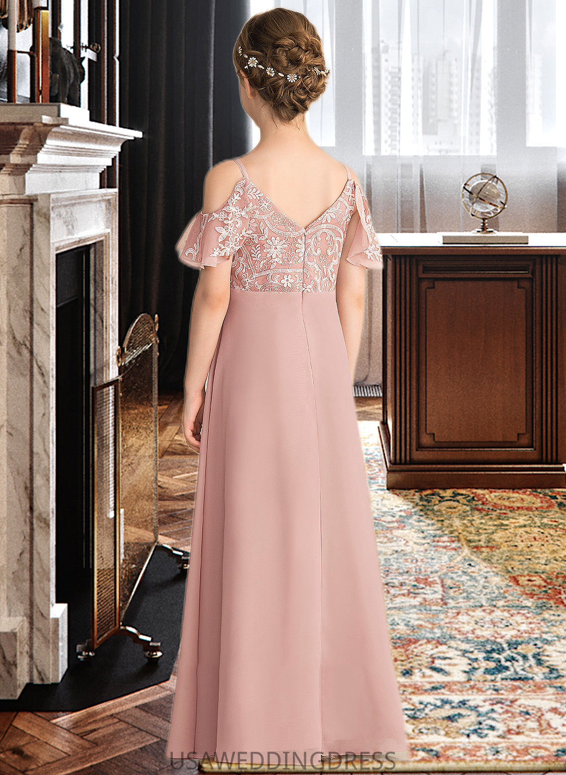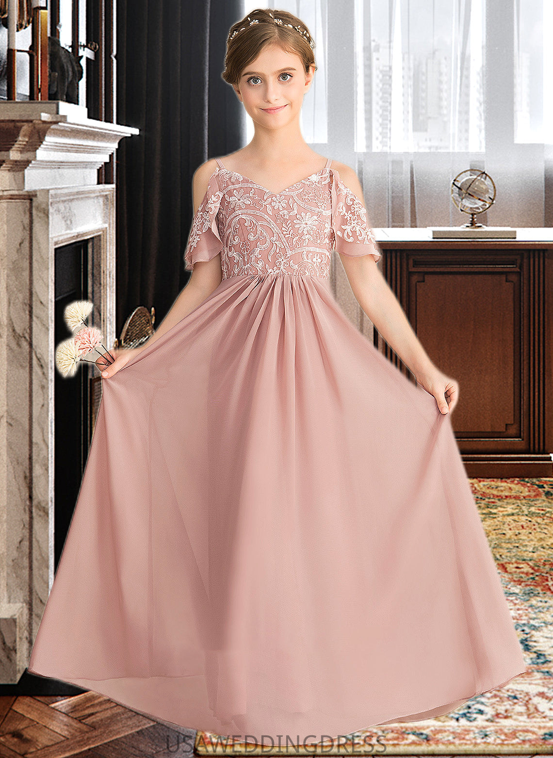 Ann A-Line V-neck Floor-Length Chiffon Lace Junior Bridesmaid Dress DSP0013541