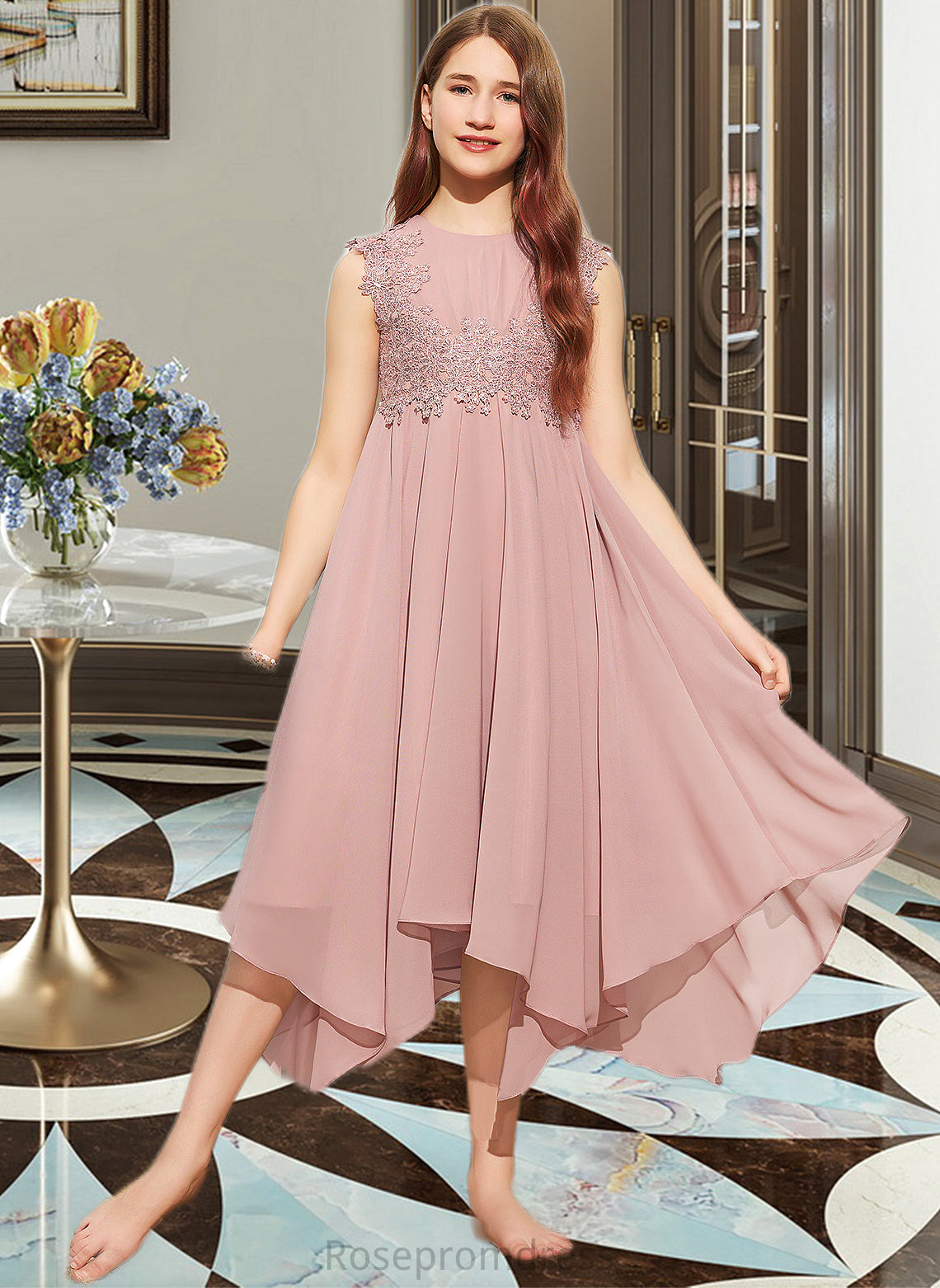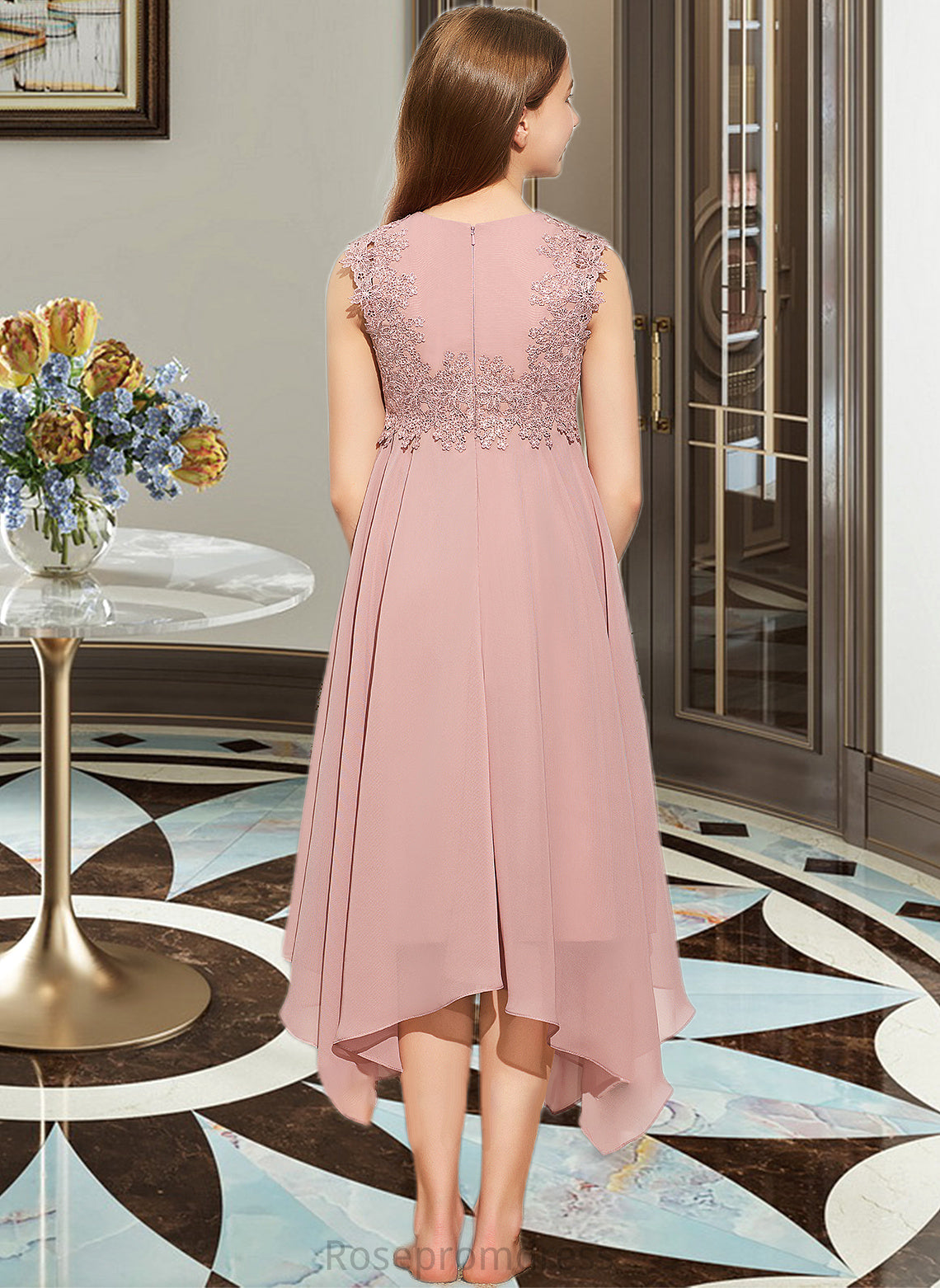 Anna A-Line Scoop Neck Tea-Length Chiffon Lace Junior Bridesmaid Dress SRSP0013547