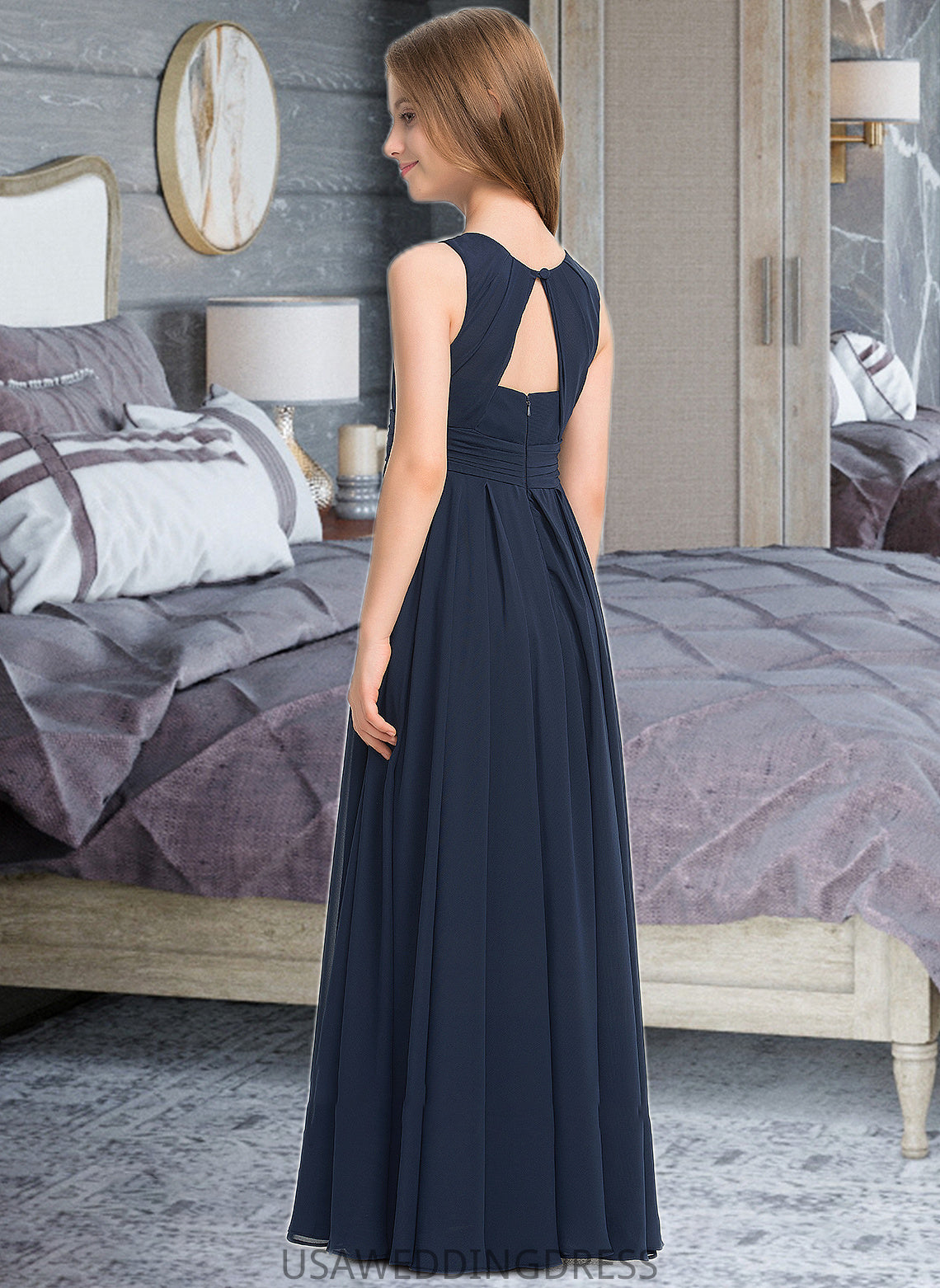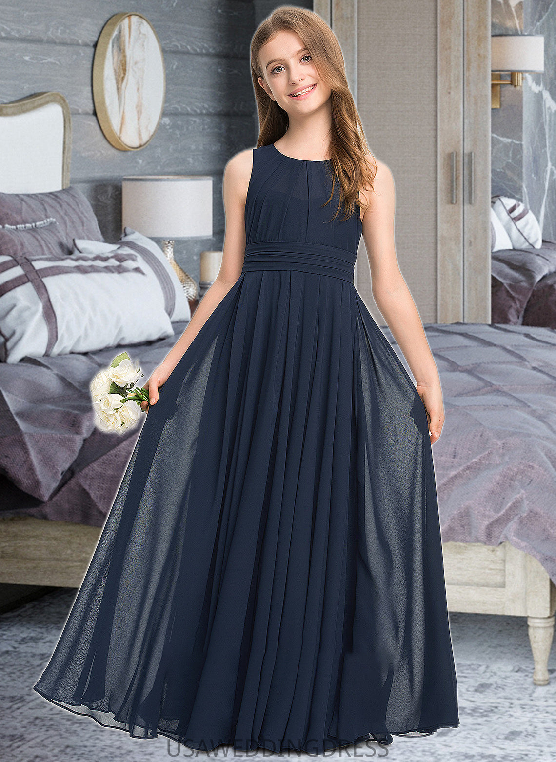 Annalise A-Line Scoop Neck Floor-Length Chiffon Junior Bridesmaid Dress With Ruffle DSP0013441