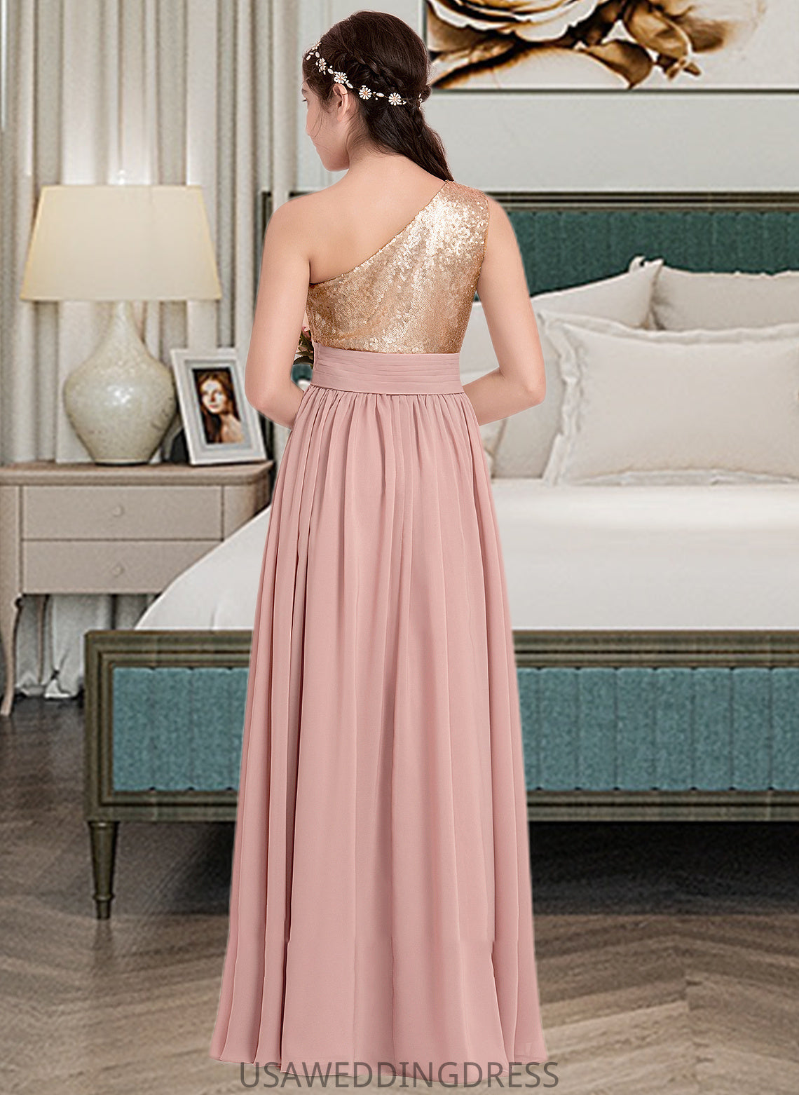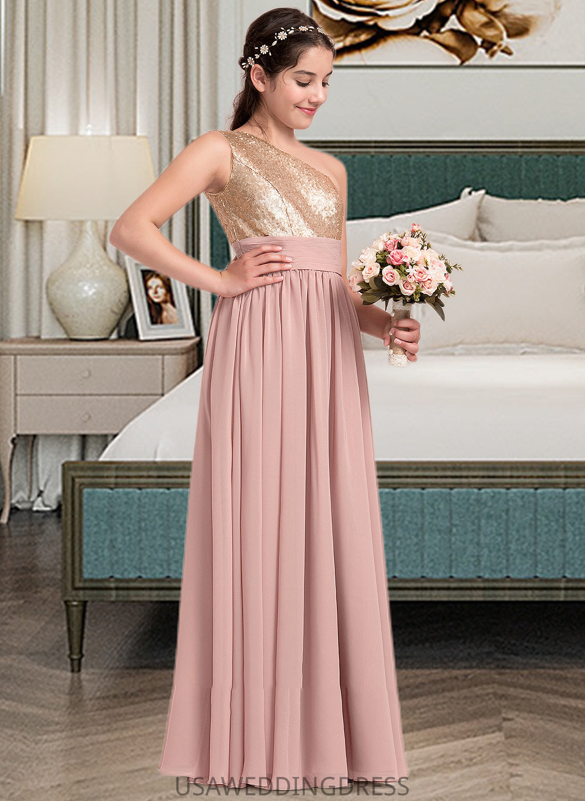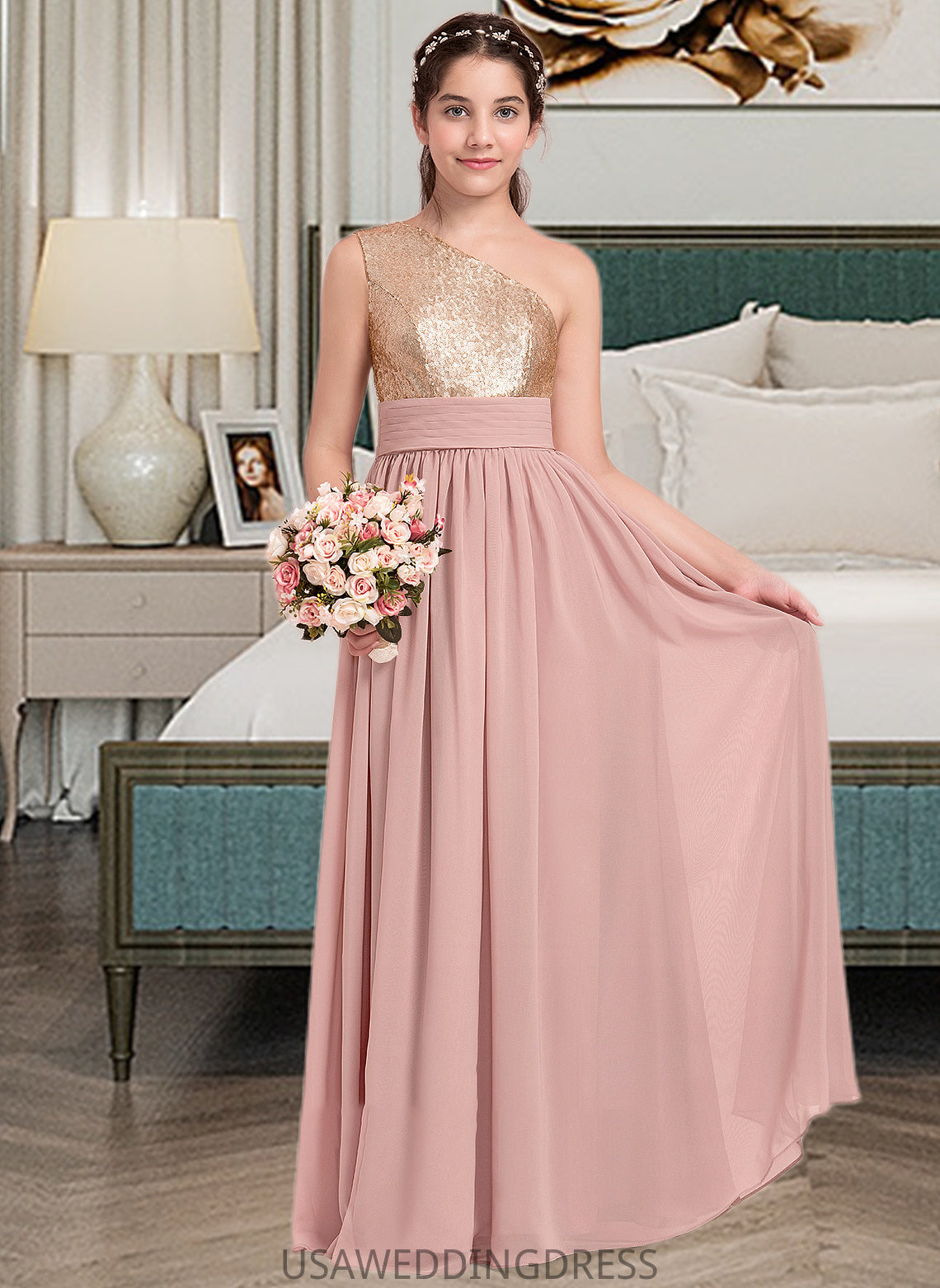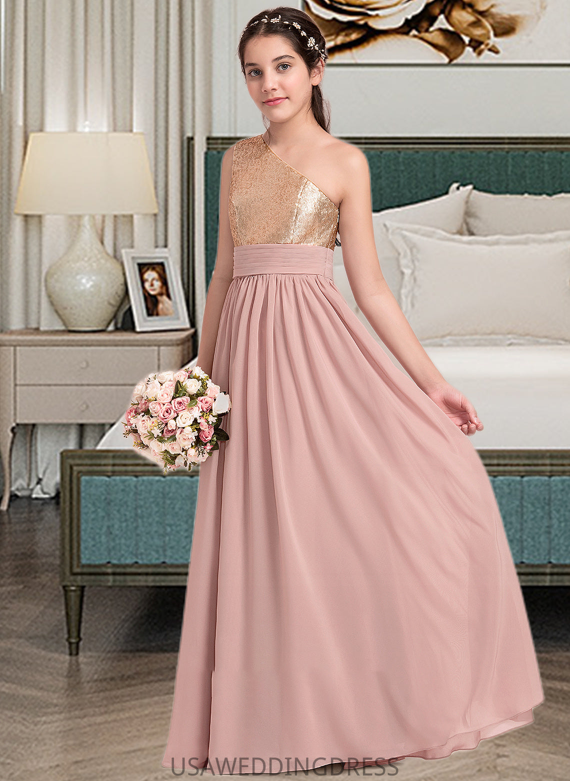 Annie A-Line One-Shoulder Floor-Length Chiffon Junior Bridesmaid Dress With Ruffle DSP0013340