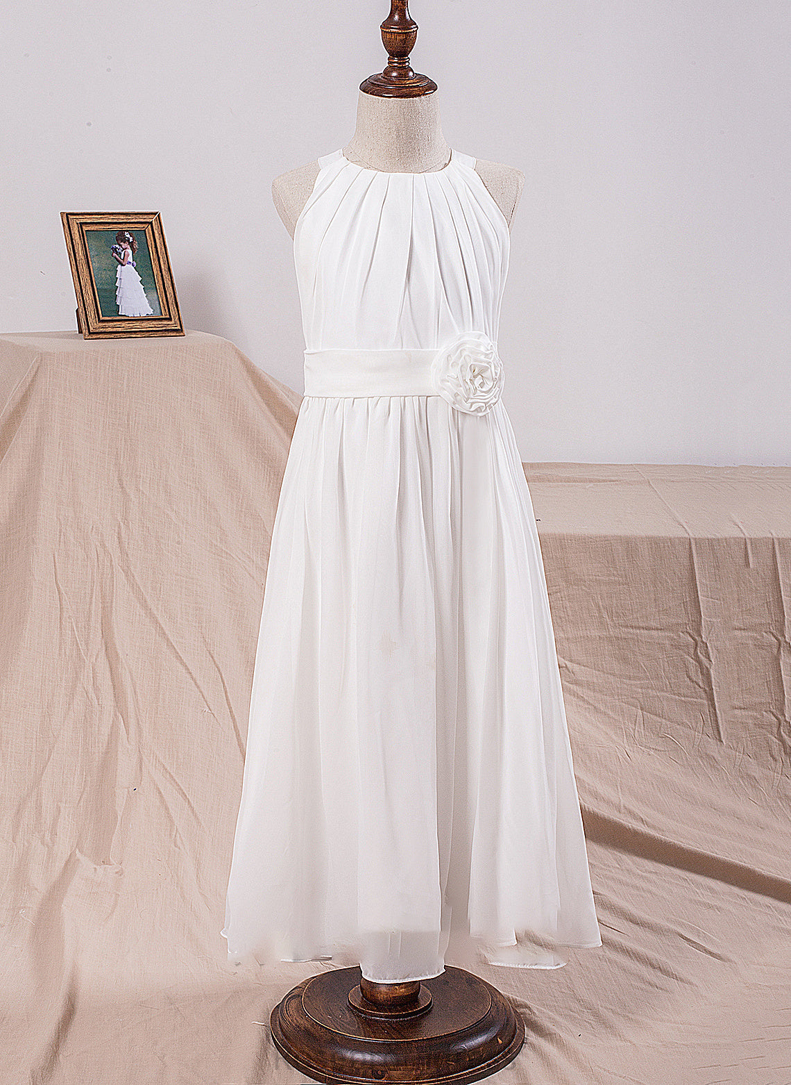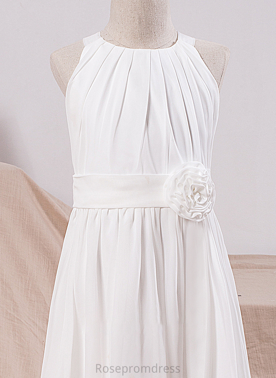Ansley A-Line Scoop Neck Ankle-Length Chiffon Junior Bridesmaid Dresses Flower(s) With