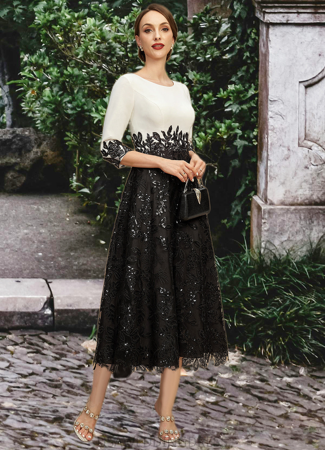 Ansley A-line Scoop Tea-Length Chiffon Lace Mother of the Bride Dress With Sequins DS126P0021903