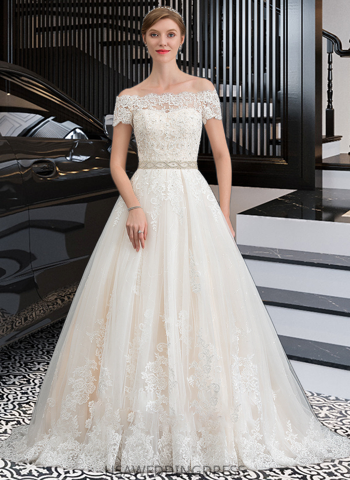 Ansley Ball-Gown/Princess Court Train Tulle Wedding Dress With Beading Sequins DSP0013770