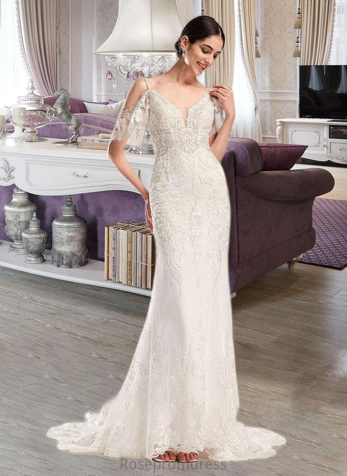 Areli Trumpet/Mermaid V-neck Chapel Train Wedding Dress With Beading Sequins SRSP0013802