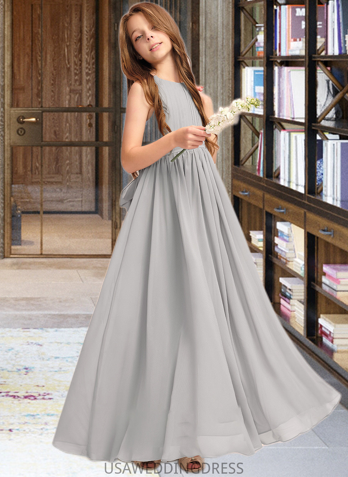 Aria A-Line Scoop Neck Floor-Length Chiffon Junior Bridesmaid Dress With Ruffle Bow(s) DSP0013483