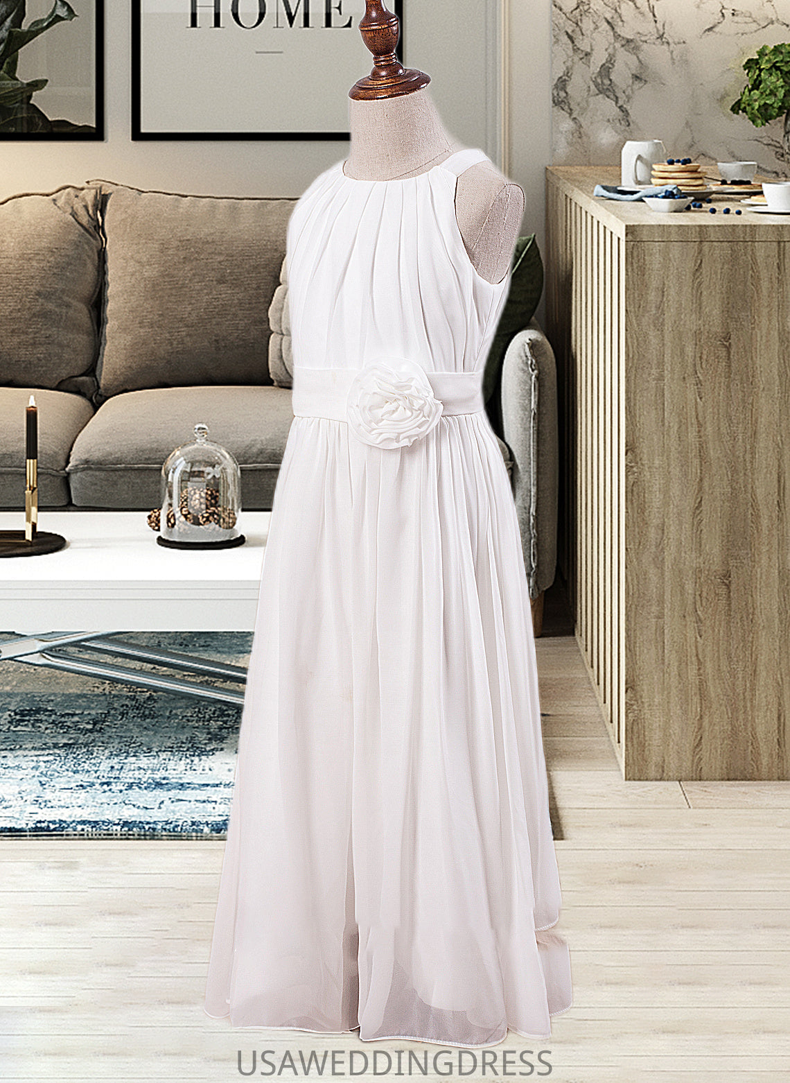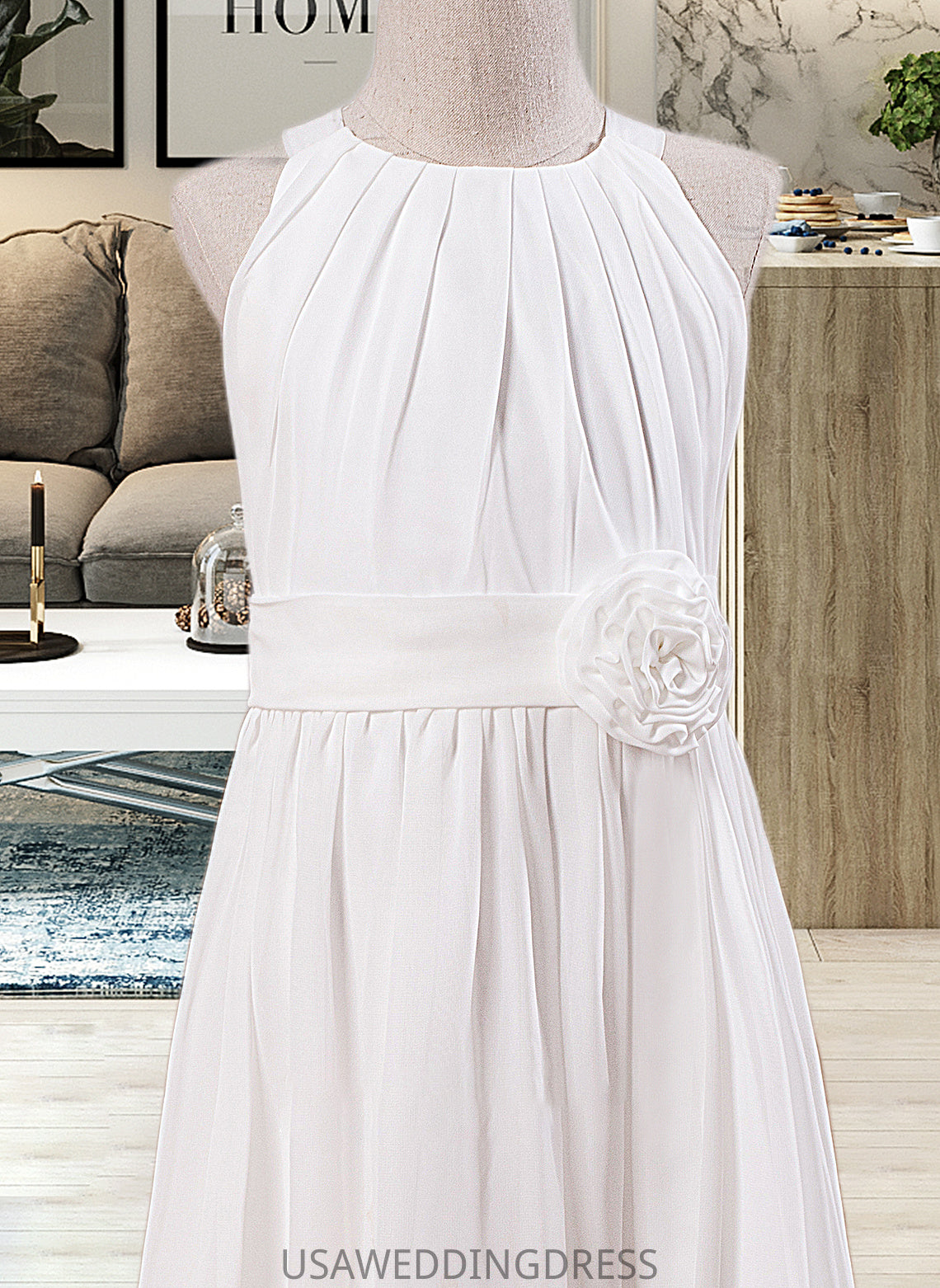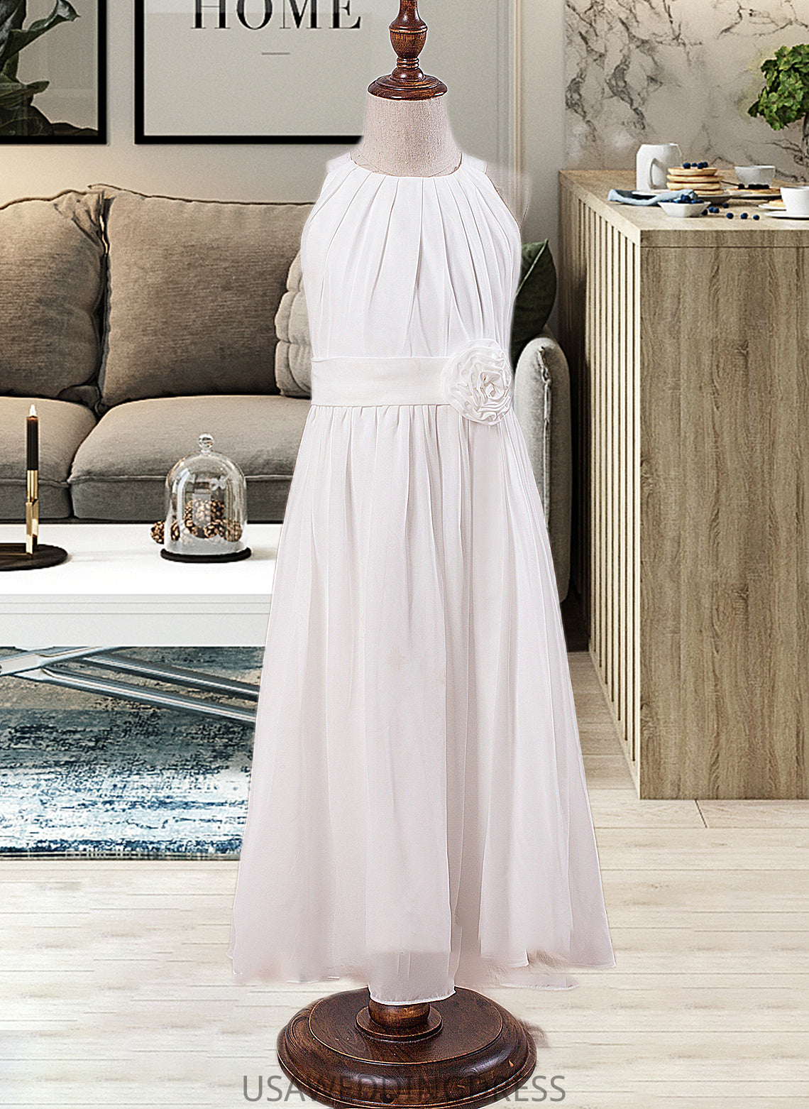 Armani A-Line Scoop Neck Ankle-Length Chiffon Junior Bridesmaid Dress With Flower(s) DSP0013621