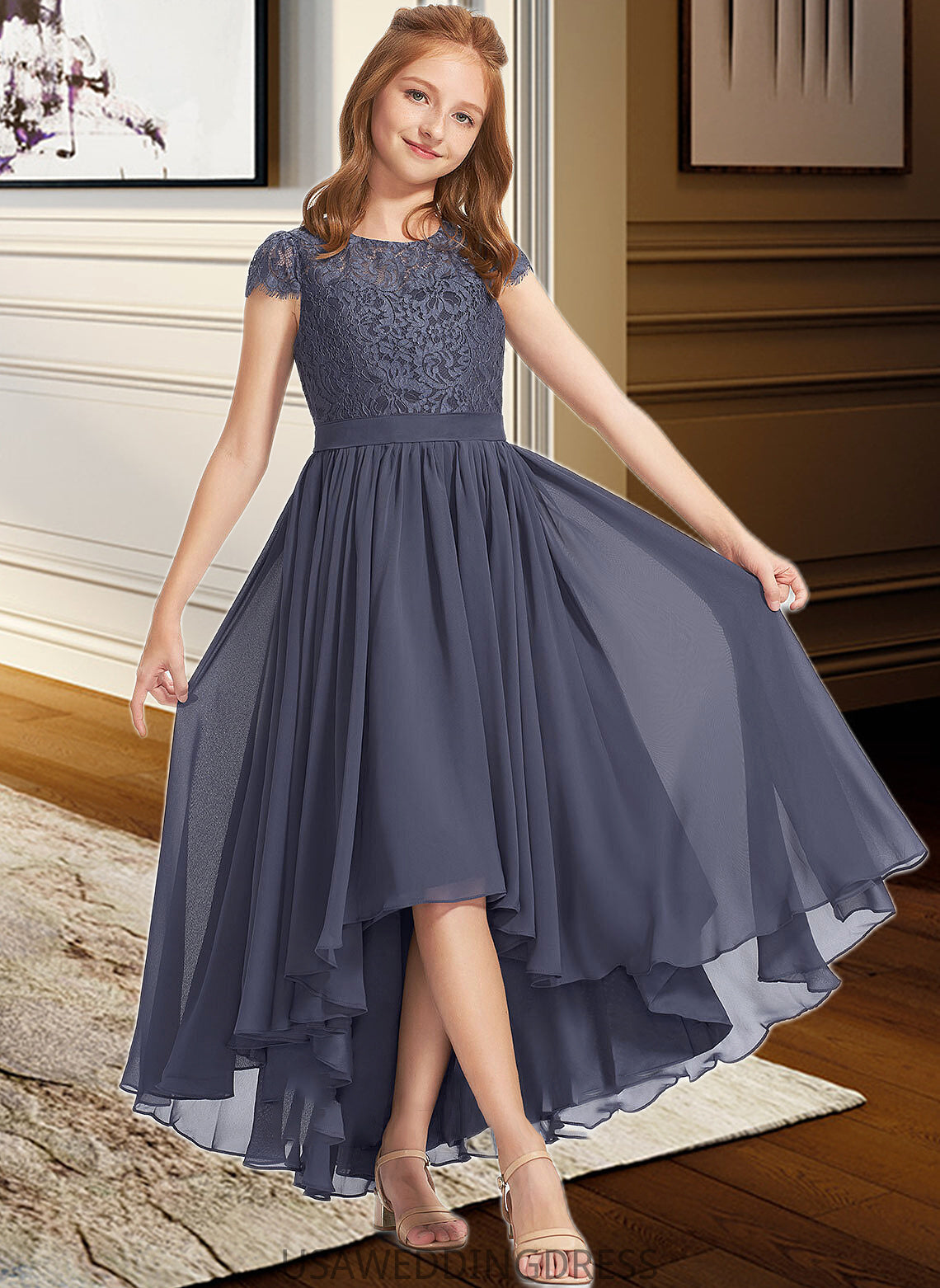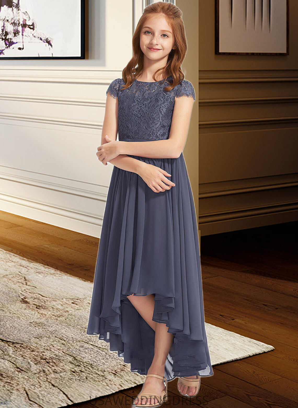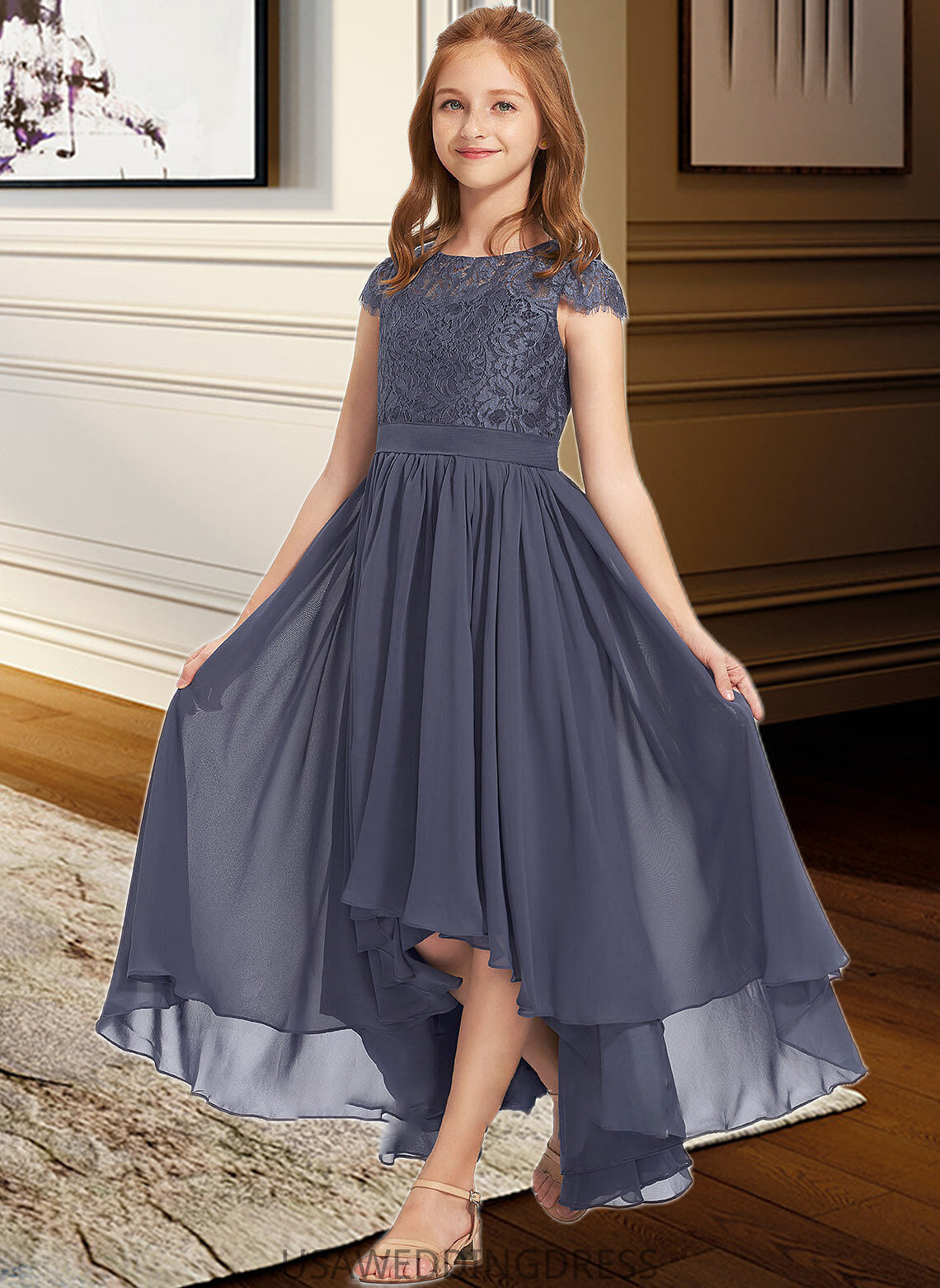Armani A-Line Scoop Neck Asymmetrical Chiffon Lace Junior Bridesmaid Dress DSP0013341