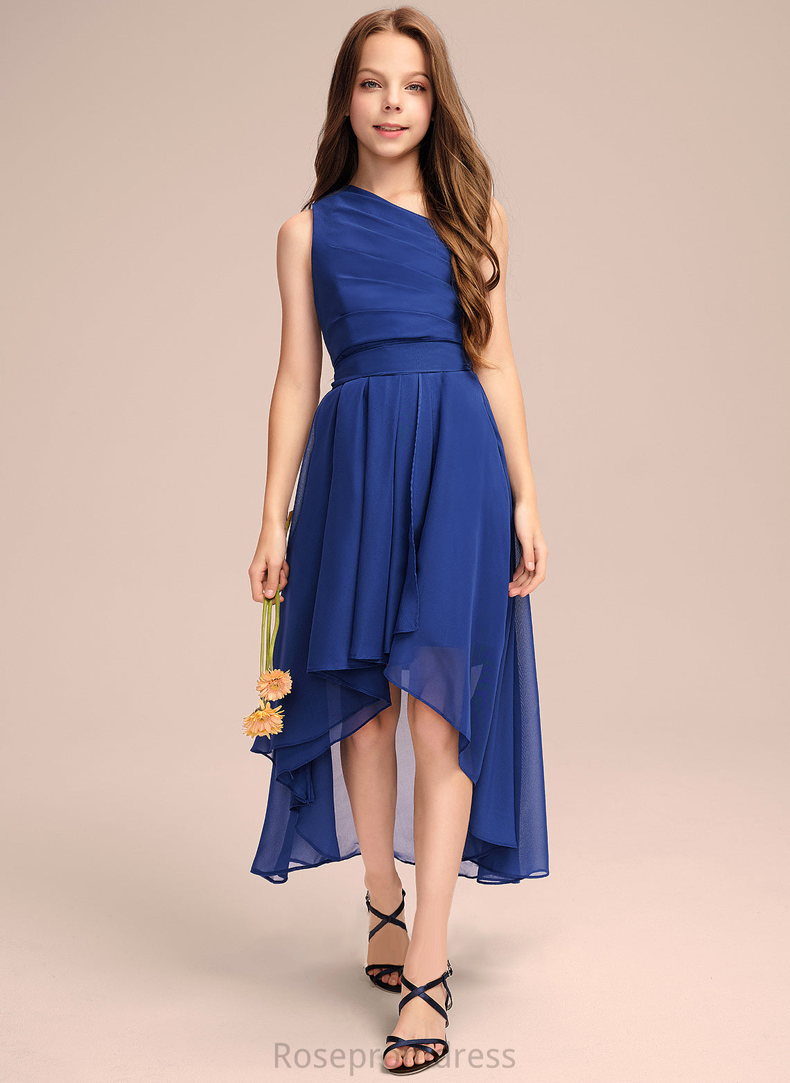 Aryana Junior Bridesmaid Dresses Bow(s) One-Shoulder With Ruffles A-Line Asymmetrical Chiffon